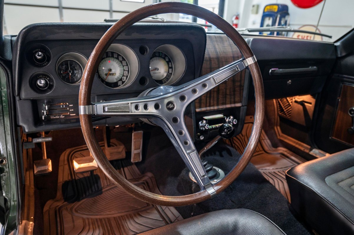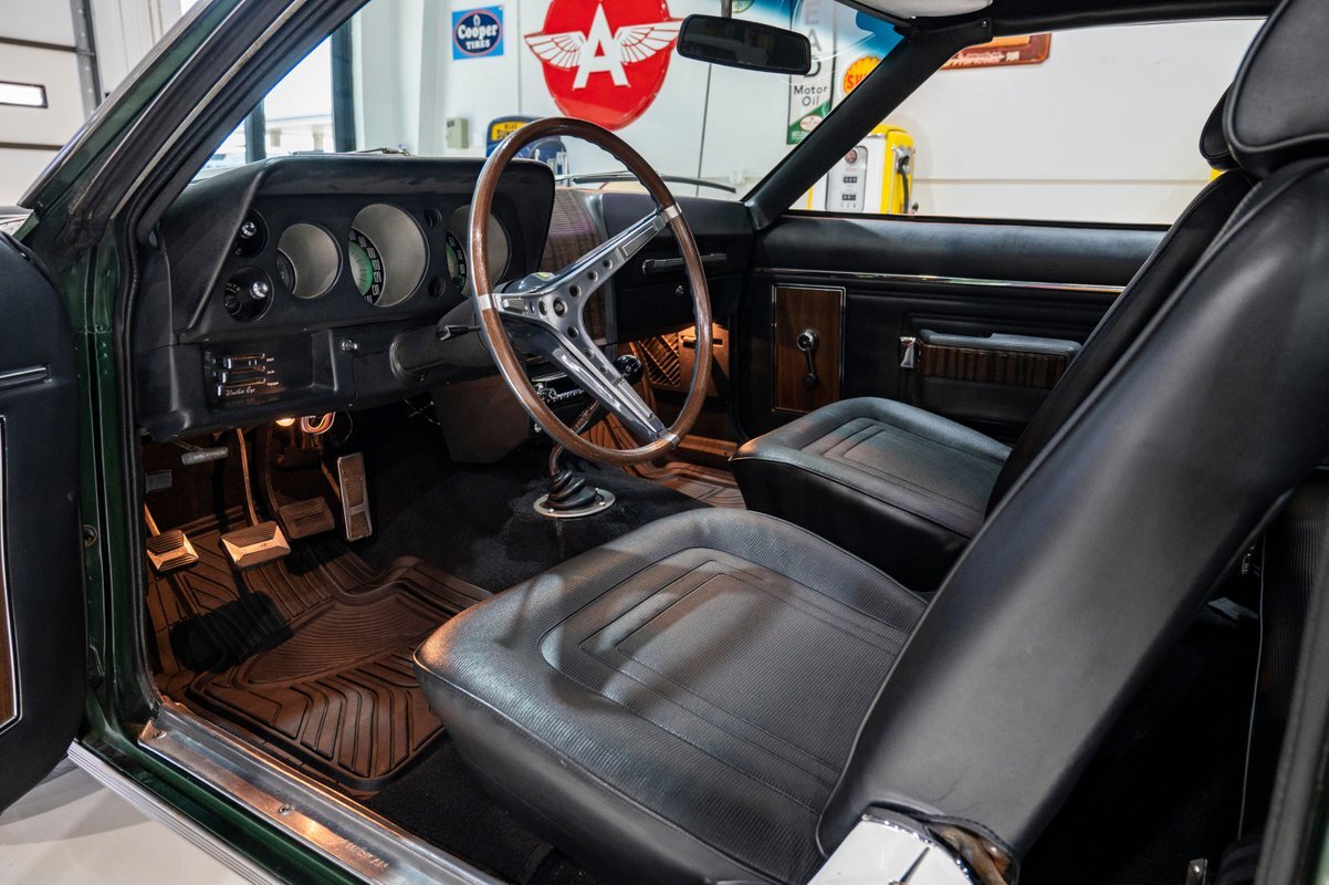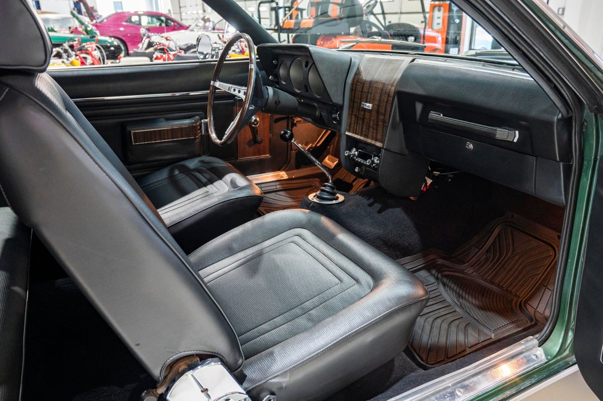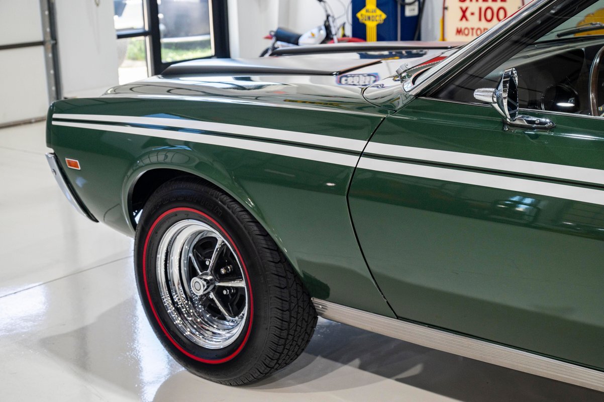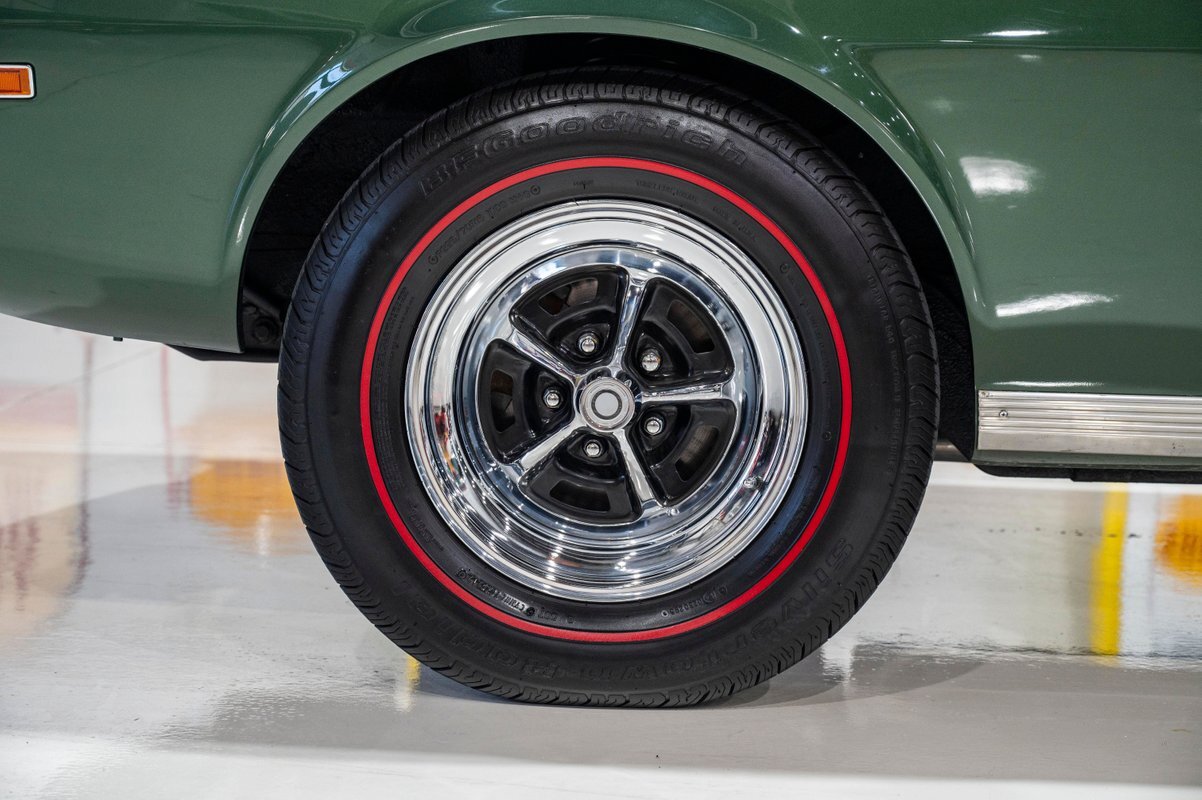 Finished in its factory-spec Hunter Green exterior with the optional Side-Stripe Package and a Legendary Charcoal Gray interior, this one has also the desirable T-10 4-speed, Hurst Competition Plus shifter. In addition, the highly coveted "Go Package" included on this example provided front disc brakes, 5-spoke Magnum 500 wheels and Redline tires, "Twin Grip" limited slip differential, heavy-duty suspension with thicker sway bars, and a matching 8,000 PRM tach.