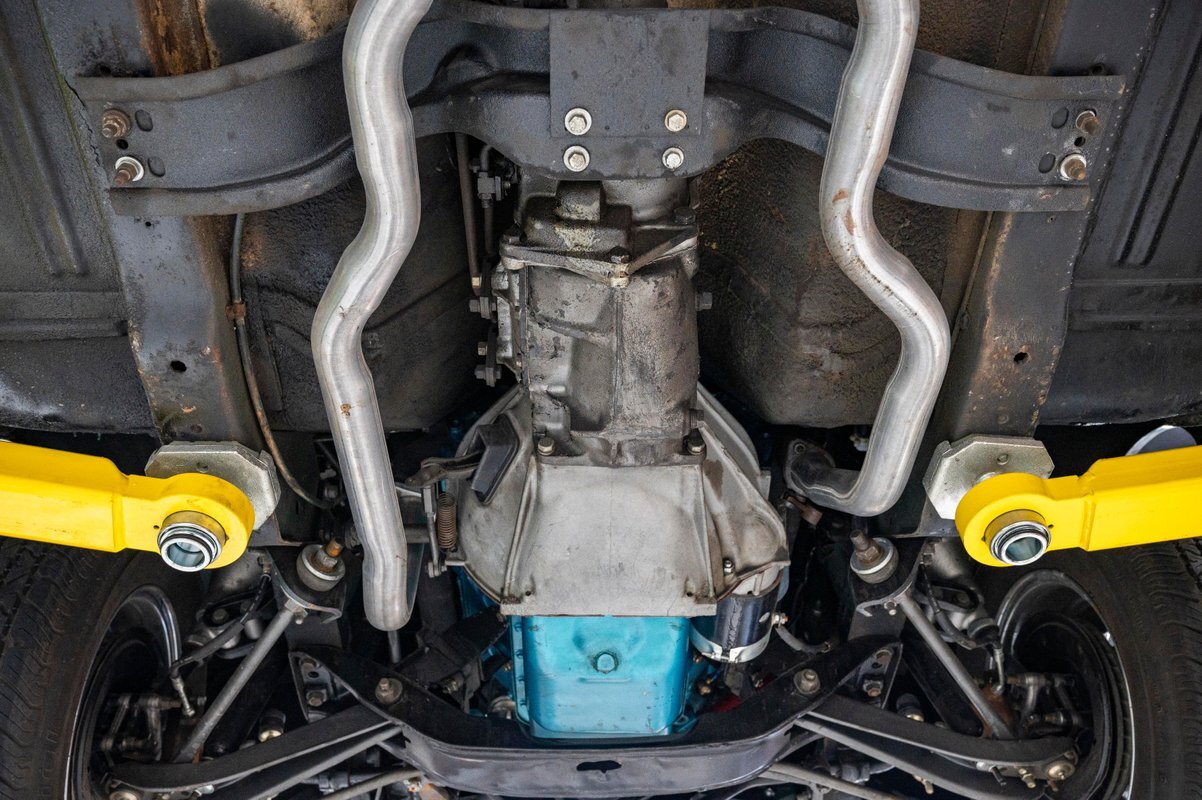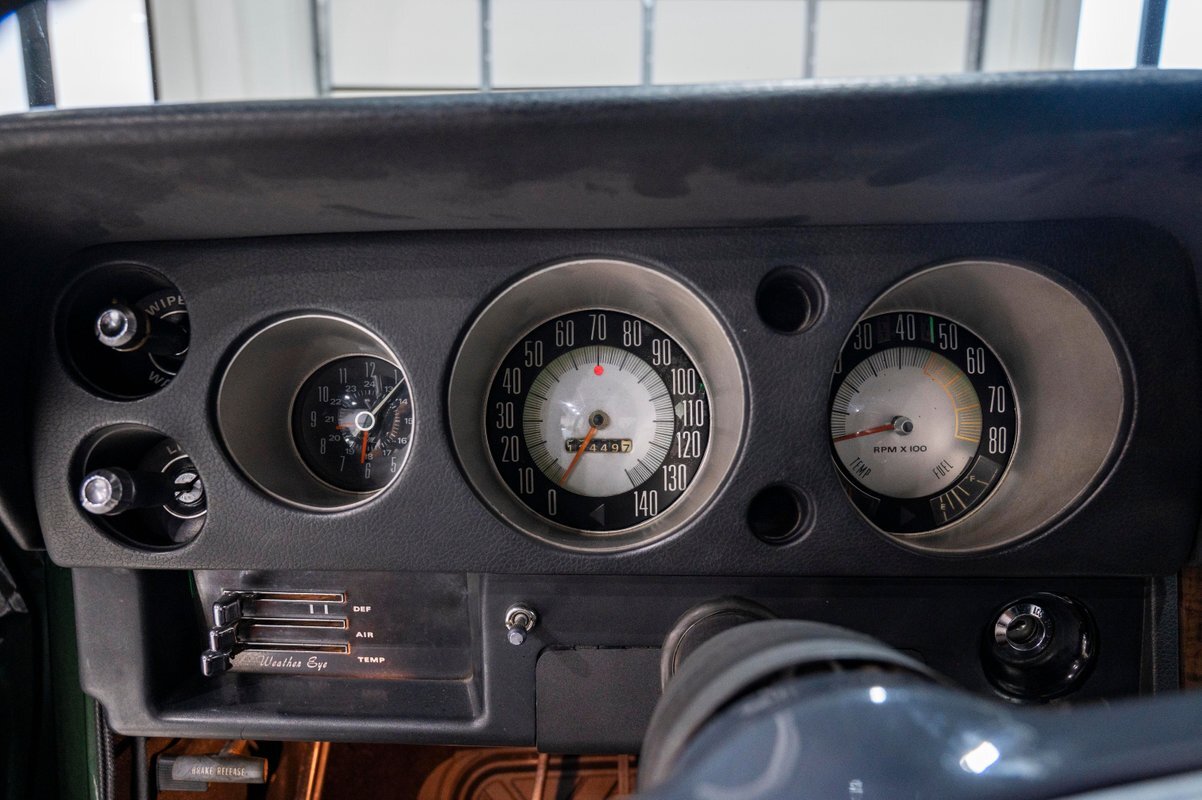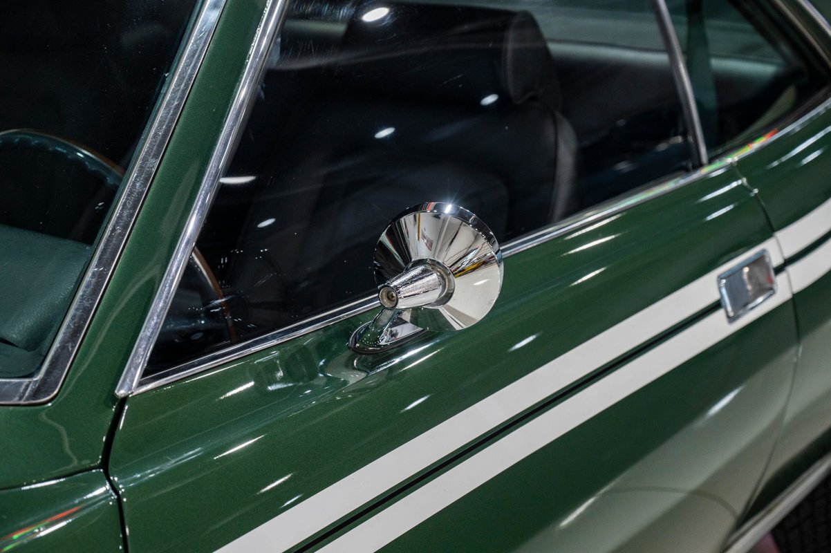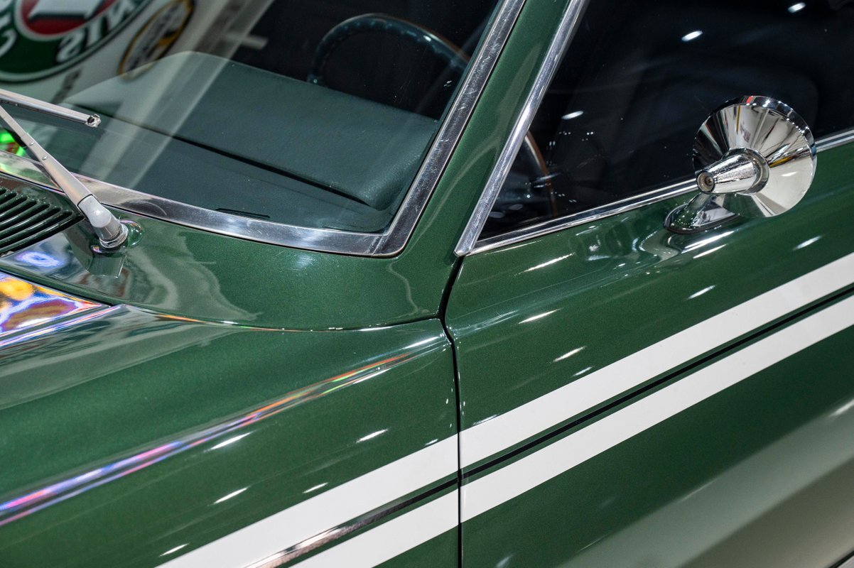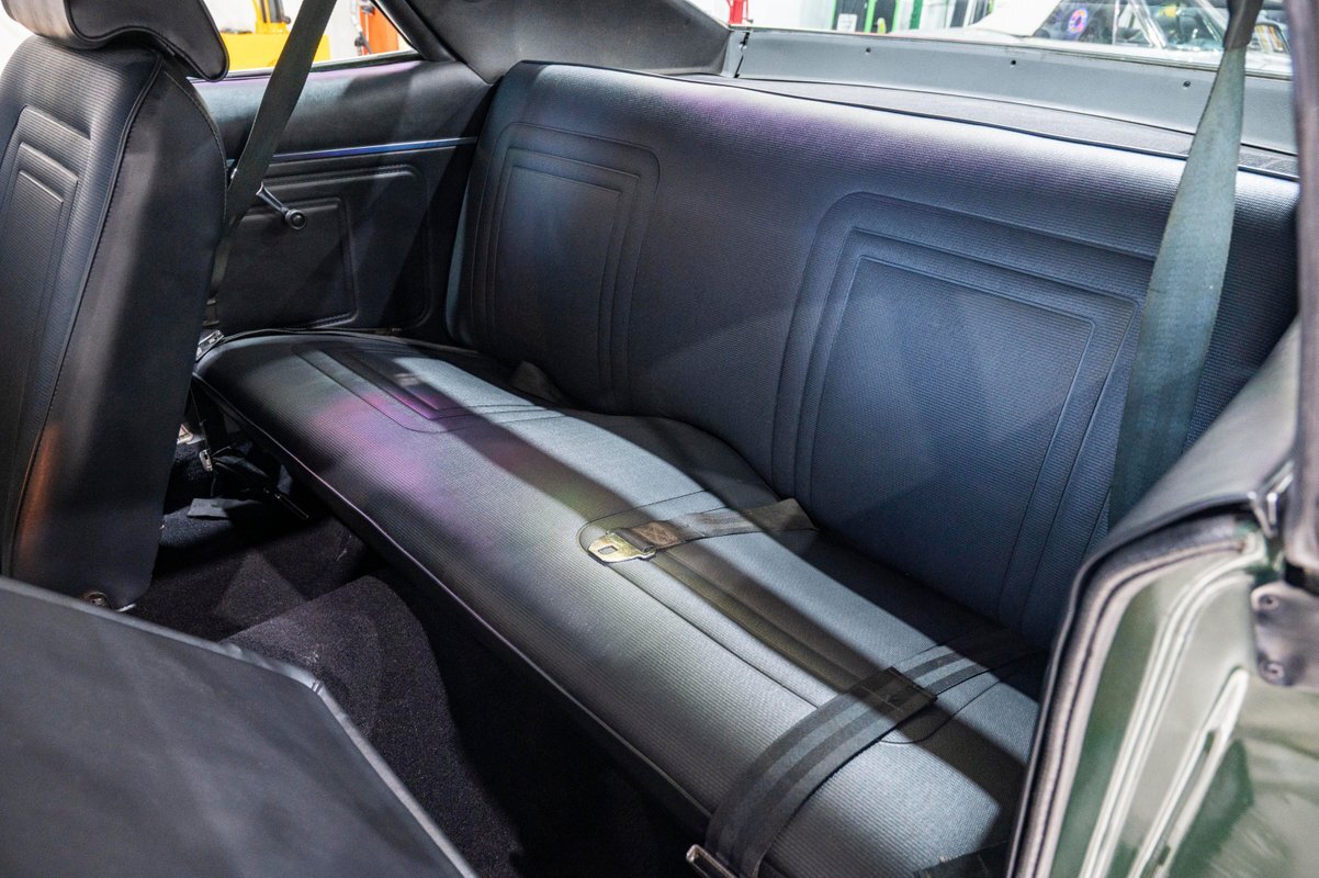 Finished in its factory-spec Hunter Green exterior with the optional Side-Stripe Package and a Legendary Charcoal Gray interior, this one has also the desirable T-10 4-speed, Hurst Competition Plus shifter. In addition, the highly coveted "Go Package" included on this example provided front disc brakes, 5-spoke Magnum 500 wheels and Redline tires, "Twin Grip" limited slip differential, heavy-duty suspension with thicker sway bars, and a matching 8,000 PRM tach.
