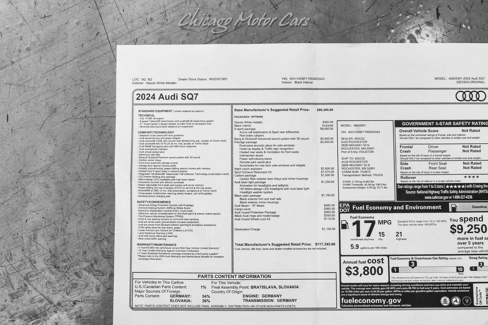 **ORIGINAL WINDOW STICKER LIST: $117,345**