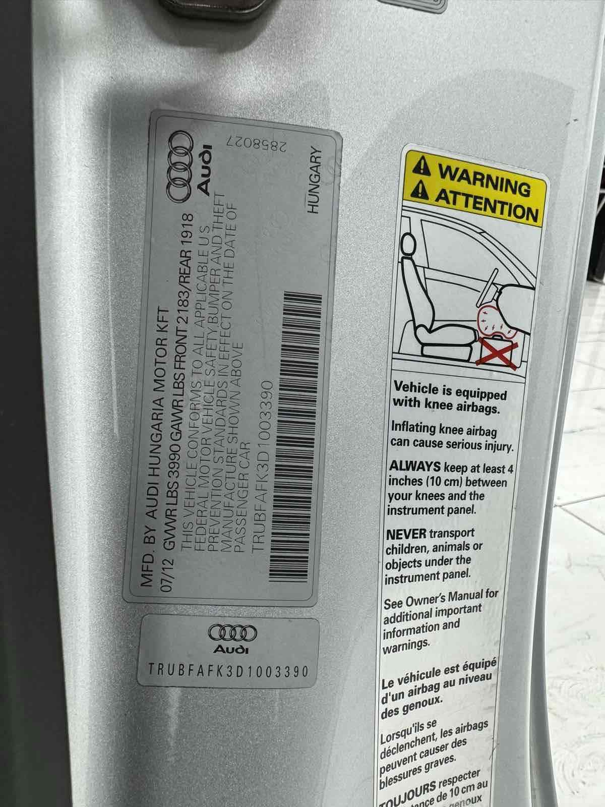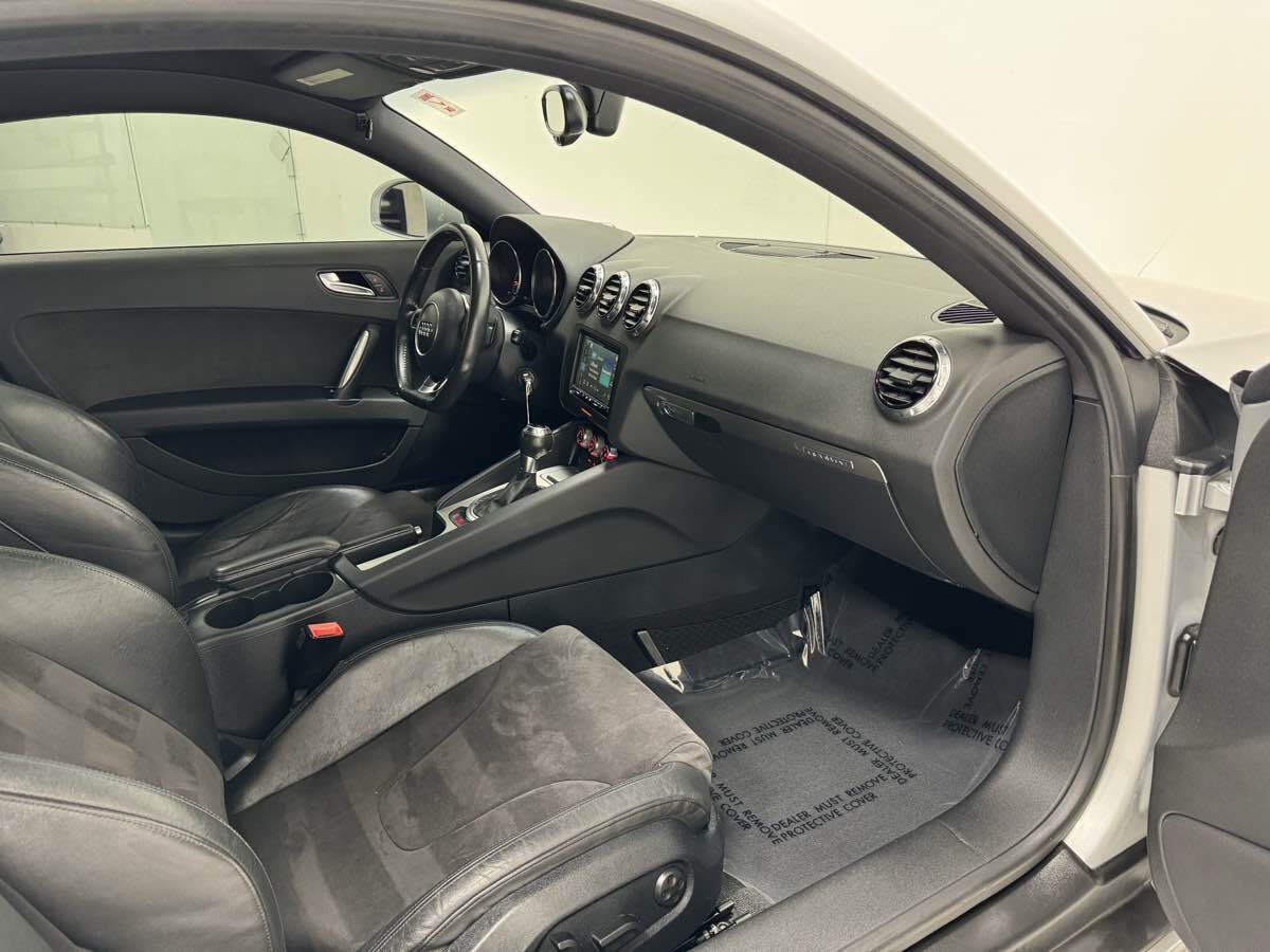 Our agile 2013 Audi TTS Premium Plus quattro Coupe displayed in Ice Silver Metallic is ready for fun. Powered by a TurboCharged 2.0 Liter 4 Cylinder offering 265hp paired to a 6 Speed dual-clutch Automatic gearbox designed to rocket you to 60mph in a mere 5.3 seconds. This All Wheel Drive coupe scores nearly 29mpg on the highway plus an unparalleled grip and control. With graceful lines and a taut muscular build - our TTS Premium Plus is easily distinguishable on the road and is further enhanced by the rear spoiler. The TTS Premium Plus offers a finely crafted interior with a flat-bottomed steering wheel and driver-intensive dashboard that project a sporty feel as you relax in 8-way power leather seats. Enjoy the convenience of heated exterior mirrors - rain-sensing wipers - automatic climate control and technology that is driven by your needs. You'll feel absolutely confident as you get behind the wheel of this Audi secure in the knowledge that Audi engineers have meticulously designed this car to keep you safe from harm with many advanced safety features. Reward yourself today with this exhilarating TTS Premium Plus coupe. Save this Page and Call for Availability. We Know You Will Enjoy Your Test Drive Towards Ownership!