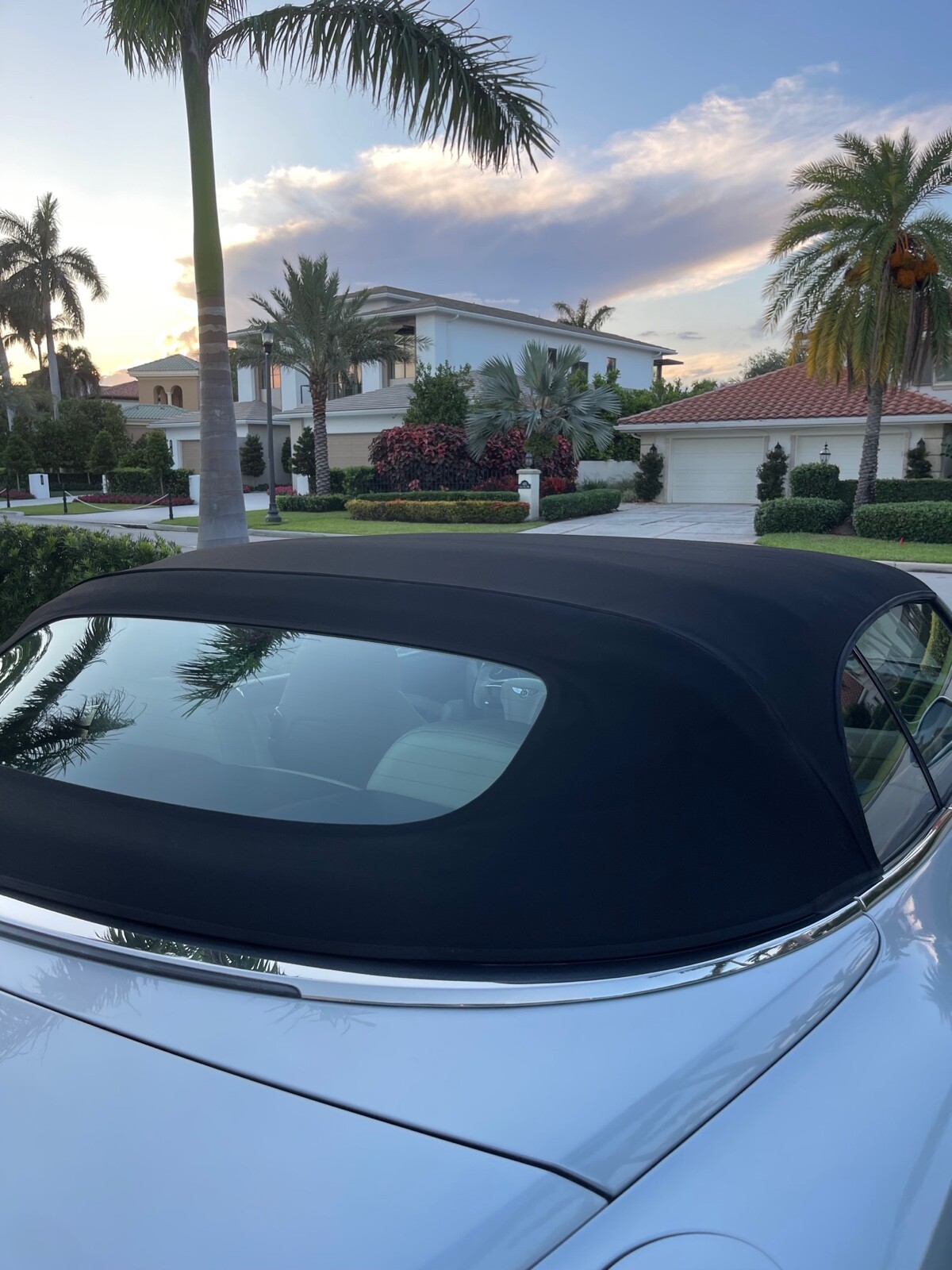SHE HAS BEEN GARAGE KEPT HER WHOLE LIFE IN A CLIMATE CONTROLLED GARGE WITH A CAR COVER ON IT WHICH CREDITS HER NEAR PERFECT INTERIOR AND EXTERIOR. SHE IS A BEAUTIFUL MOONBEAM SILVER WITH A RICH FLAWLESS LINEN INTERIOR & LIKE NEW BLACK CONVERTIBLE TOP. THE CAR WAS OWNED BY A RETIRED DOCTOR WHO USED IT WINTERS AT HIS HOME IN SOUTH FLORIDA. IT WAS THEN STORED DURING THE SUMMER IN HIS CLIMATE CONTROLLED GARAGE.