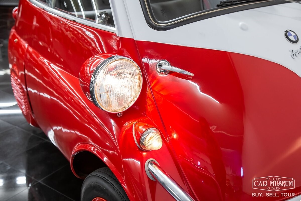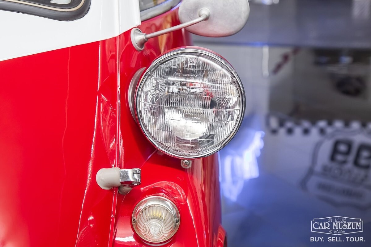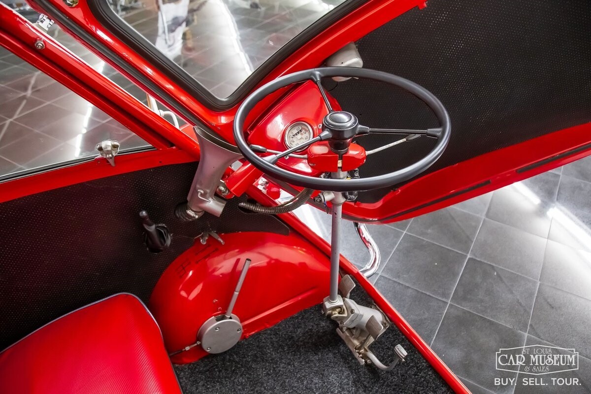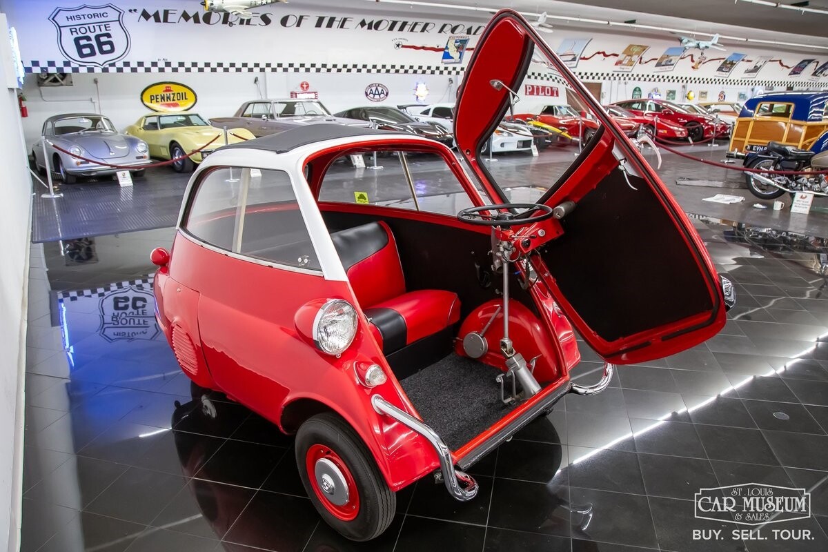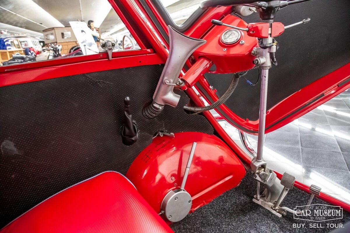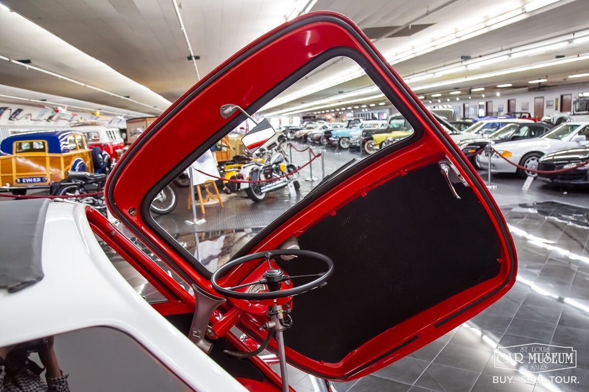 This Isetta was refinished in a period correct Red and White color combination with a two-tone red and black vinyl interior. Featuring a black cloth sunroof, heater, windshield defroster, 10" steel wheels with chrome hubcaps wrapped in BF Goodrich Silvertown tires. Since its arrival at our museum, we have replaced the battery, rubber shift boot, upper & lower engine mounts and changed the engine oil, transmission fluid, and chain case oil. One of only 3,925 U.S. models produced for 1958 and we are very pleased to showcase this BMW Isetta 300 that is sure to be the star of any show and grab attention anytime it is out. Thank you for your interest and please feel free to contact us regarding this rare piece of BMW microcar history!