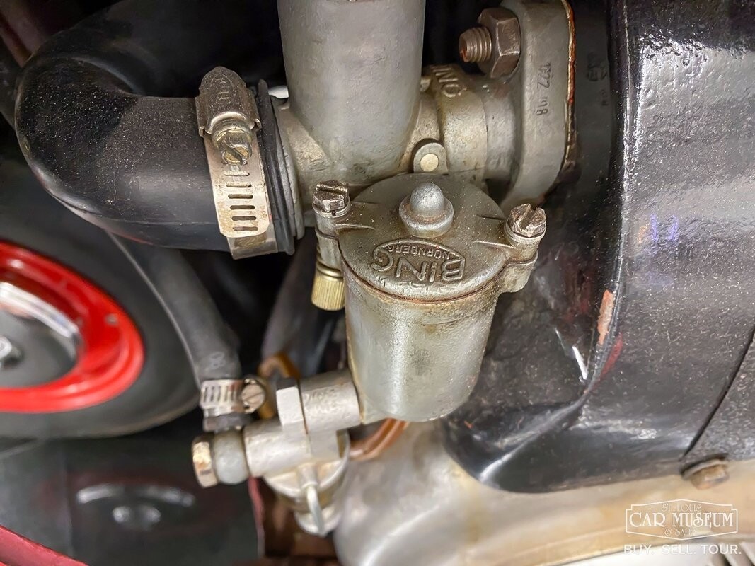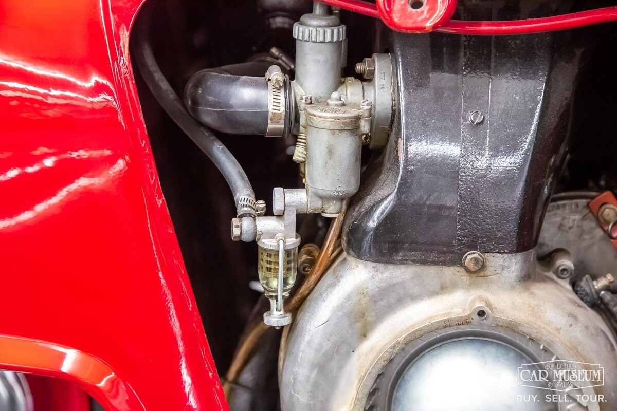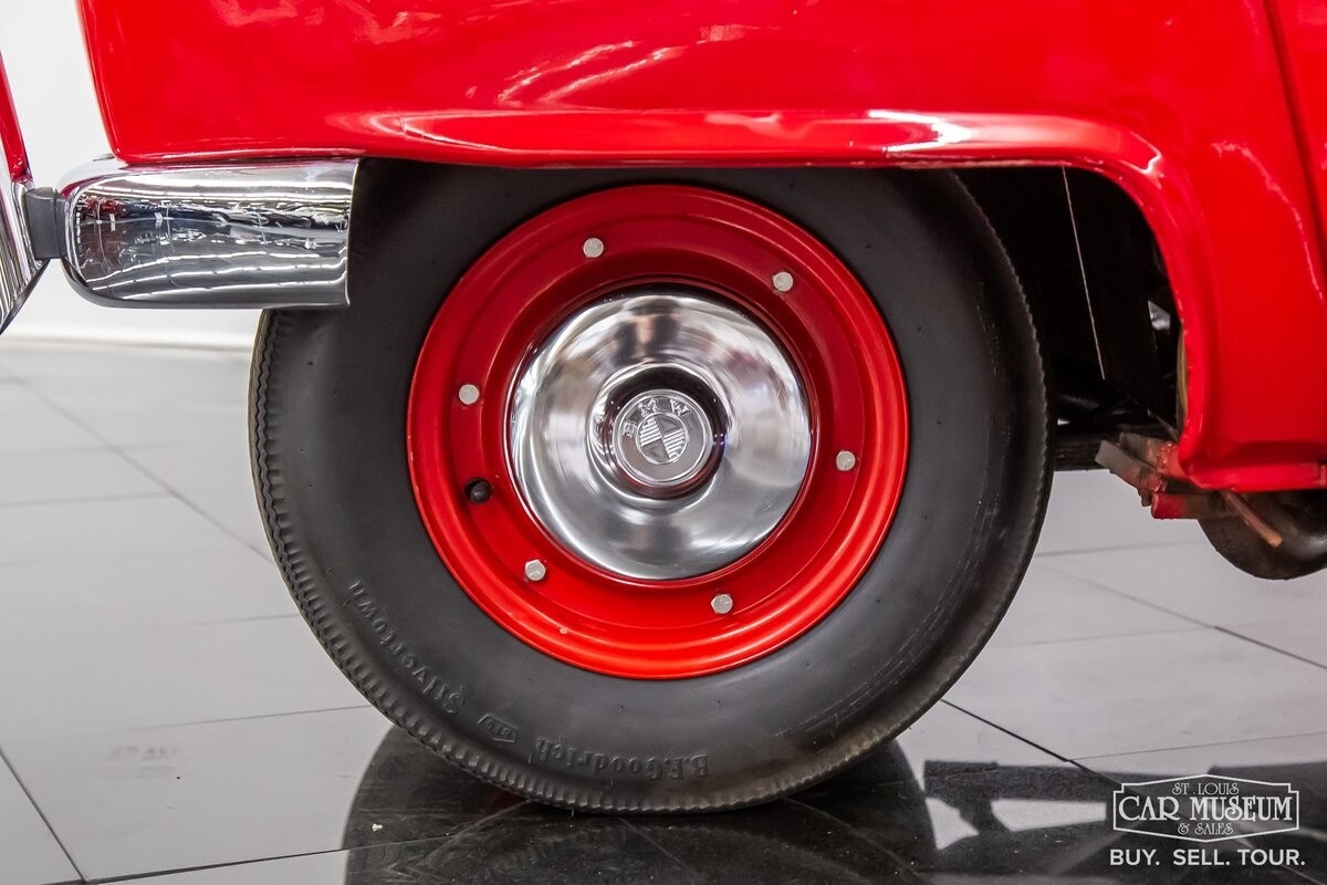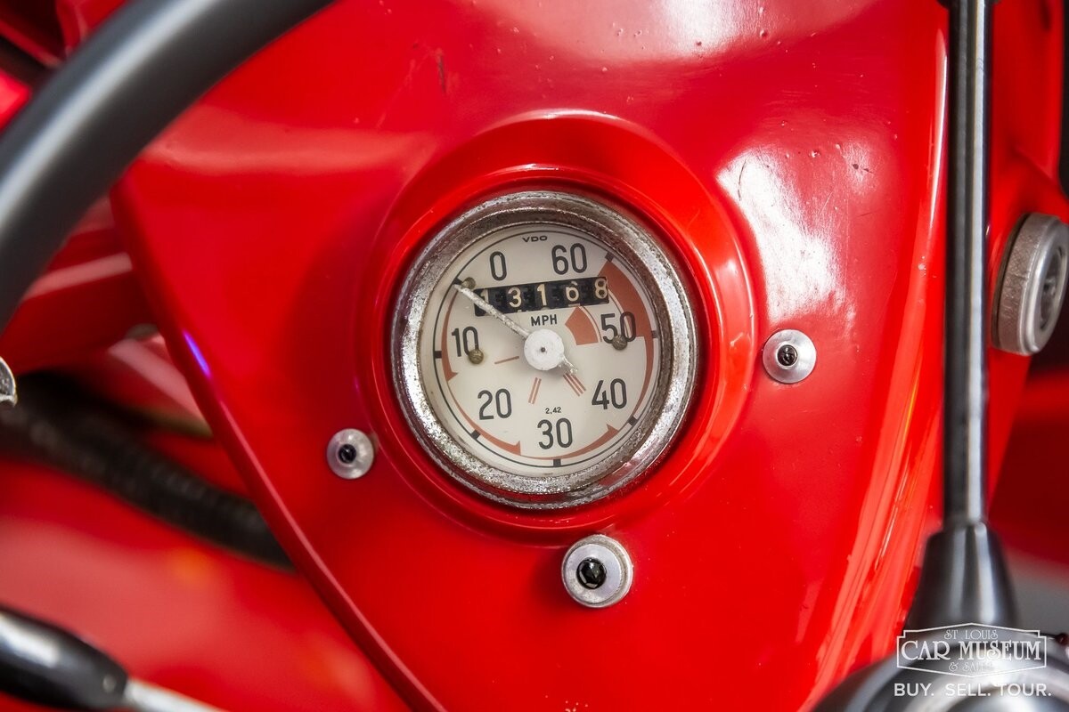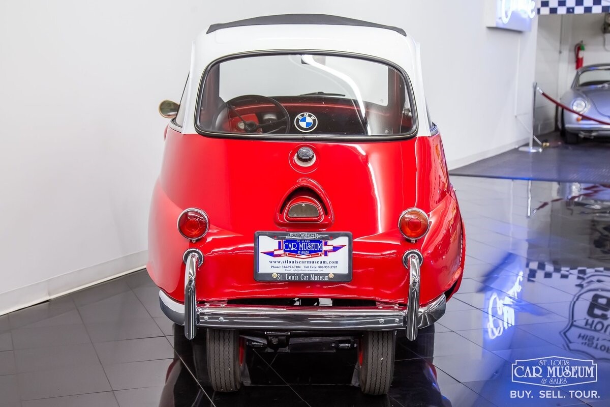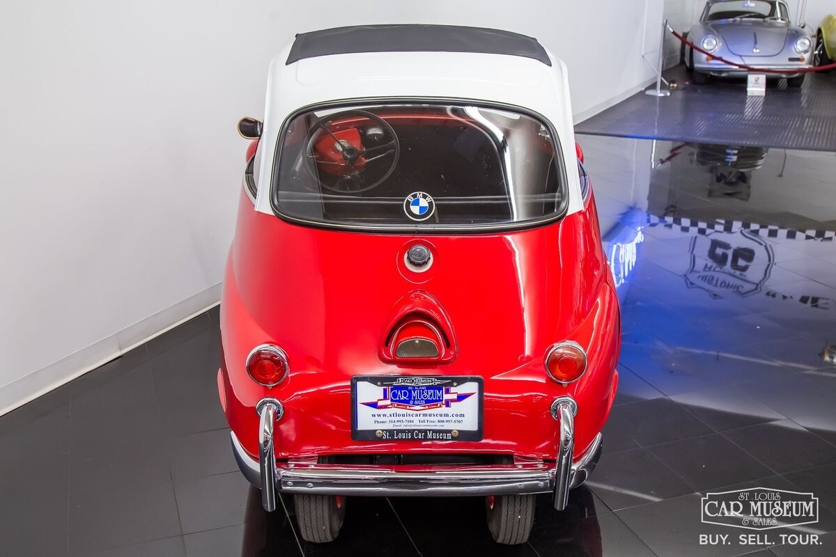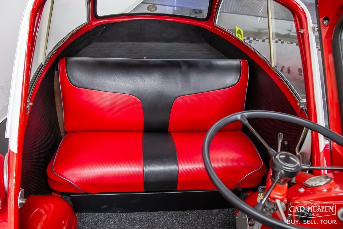This Isetta was refinished in a period correct Red and White color combination with a two-tone red and black vinyl interior. Featuring a black cloth sunroof, heater, windshield defroster, 10" steel wheels with chrome hubcaps wrapped in BF Goodrich Silvertown tires. Since its arrival at our museum, we have replaced the battery, rubber shift boot, upper & lower engine mounts and changed the engine oil, transmission fluid, and chain case oil. One of only 3,925 U.S. models produced for 1958 and we are very pleased to showcase this BMW Isetta 300 that is sure to be the star of any show and grab attention anytime it is out. Thank you for your interest and please feel free to contact us regarding this rare piece of BMW microcar history!