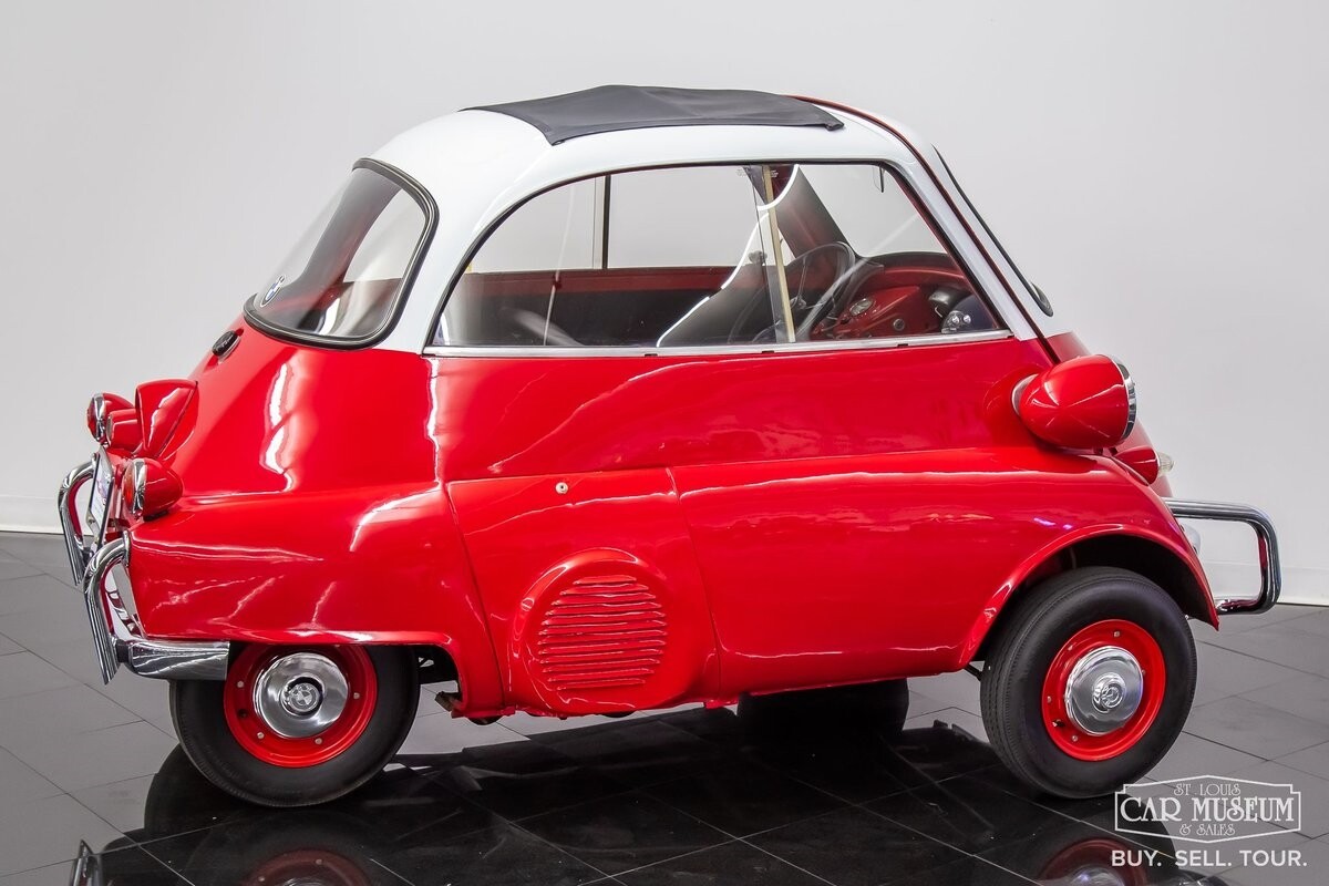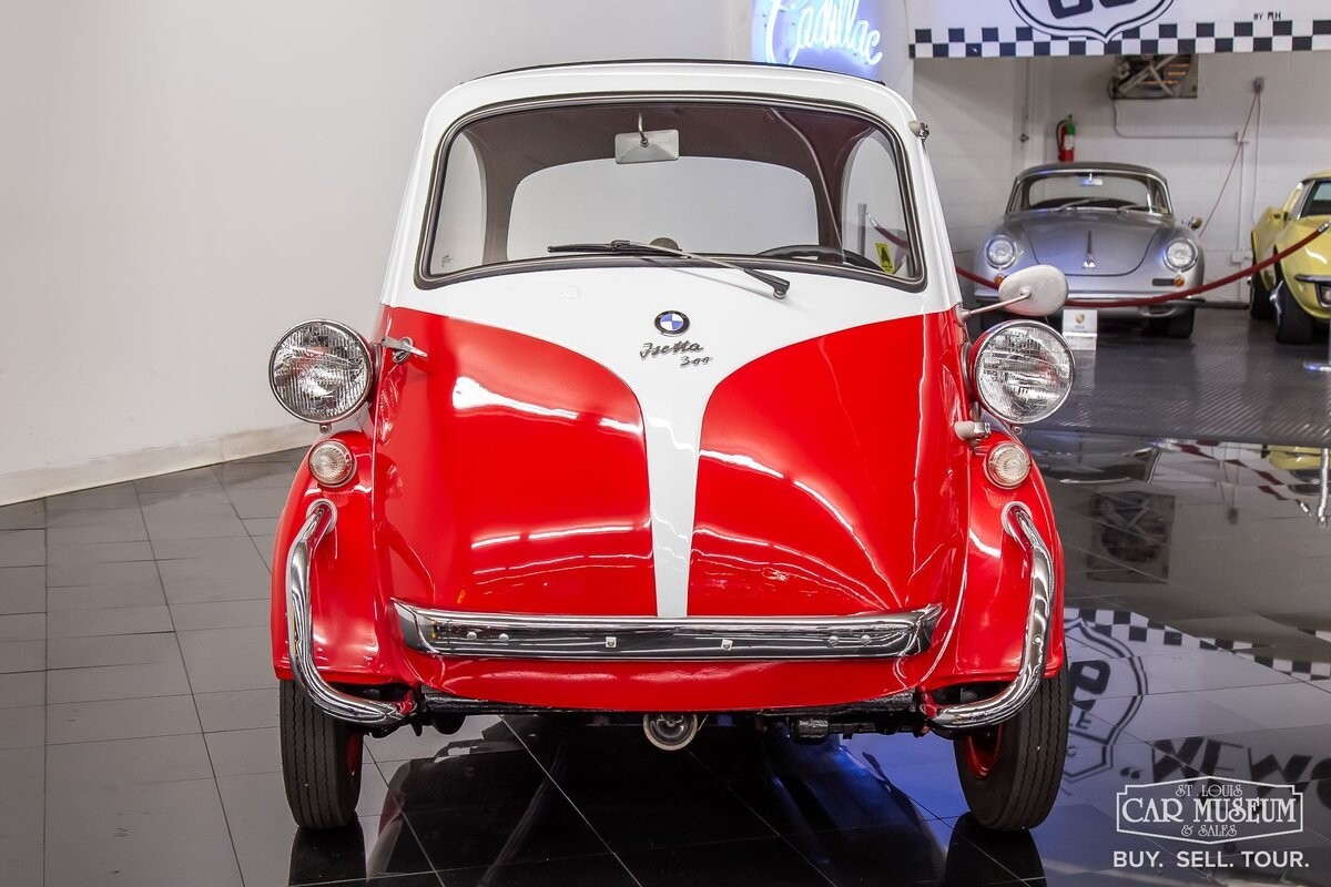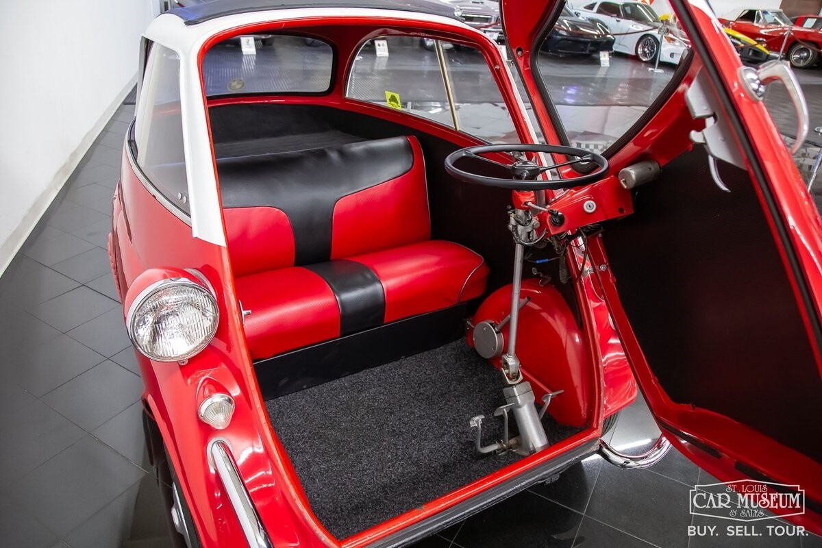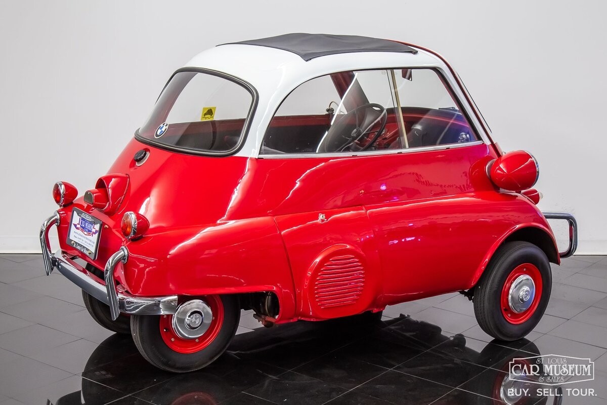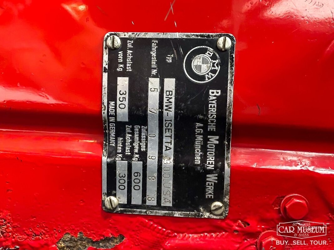 We are excited to offer our 1958 BMW Isetta 300 with its original 298-cc four stroke engine that produces 13hp to the rear wheels and is paired with a 4-speed manual transmission with reverse. Features a unique Dynastart system which incorporated a compact starter and generator into one unit. A rare microcar with its iconic hinged center front door with connected steering wheel that leads to the single seat large enough for 2 and with a cargo area that also holds the spare tire. A left-hand drive with the gear shifter, choke controls, and emergency brake all located on the left side for easy access. The sunroof can be retracted and provides a more spacious, convertible-like feel when out on the road on summer days! And the Isetta's easy sliding windows provide some fresh air in the cabin, and a heater/defrost system allow for cooler weather enjoyment as well.