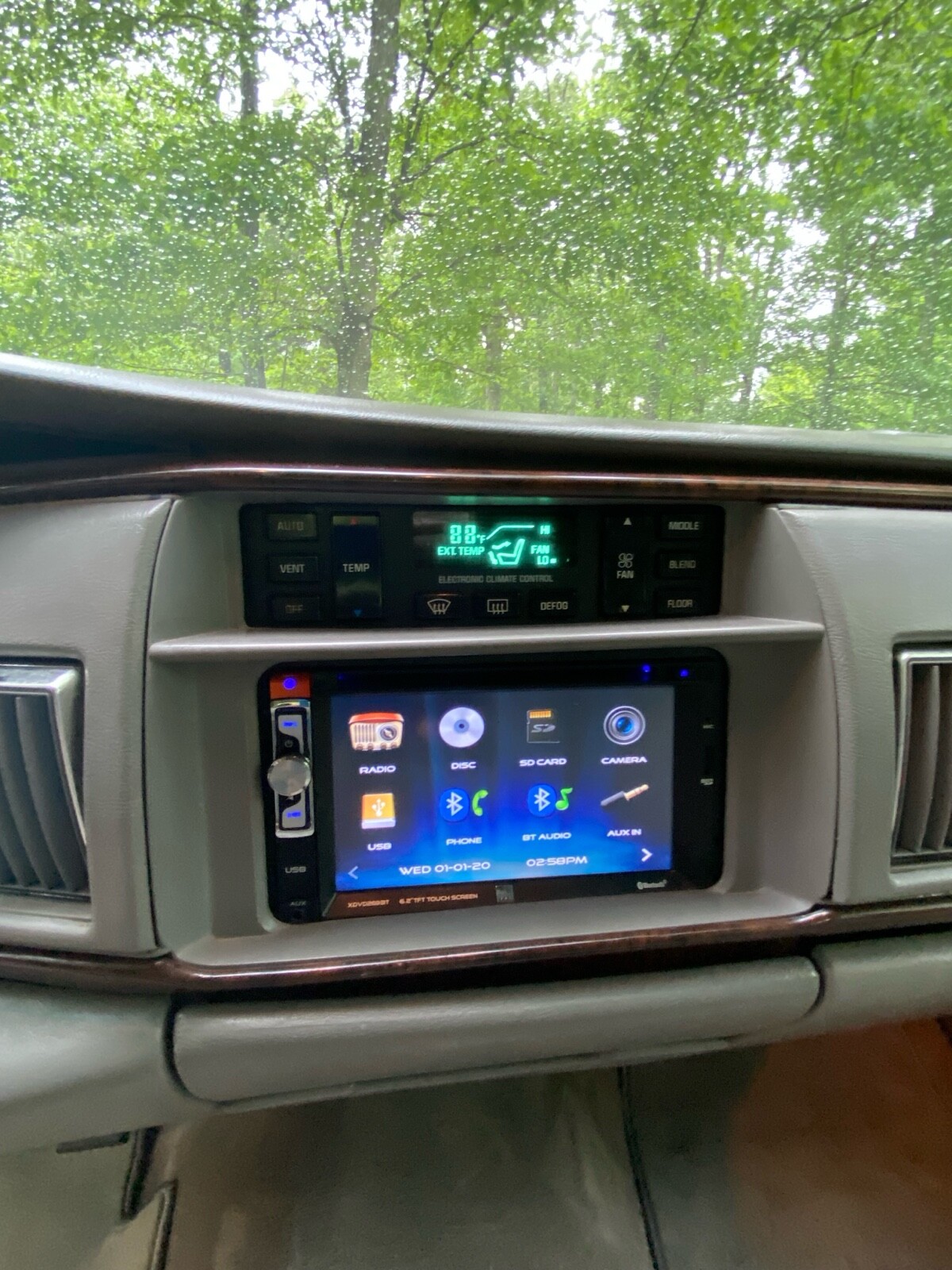 It has a touchscreen bluetooth CD/DVD player. I have the original radio with AM/FM cassette and CD player, it will come with the car.