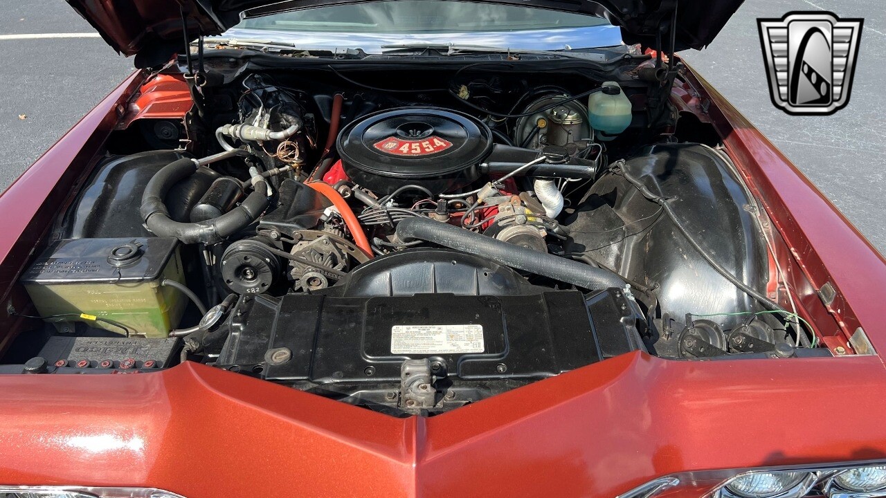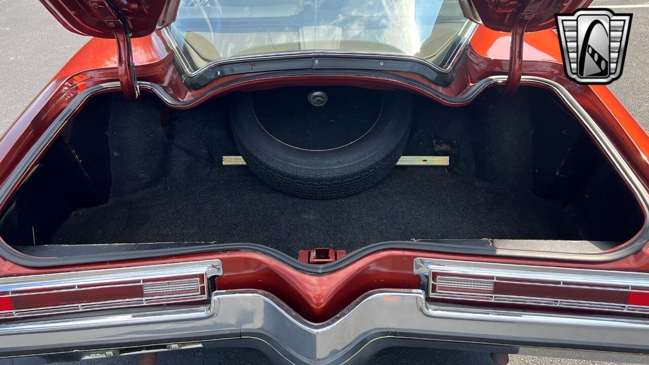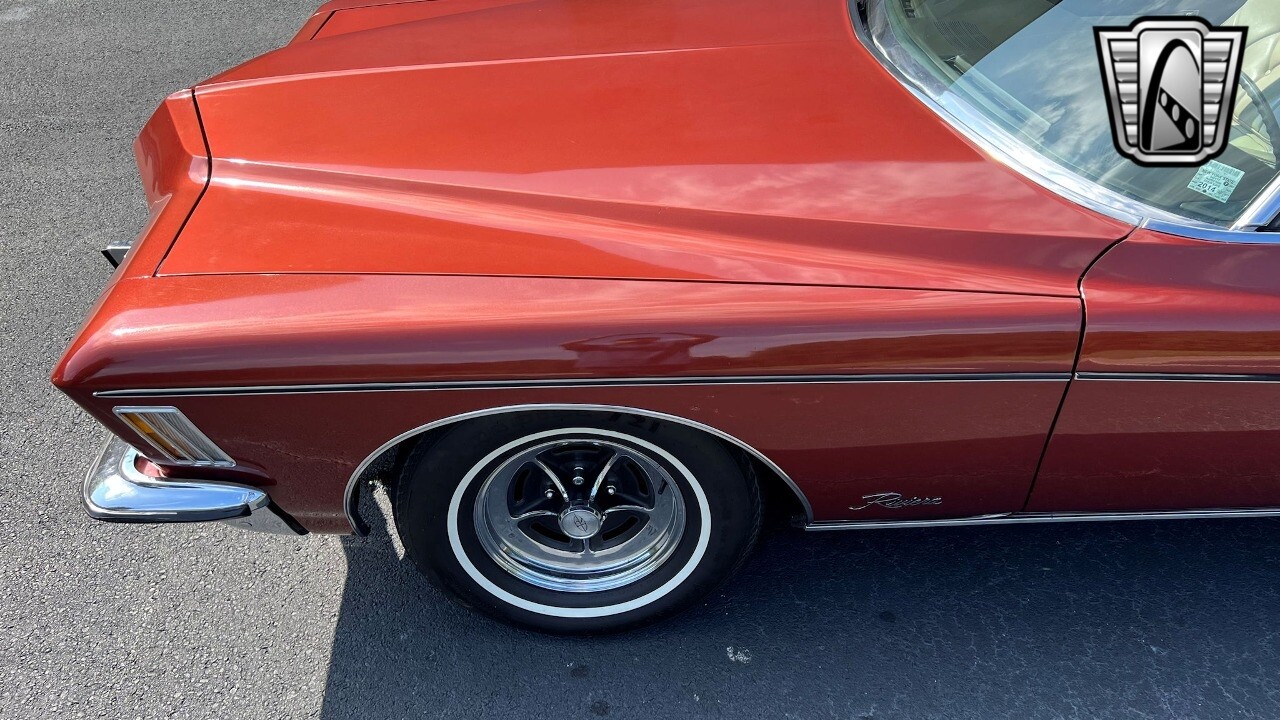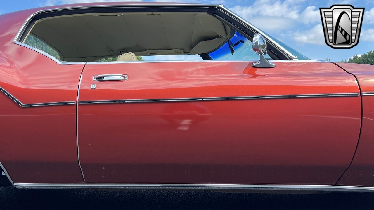 For sale is a striking 1972 Buick Riviera, bathed in a vibrant, eye-catching orange color that beautifully complements the sleek proportions and standout design of this classic ride. The Riviera's sense of luxury and style continues inside with a pristine white interior which provides a clean, refreshing contrast to the bold exterior color.