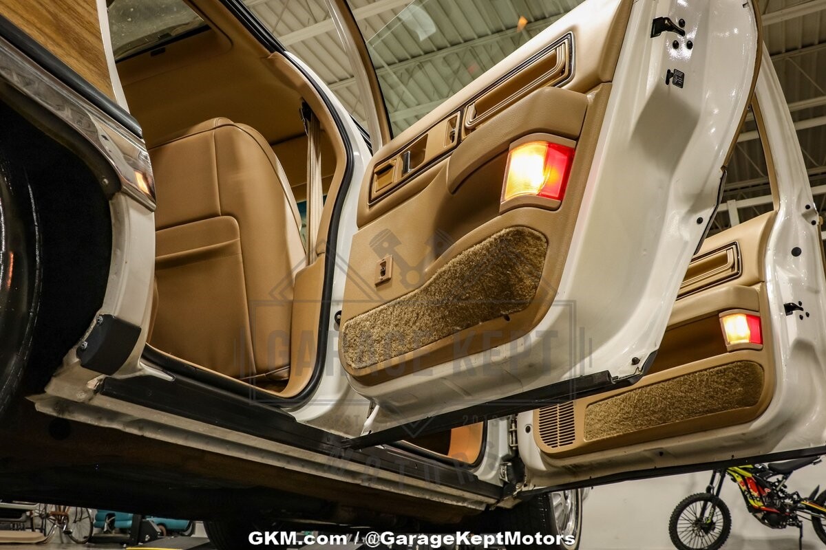Dressed in a pristine white exterior adorned with iconic wood paneling, this Buick Roadmaster Estate exudes sophistication and charm wherever it goes. Step inside the spacious and inviting cabin, and you'll be greeted by a luxurious tan interior that's as comfortable as it is stylish. With third-row seating, there's plenty of room for the whole family and then some, making every journey a joyous occasion.