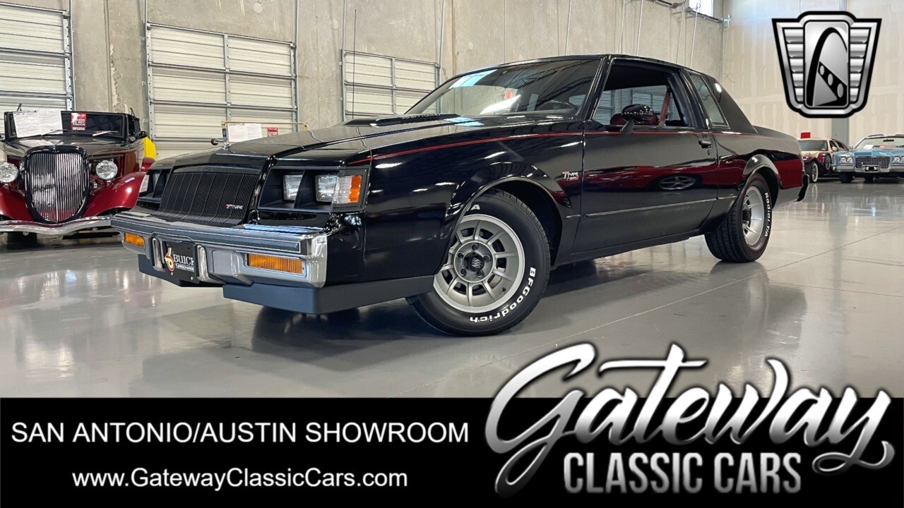 Gateway Classic Cars of San Antonio/ Austin is proud to present this 1986 Buick Regal Type T colored in a Black exterior finish, complimented by a plush burgundy cloth interior. After the energy crisis of the seventies and the ever-encroaching emission standards muscle cars lost a lot of their muscle mass. Buick hit the scene with their lineup of Turbo V6 powered Regals and dominated the muscle car market. Under the hood, you'll find a 3.8L Turbo Charged LC2 V6 engine paired with a four speed THM200-4R automatic that have both been fully rebuilt with factory GM parts, including GM TCC solenoid, AM trans filter, GM head gaskets, GM water pump and ARP head studs. It's not just the engine that makes this vehicle stand out; it's also equipped with a plethora of features designed for your comfort, convenience, and safety. Stay cool with the rebuilt air conditioning system thanks to the new compressor, filter drier and orifice tube. Maintain control of your ride effortlessly with the rebuilt power steering with new intermediate midshaft and steering gear. For your entertainment, it comes with an AM/FM radio so you can enjoy your favorite tunes on the go. The Type T is also equipped with power brakes, power locks, power seats, and power windows for added comfort and convenience, making every drive an enjoyable experience. On top of these, the vehicle also has cruise control, allowing for effortless long-distance driving. This Buick has a long list of new parts that add to the driving quality and overall experience of this timeless classic..