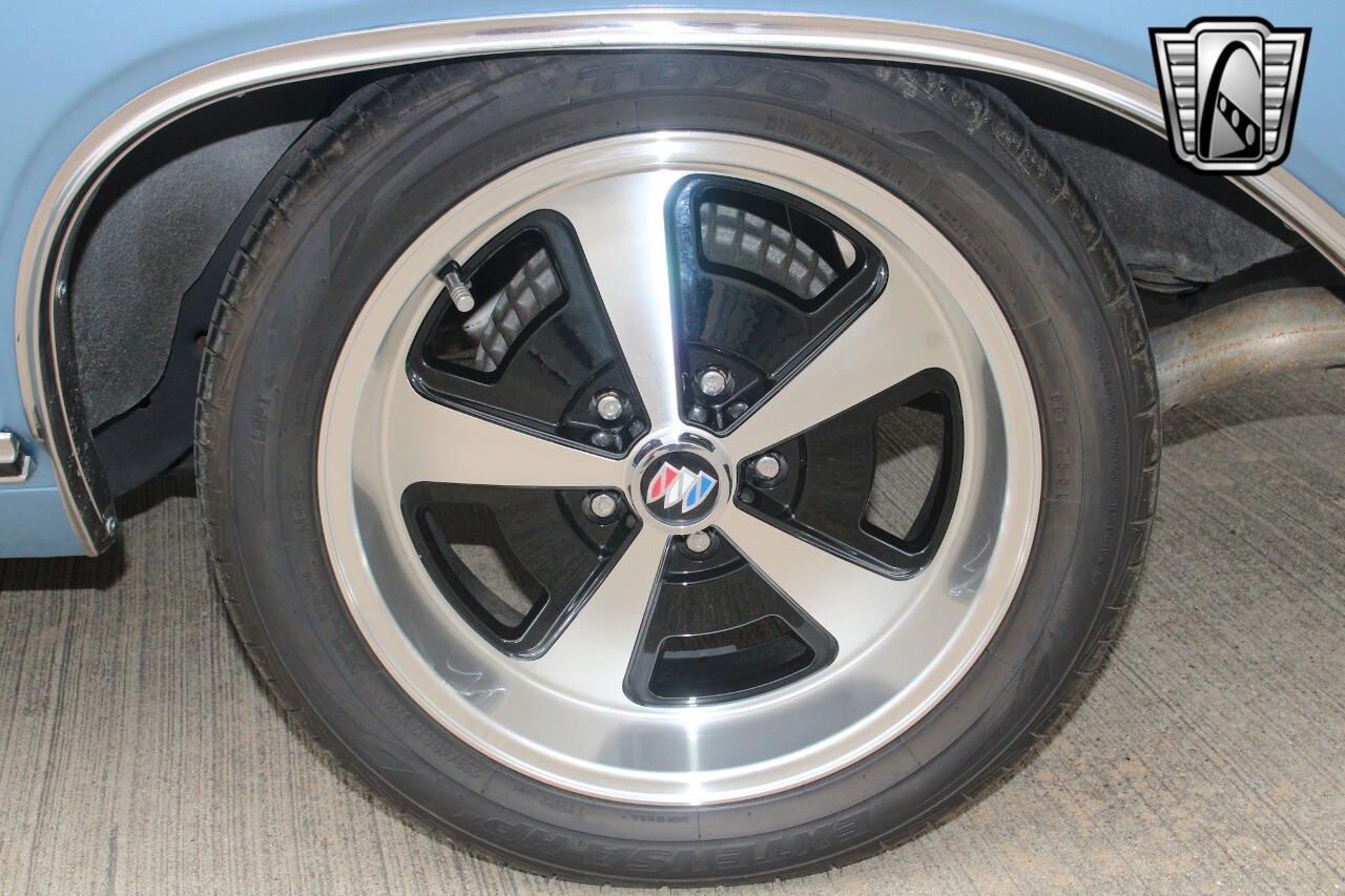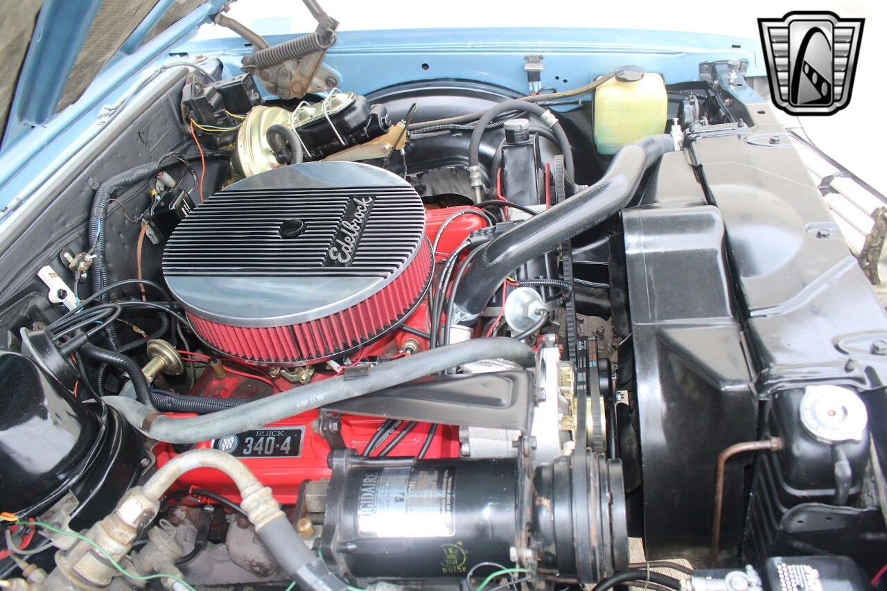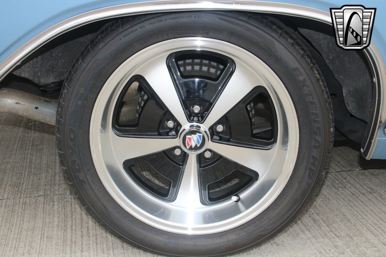 This Skylark is equipped with the less common and much more potent 340-4 configuration (compared to the 300 CID/2BBL standard V8). The rebuilt 340 CID V8 is topped with a 4BBL carb and backed by a smooth-shifting 2-speed Powerglide automatic transmission, making this a great cruiser. Its owner recently completed a total front end rebuild and threw in some extras during the process. He added a set of MagnaFlow mufflers, an Edelbrock electric fuel pump, installed a new water pump, thermostat, and hoses, and replaced all the drive belts. A set of 2-inch drop spindles were installed, as well as new upper and lower control arms. The brake system was converted to a power setup, and the front drums were swapped out for disc brakes, including slotted/drilled rotors. The rear brake cylinders and shoes were also replaced, and a larger UMI front swaybar was also installed, as well as KYB gas shocks at all 4 corners. The original 14-inch steel wheels were replaced with a new set of 17-inch aluminum wheels, styled to look like the OEM wheels, and low-profile performance radials were added for better handling and appearance. A complete paint correction was also done, giving this car a very classy look indeed.