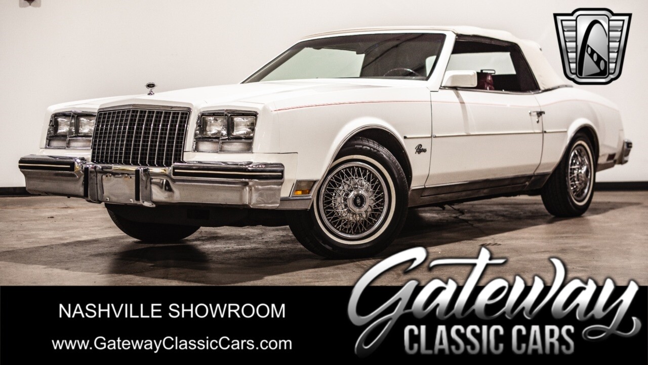 Gateway classic cars of Nashville is pleased to digitally present to you this 1982 Buick Riviera Convertible. What is more fun than a drop top Rivi? Certainly not a barrel of monkeys. This Riviera has a great color combination, stunning white exterior is and a luxurious red leather interior making this car impossible to miss.