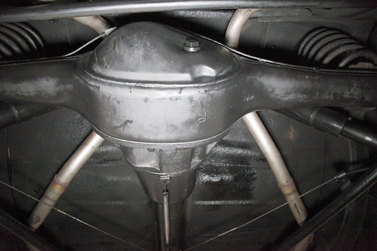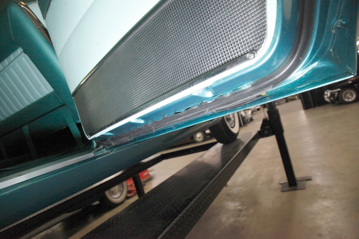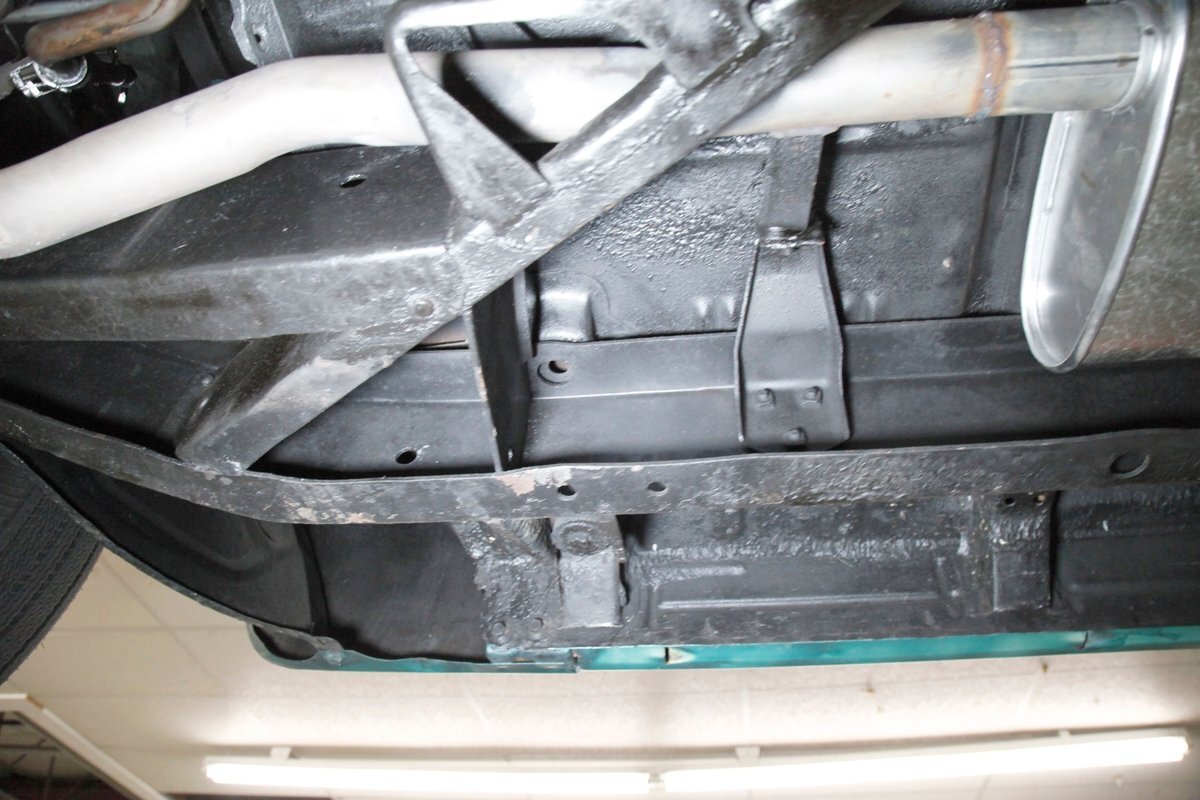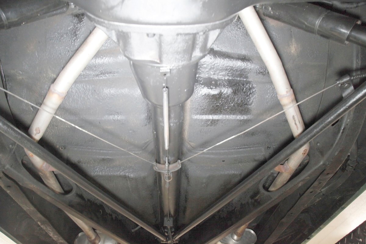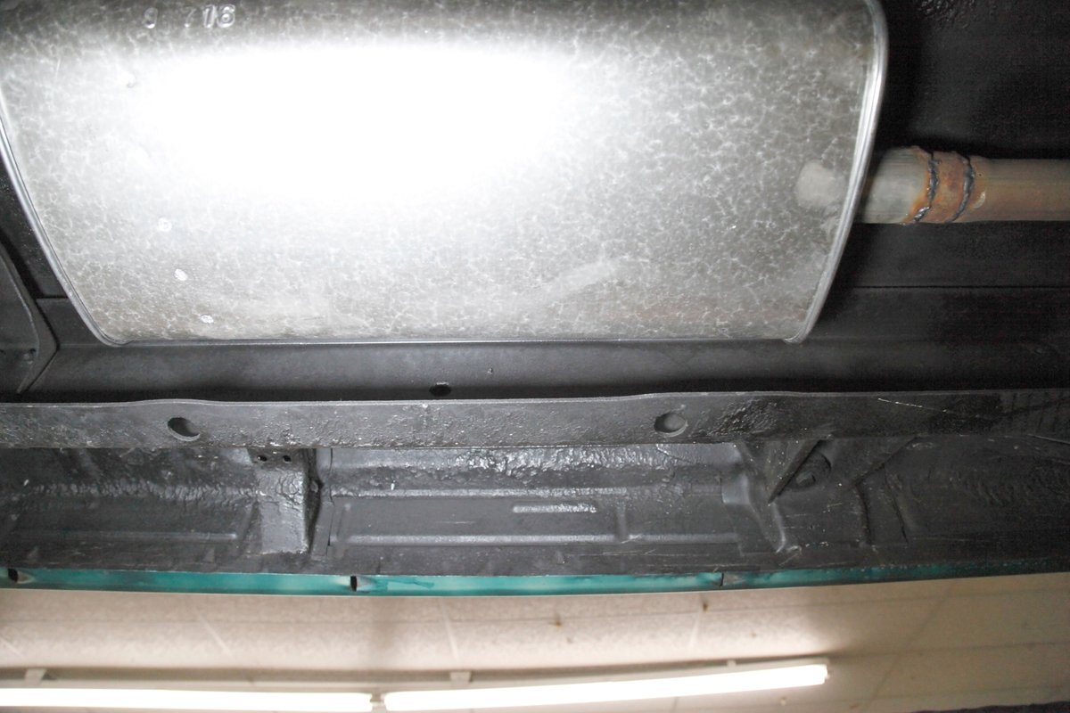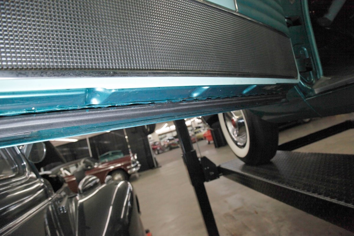 Underneath is all solid for the X framing as well as the stamped steel floor pans and inner fenders. There is a lot of black paint and undercoating on the flooring and frame and has kept this large skate all structurally sound. Independent coil spring suspension and leaf spring suspension provide the ride front and rear and power drum braking is all around. A new dual exhaust is in for the exhale and we note this car is equipped with power steering.