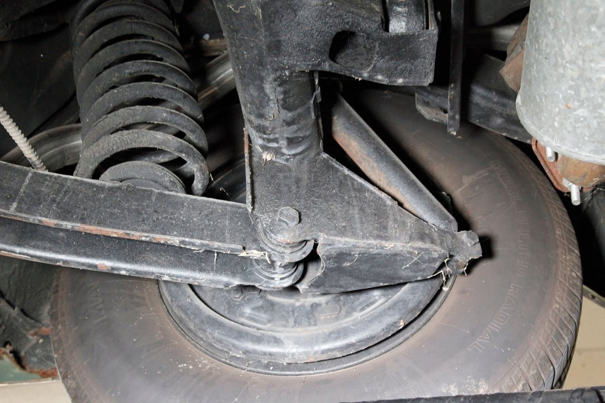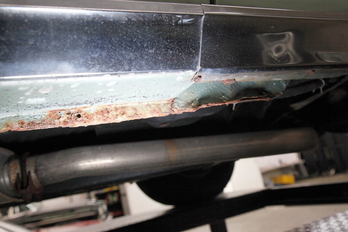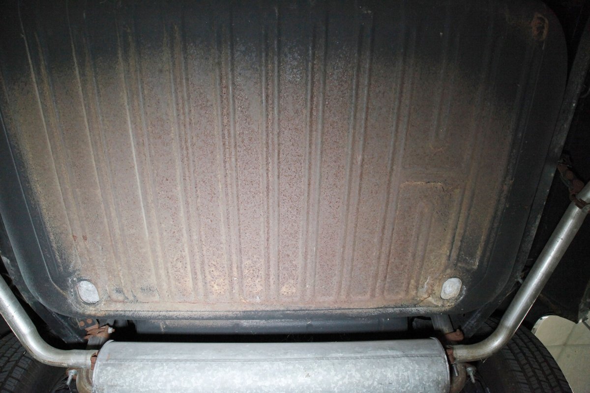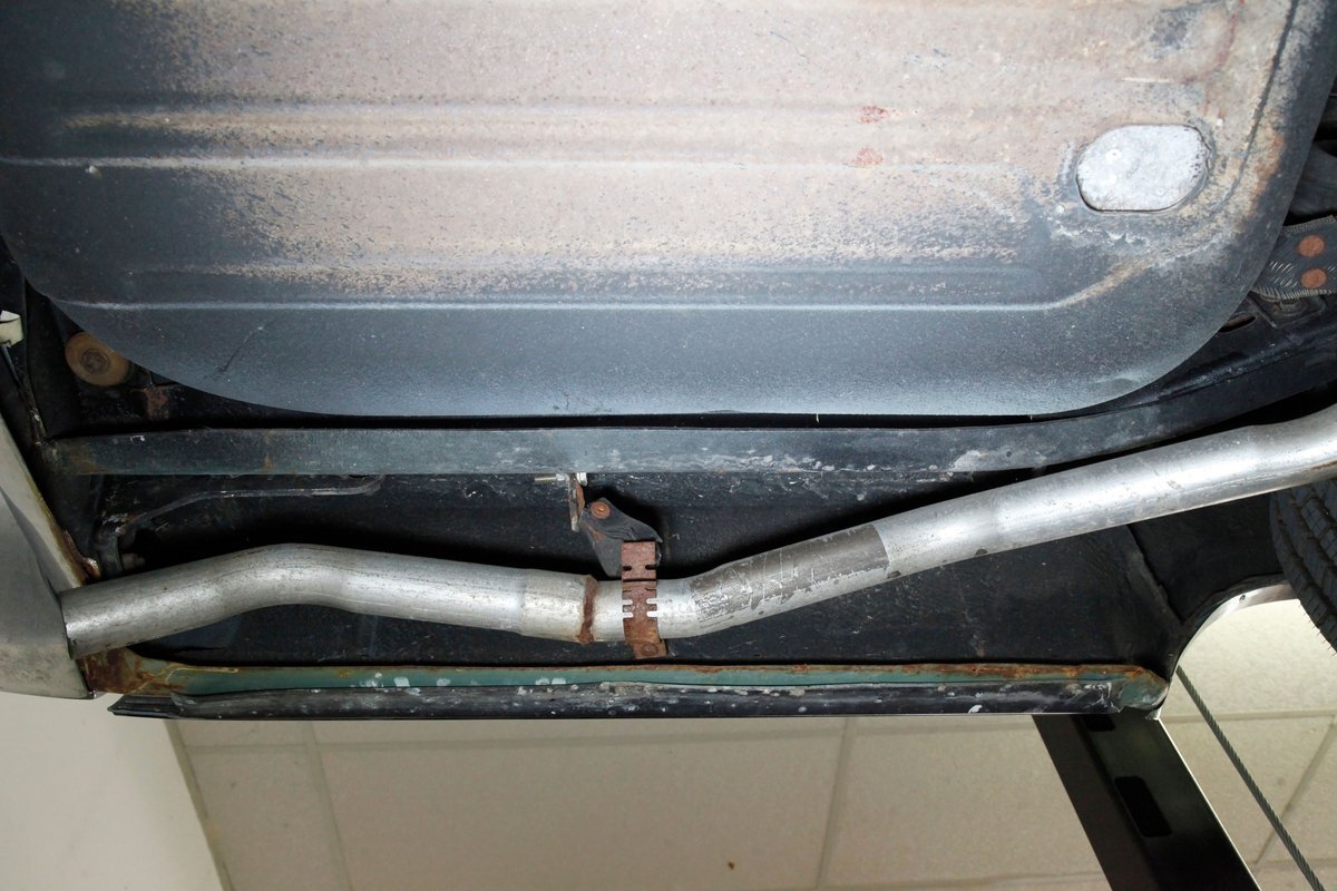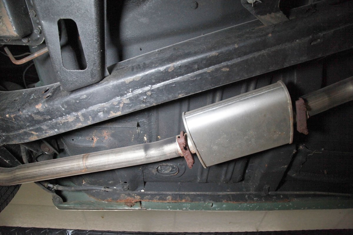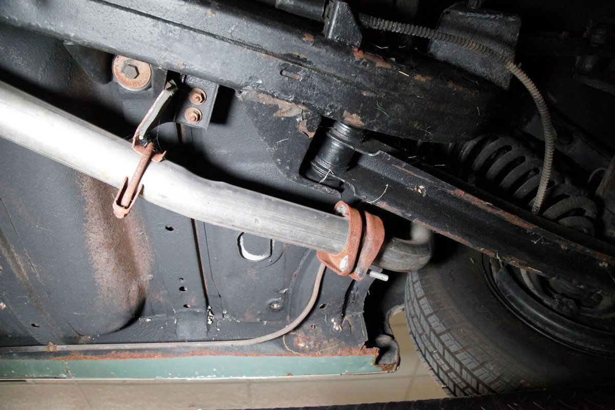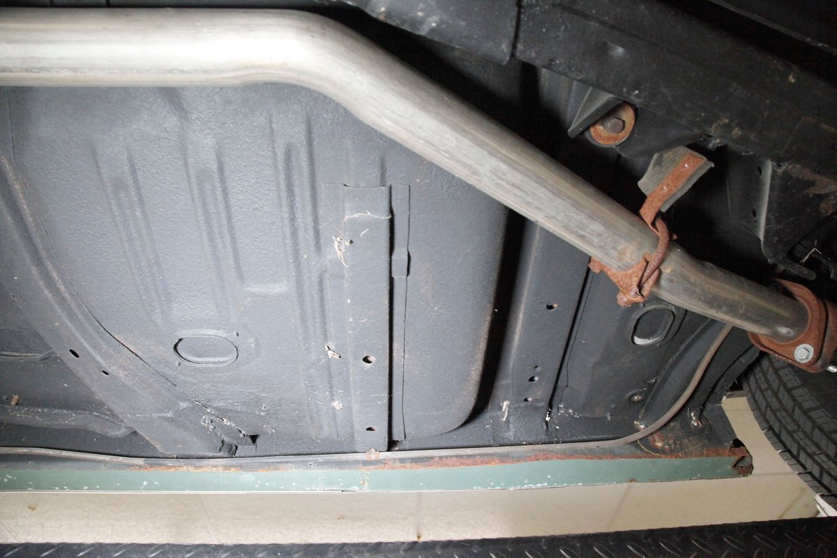 Clean with an ample application of rustproofing texture coating is seen throughout and even surface rust hasn't dared to rear its head save for the untreated components. All strong and black for the frame, flooring, rockers and suspension with only a light dusting of surface rust where the paint was thinly applied. Independent coil spring suspension up front and a 3 link with coil springs in the rear provides the ride, and the power drum braking brings you back to earth safely. Also, a stock style dual exhaust system is seen snaking its way rearward from the Nailhead under the hood.