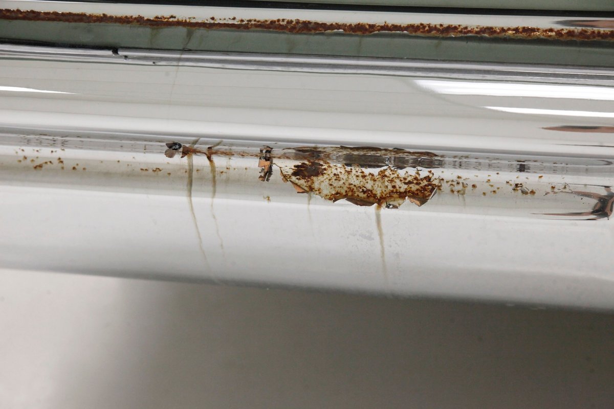Straight steel all bathed in a respray of the original Willow Green paint which presents very nicely. Overall, the paint is well applied with only minor inclusions and cracking of the finish but we do note some color difference on a few of the panels, particularly the driver's door along with some surface rust on the sides. Dramatic crisply peaked fenders and quarter panels are dominant features on this body, strikingly unique among the GM brands, but aiding owners with regards to outermost body locations while driving. Atop the rear quarter panel fins we see a bright stainless trim spear which flows rearward and ends just above the rear bumper and encircles the reverse lights. This thin trim spear also runs forward down the sides at the mid beltline and wraps around the clean and clear glass. Chrome for the bumpers shows some tarnishing and has some patina and rusting on the rear bumpers. Just above in the front is the grille, which is made up of horizontal chrome bar and is flanked by dual headlights on either side. More chrome trim highlights the ample windshield glass and passenger compartment. A tight dark green convertible top is on with no tearing and only minor staining. This top is power actuated and has a plastic rear window which has a light fogging to it. 15-inch turbine style chrome wire wheel covers with Buick badged center hubs are wrapped with thin whitewall 235/75R15's on all 4 corners.
