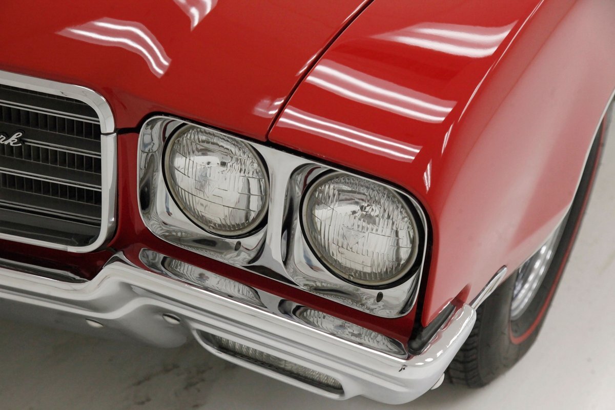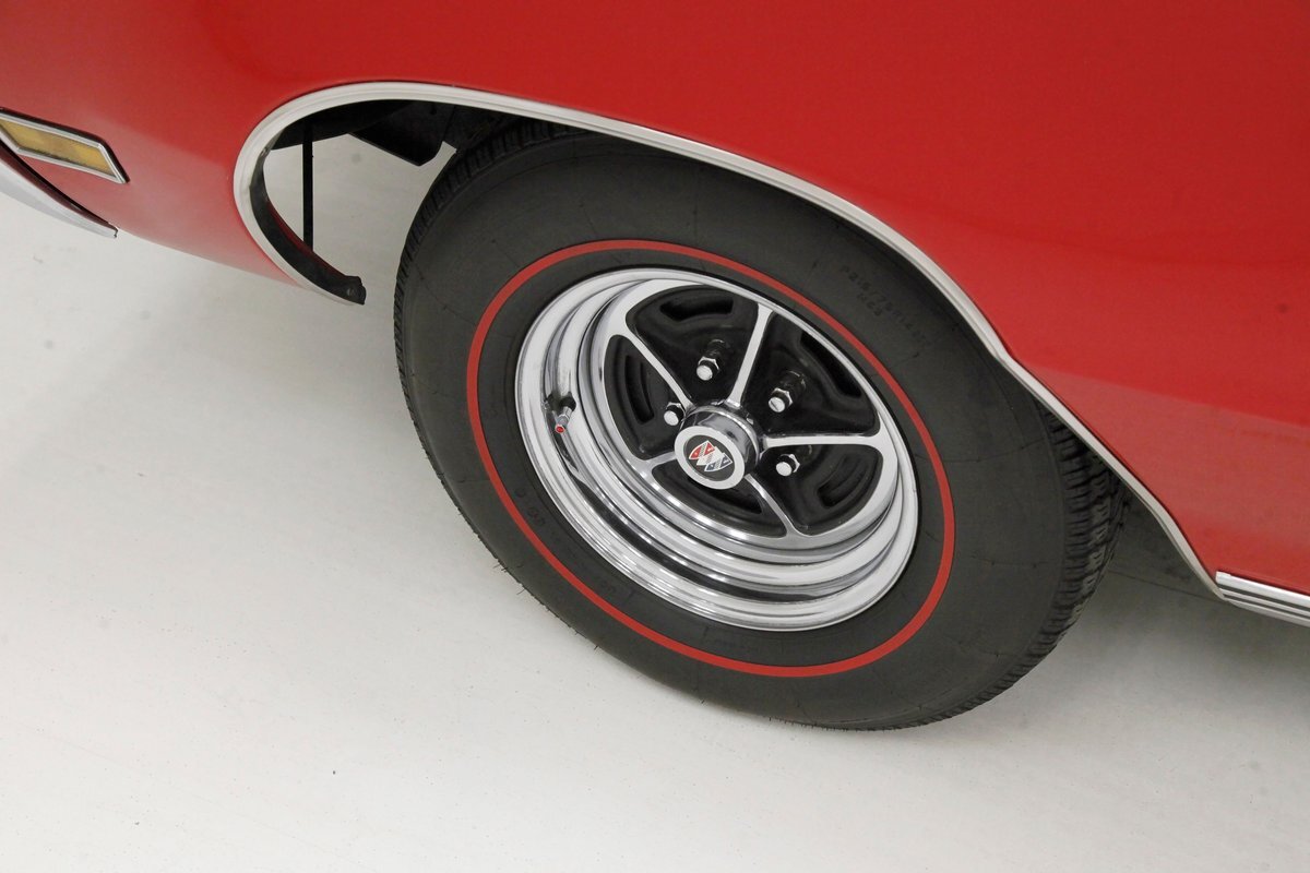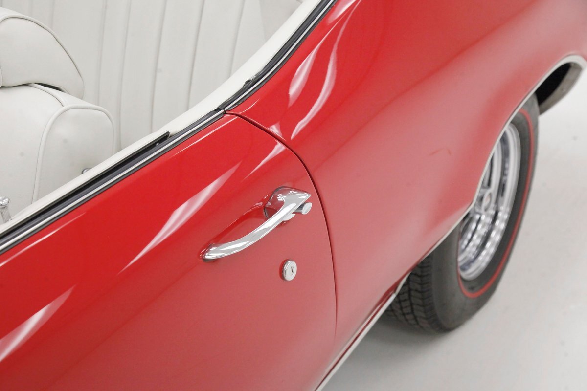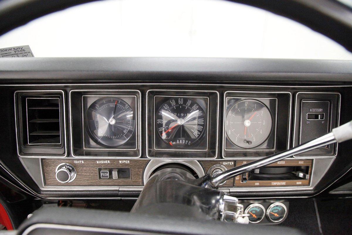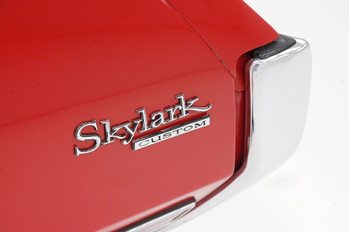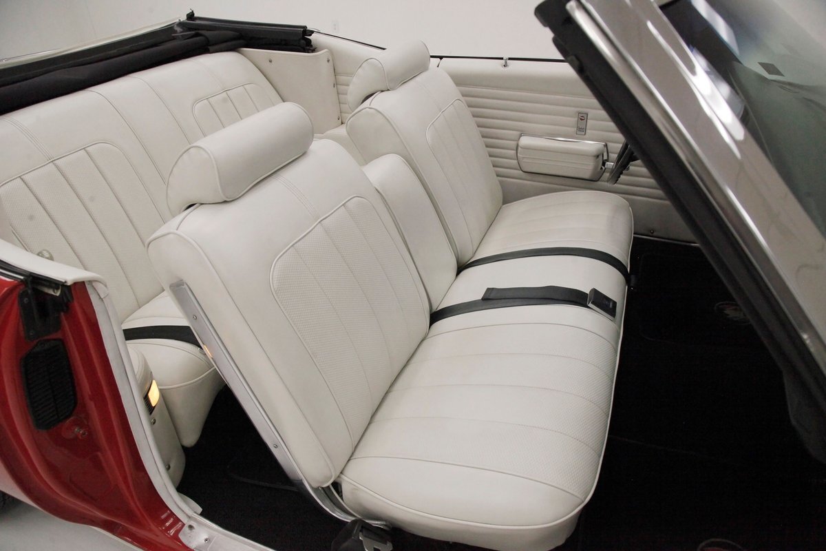 Code 75, Fire Red or otherwise called Cranberry Red, is bathing the straight steel on this coke bottle designed car. The paint shows nicely with a deep reflective finish, no rust and only a few very minor stone chips. Dual headlights and an egg crate grille lead us off and a shiny bumper below has inset turn signal lights. Some thin stainless trimming can be seen edging the wheel wells and a bit wider piece for the rockers. The gaps are good throughout the coke bottle sides and a new convertible top, in contrasting and correct white, is looking in very good condition and sports a glass rear window. It moves up and down smoothly and does so electrically. We note mirror polished stainless trimmings around the glass and passenger compartment to accentuate the quality of the restoration nicely. A sporty design with characteristics of the Chevelle SS, GTO and 442 melded together as styling cues are noted from each in different areas of the car. Within the rear bumper are horizontal tail lights and the bumper wraps around the rear quarters. Nice badging and chrome laden 14-inch Buick rally wheels that are wrapped by thin red stripe 215/75R14 radials round out this stunning presentation.