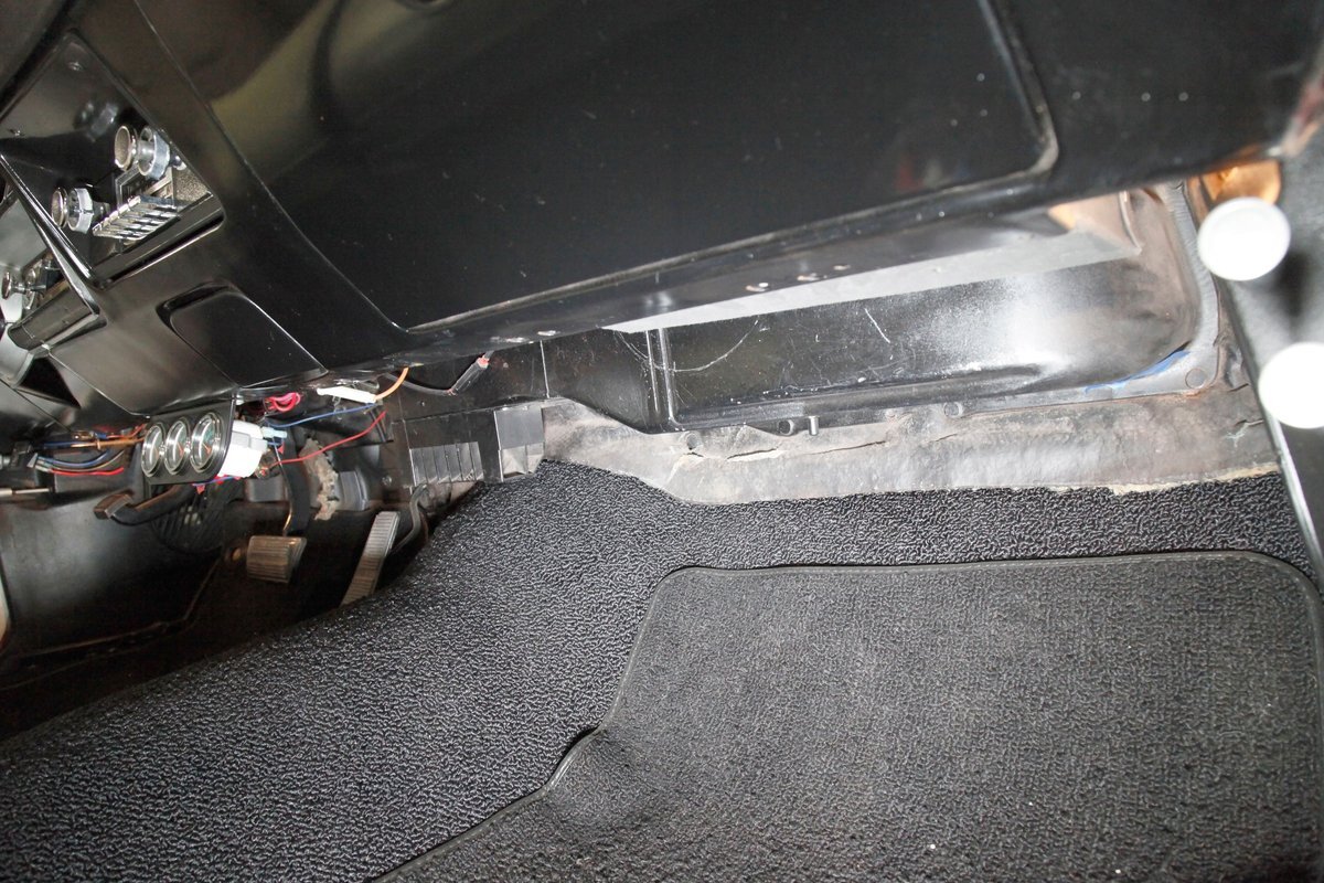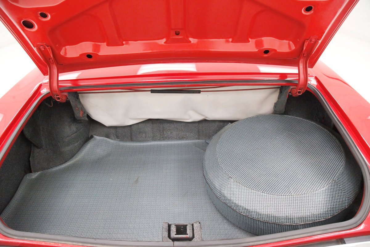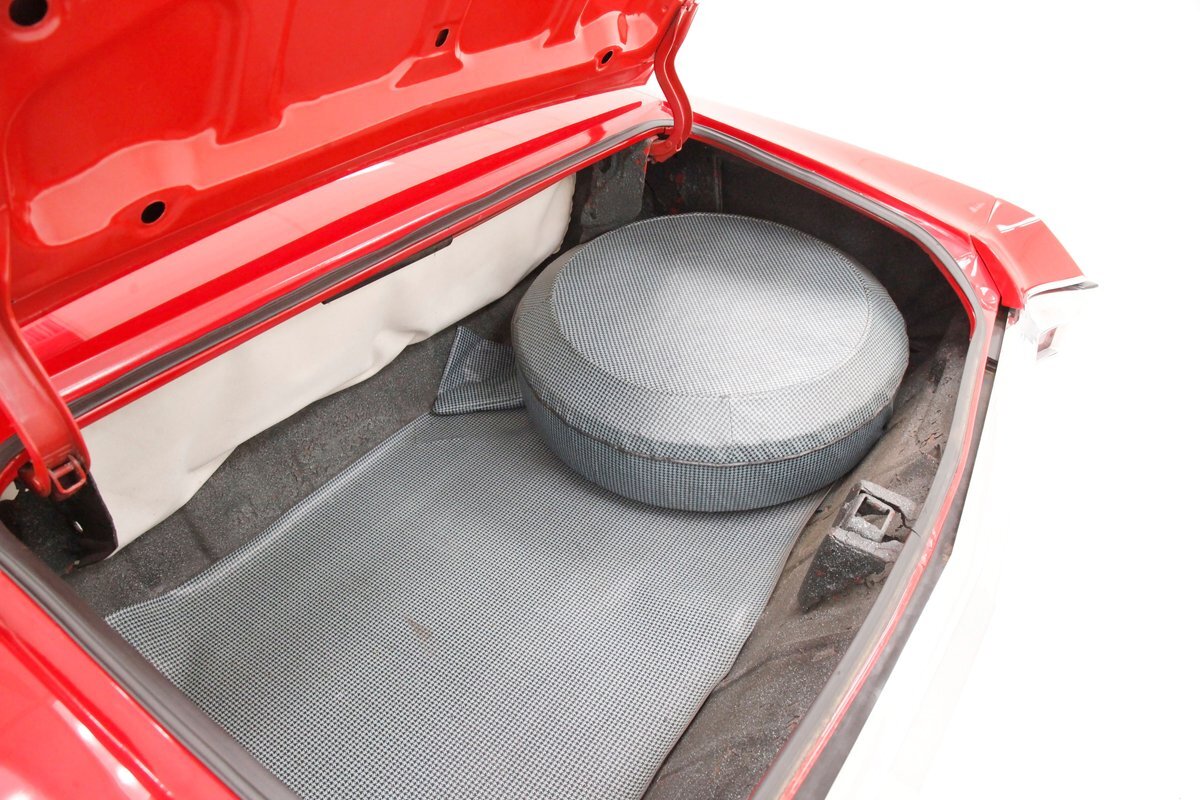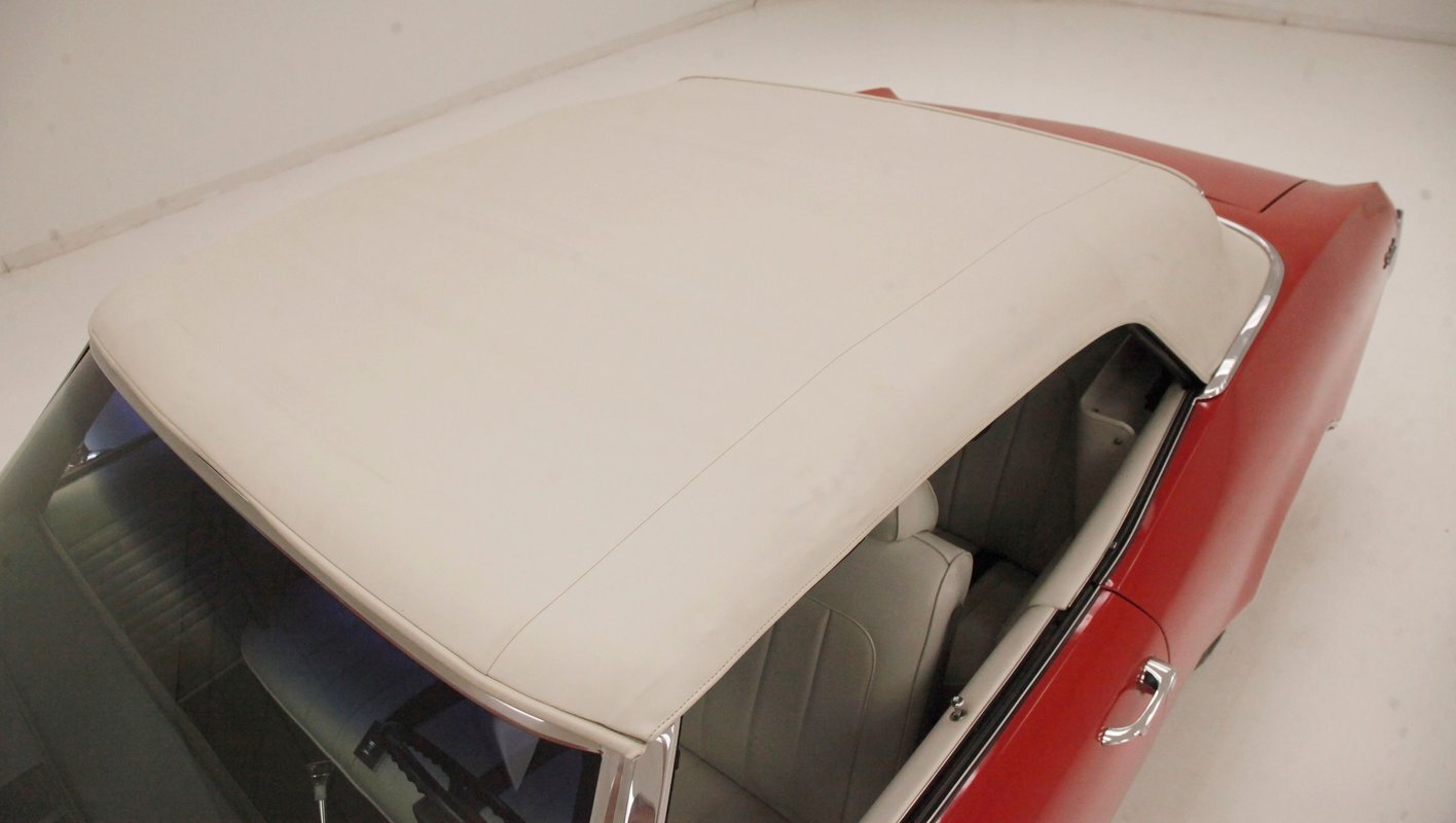 This car started right up and on the test track worked flawlessly. It had nice power from the 2-barrel and good handling. All functions were in working order, and the seats were found to be very comfy. Excellent brakes and the new top are definite upgrade plusses, and on a side note, I did not take the time to perform my piggie wriggling on that lush black carpet.