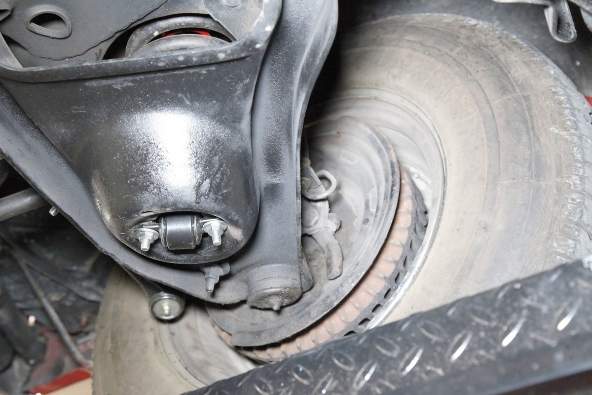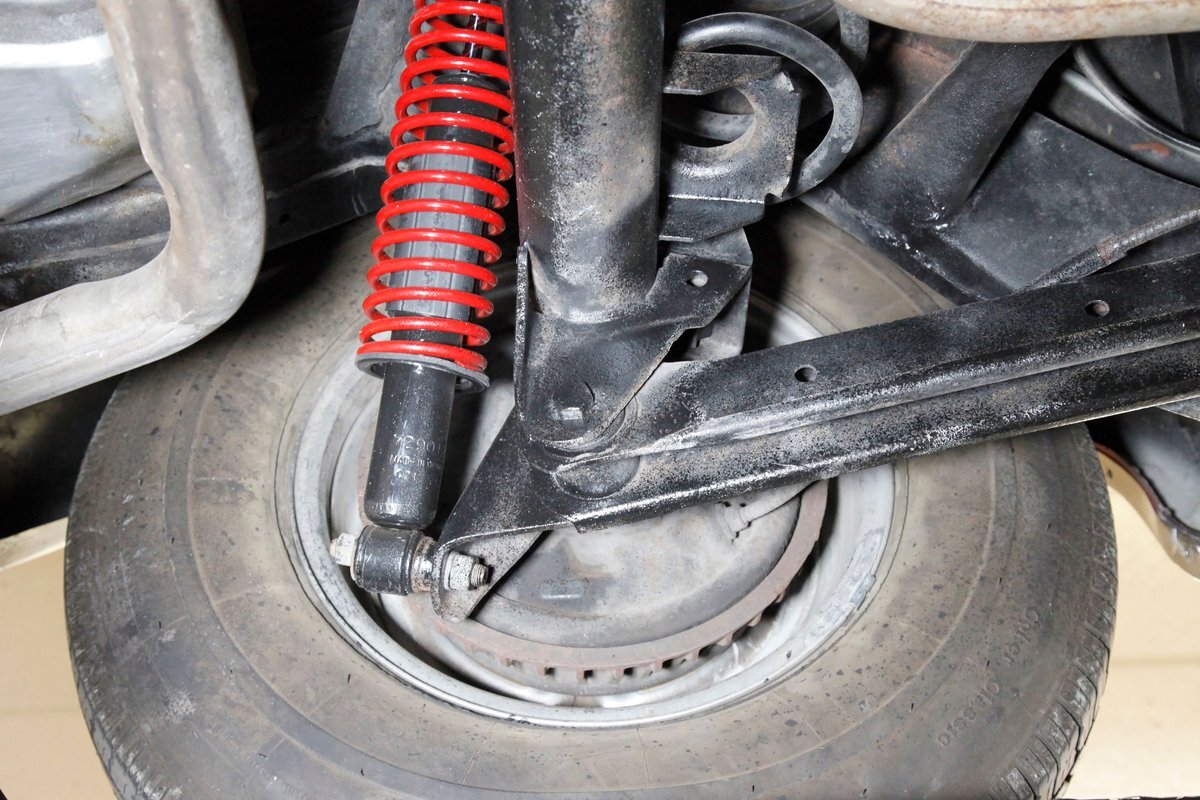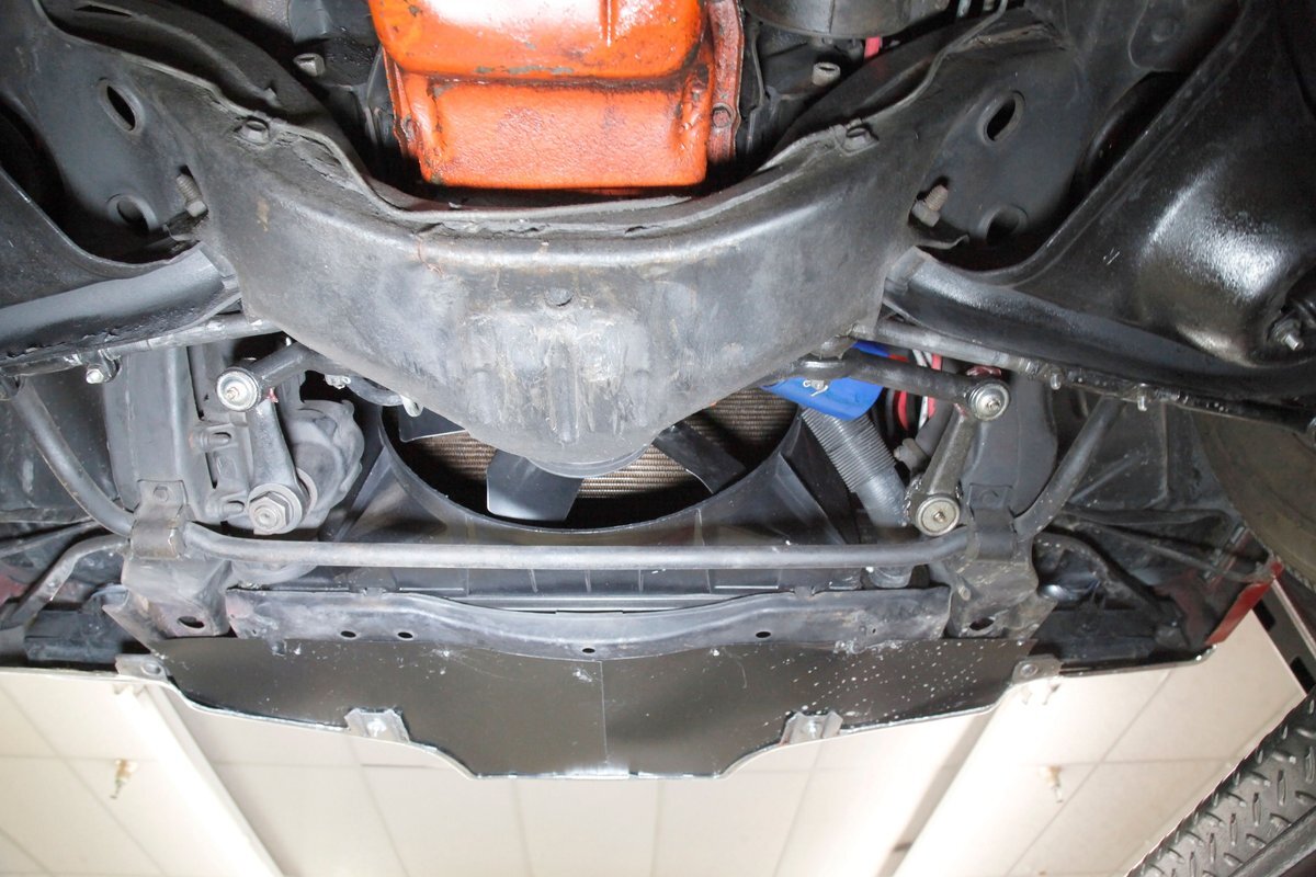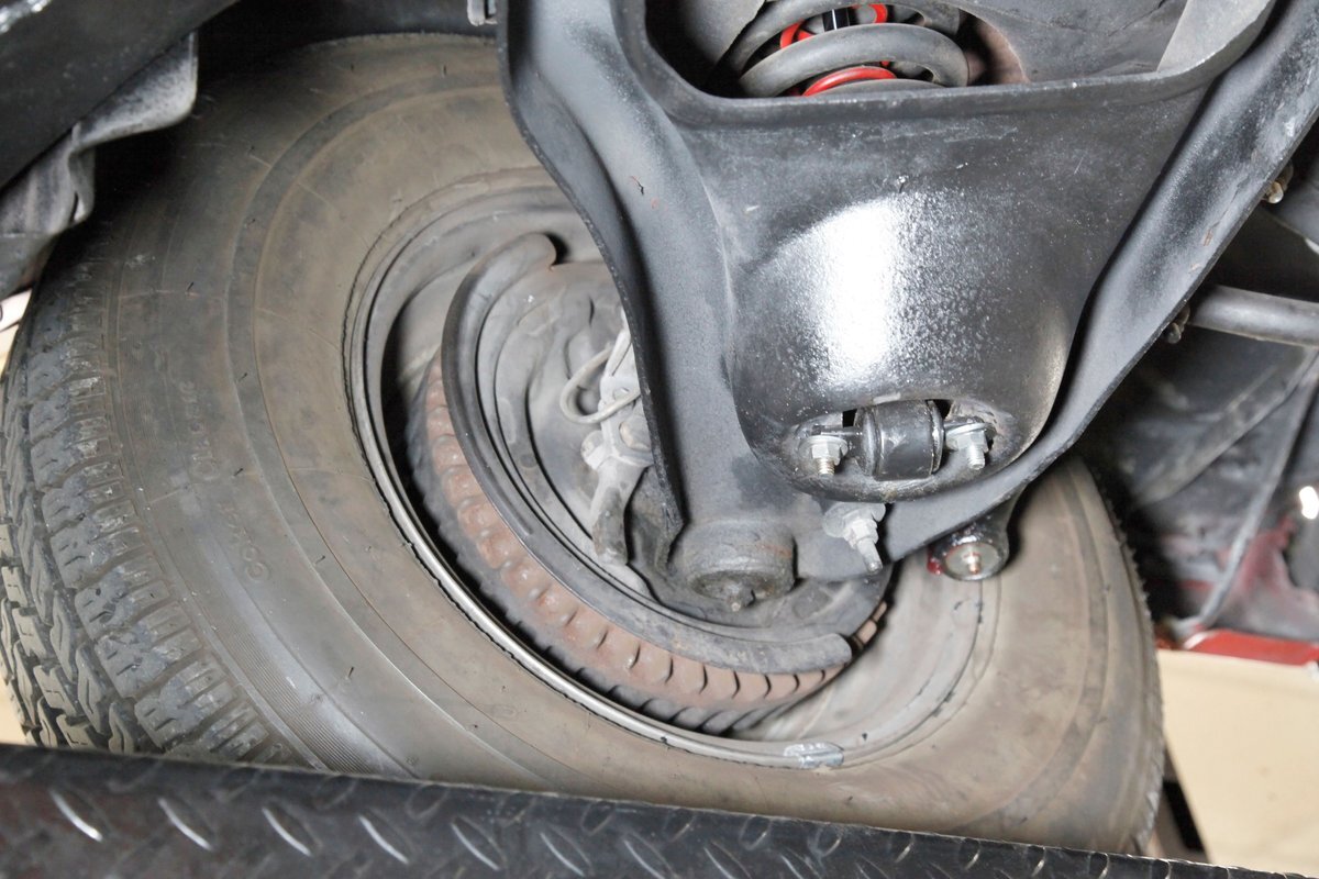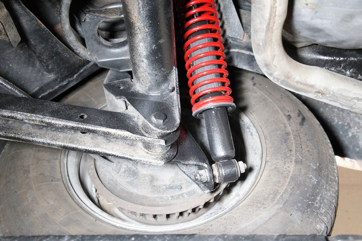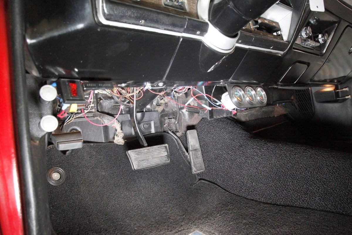 Attention to detail was definitely paid during the redux and it continues on the underside where we are met with miles of black painted steel. The frame, flooring, rockers and body supports are all structurally sound and we note in the areas of paint chip off the factory primer is showing through. Dual exhaust with stock replacement style mufflers are on as are power drum brakes with finned drums all around. Independent coil sprung front suspension and a 4 link with coil springs in back is providing the ride, and speaking of which it's time for us to take this beauty to the test track.