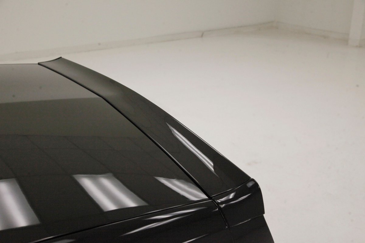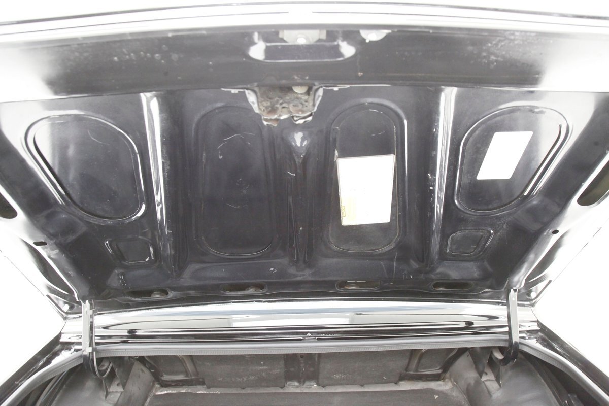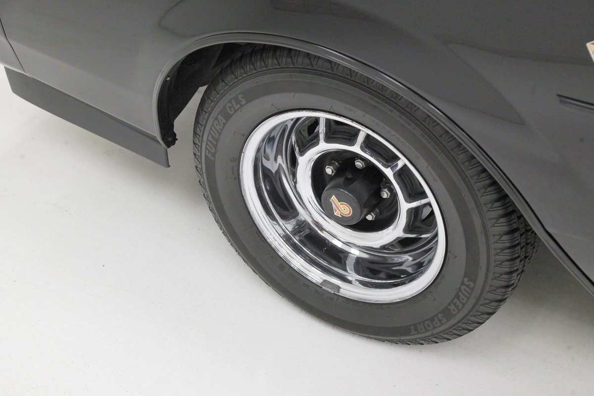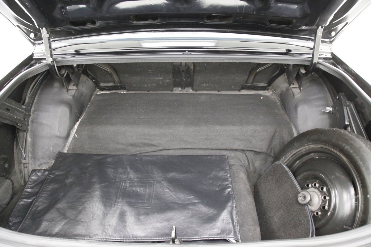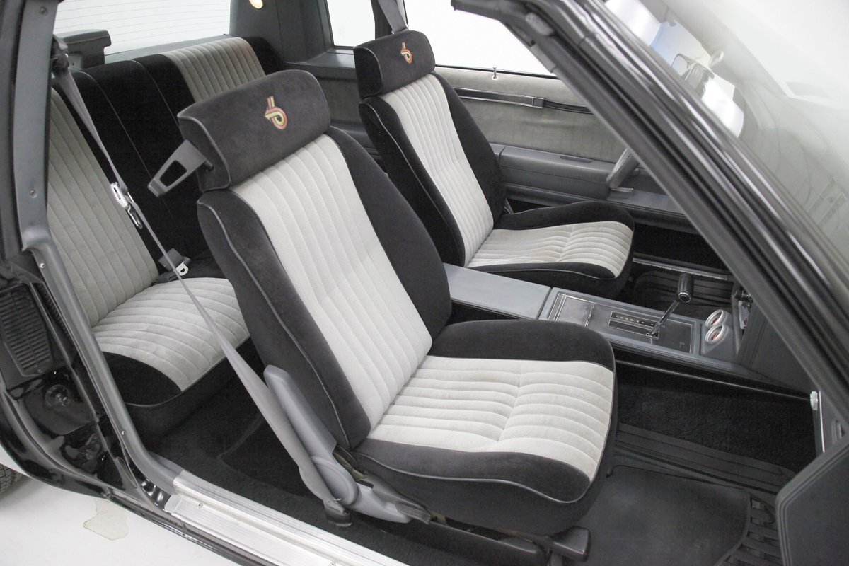 Literally all black for the repaint that drapes this car from stem to stern of the original metal that was performed in 2018. Leading with the slightly raked back front egg crate grille, square headlights, (dual duals), with like new bezels, and a nice body matching front bumper below. A slightly bumped hood, more black window trimmings around original glass, well minded gaps at the doors and steel panels, and a nifty small opera window for the B pillar. Another body matching rear bumper with clean filler panels, and above is a small integrated trunk lid spoiler. Racy but tasty for this sedan that you can take for a night on the town, or run against some competition if you are feeling frisky. 15-inch polished wheels add some bling to the bottom. Front rubber is 235/60R15 and rears are also 235/60R15's from the 5th week of 2008. Also noted is the "T" topped roof with removable smoked glass panels sitting within like supple rubber surrounds, no leaks here.