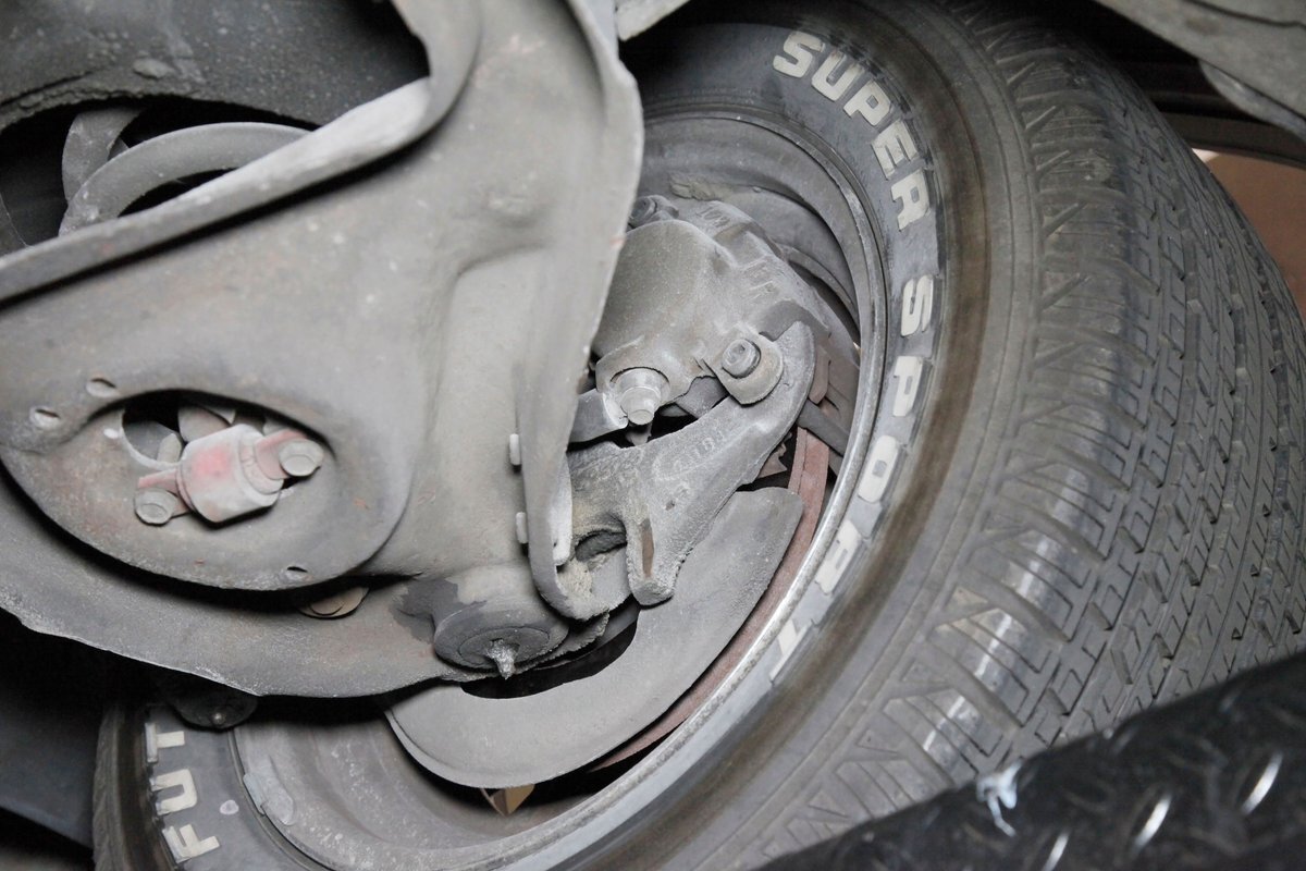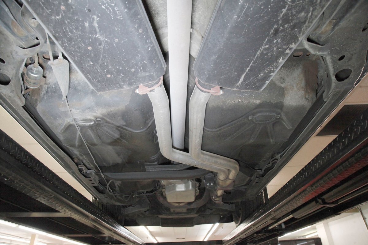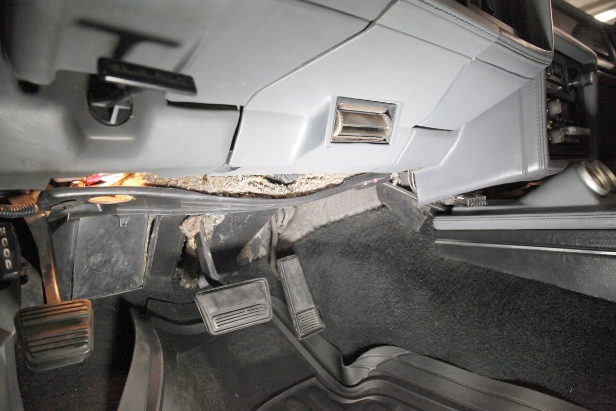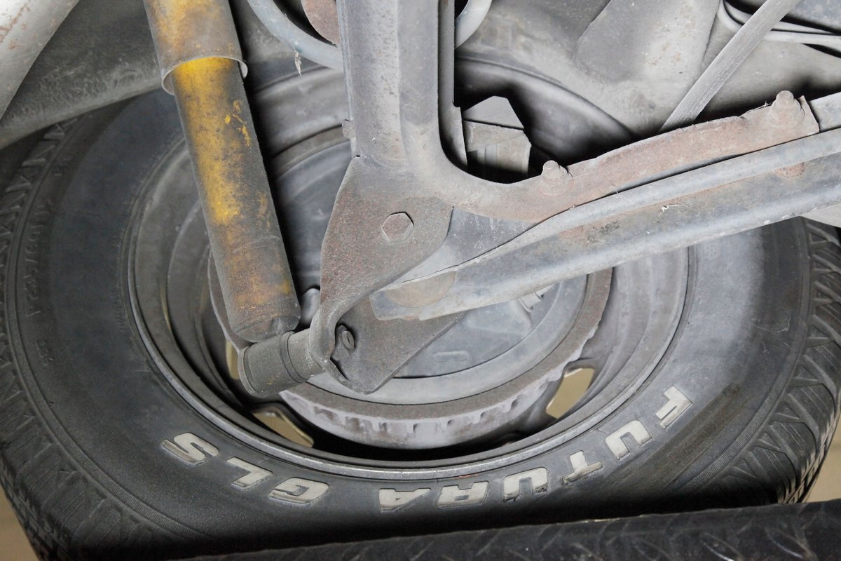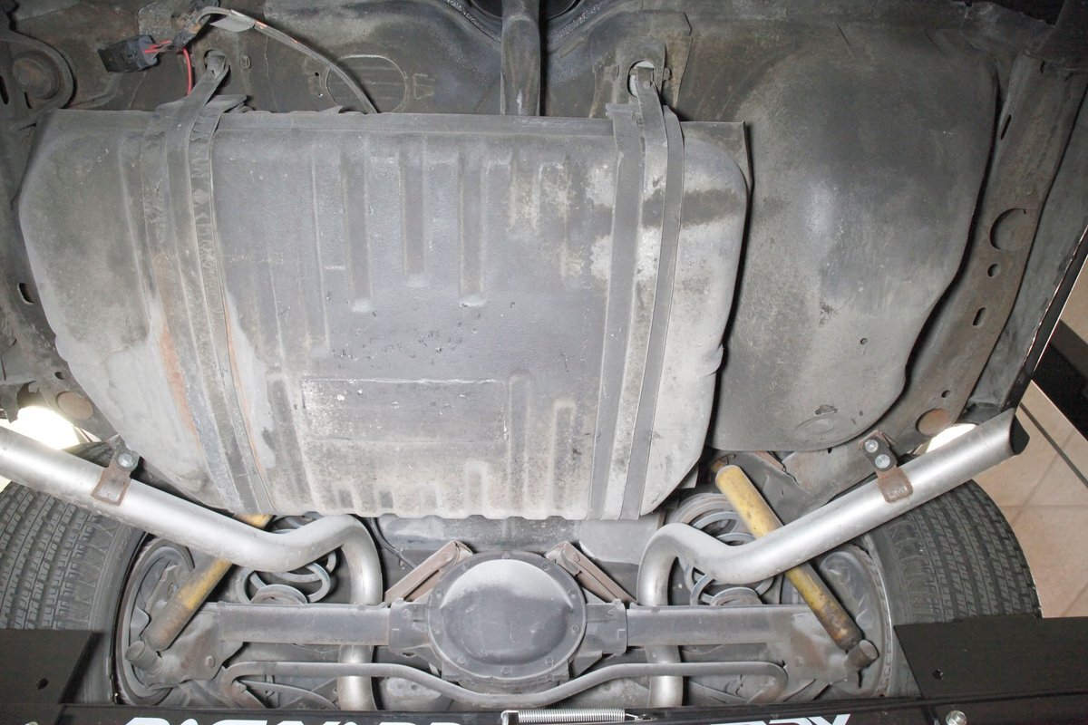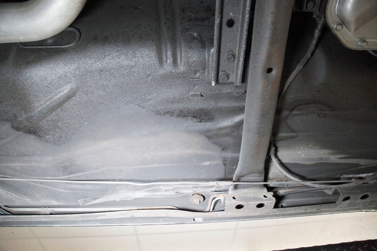 Underneath we see all being invasive rust free and well preserved with solid floor pans and toe kicks, frame, and drip free bottom end of the engine and transmission. Independent suspension with coil springs is upfront and along for the ride are power disc brakes. On the back this suspension is a 4 link with coil springs, and power drums are along for this ride. The single exhaust feeds down to a dual Hooker Aerochamber muffler equipped exhaust that exits under the rear bumper.