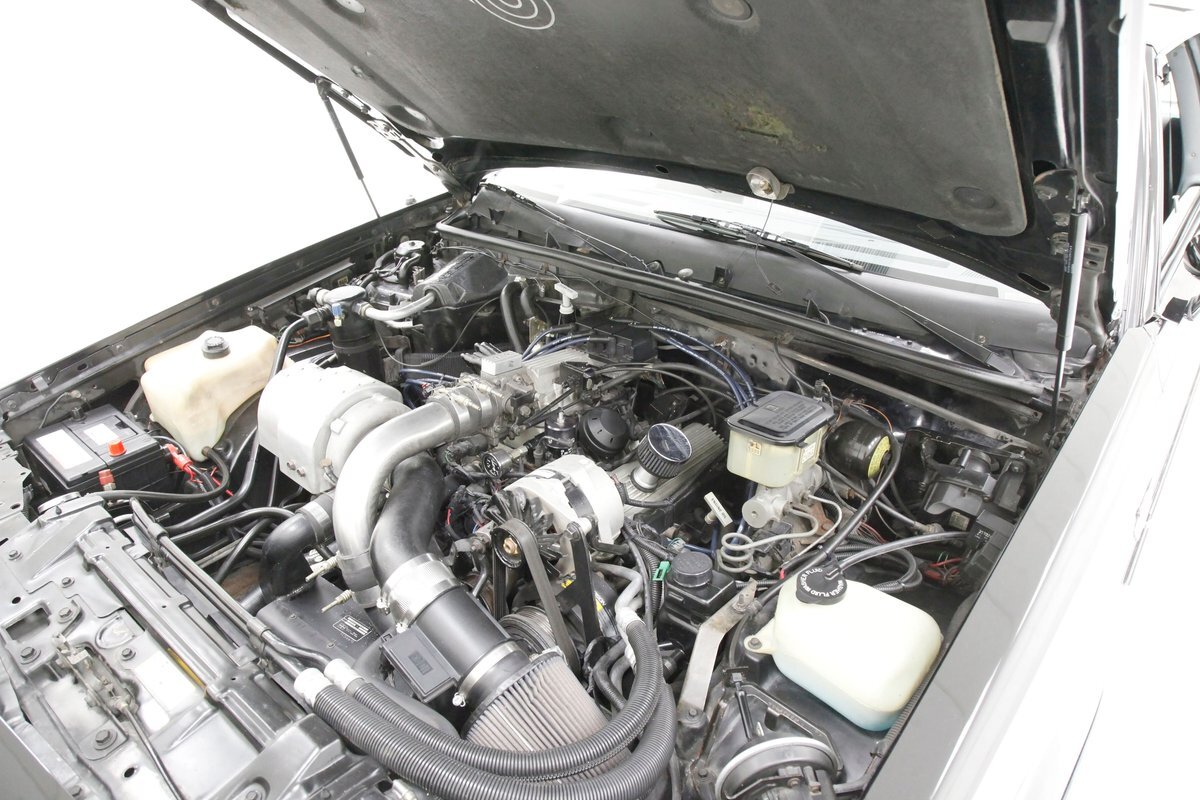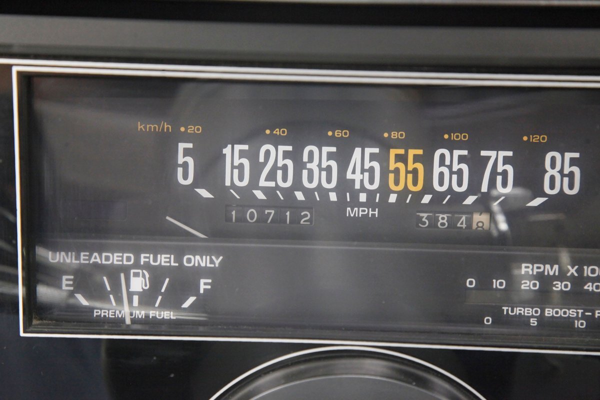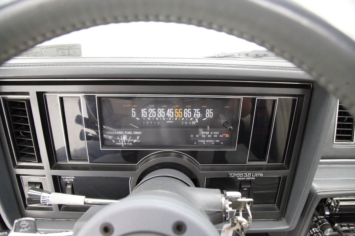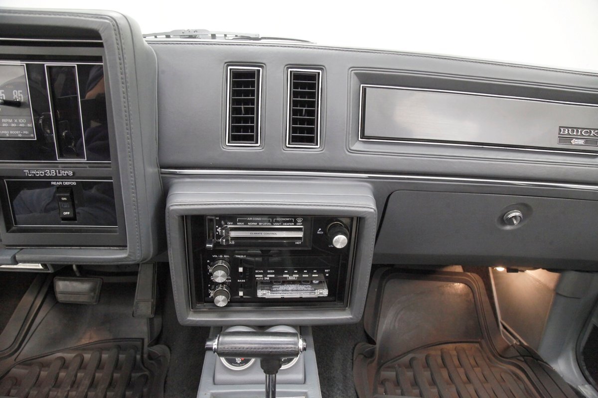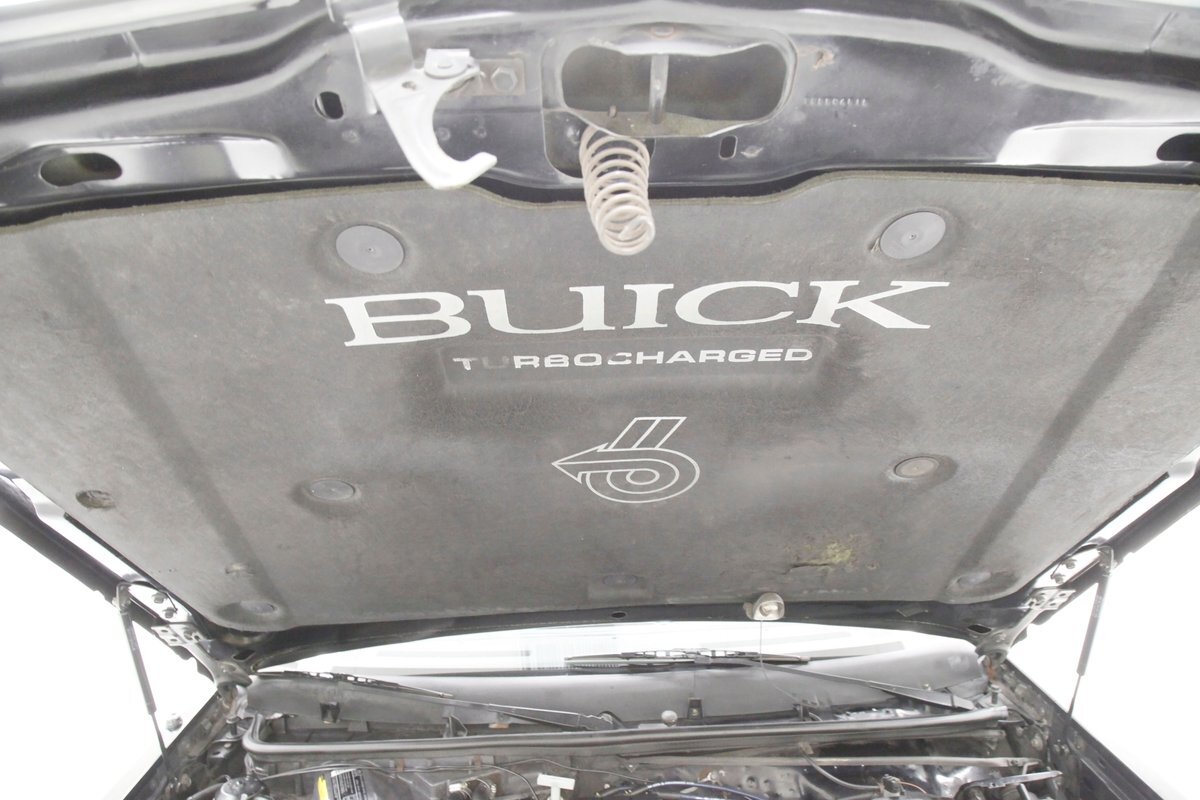 A flip of the hood, and a nifty BUICK logo with Turbocharged monicker silk screened into the hood liner hovers above the beautifully preserved engine. It is a correct 3.8 liter V6 turbo that pumps out 245 horses. It has an intercooler for the turbo, and is fed by EFI. A numbers matching 200R4 4-speed automatic is behind this turbo mill, and in back, a 10 bolt 8.5 inch posi rear axle with 3.42 gears is on. The only change from original is the addition of a cold air under hood intake and a Turbo Tweak performance chip.