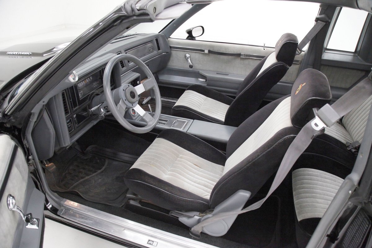 1986 was the "it" year for the Buick Grand National as this lineup floored the automotive press and general public with its ability to reach sixty miles per hour in under five seconds, as well as a speed performance that made the highest speed machines at that time seem archaic. This is credited to the turbo gaining an intercooler that was originally recorded to output 235 horsepower, but when it was tested the result was rumored to be well over 300 horsepower. This not only served as big news for the market, but a hot-seller as the Buick Grand National sold approximately 5,000 units that year. The 1986 Buick Grand National series is not just a car, it's a legacy. For consignment, a recently serviced 1986 Buick Grand National, named for the NASCAR series prior to it becoming the Winston Cup. A square and rectangle iconic design all dressed up in menacing black. A repaint in 2018 on the exterior is in nice condition, the interior is good, and the engine is strong. It's all looking good for this 1986 T-top example, a true classic in the NASCAR sense.