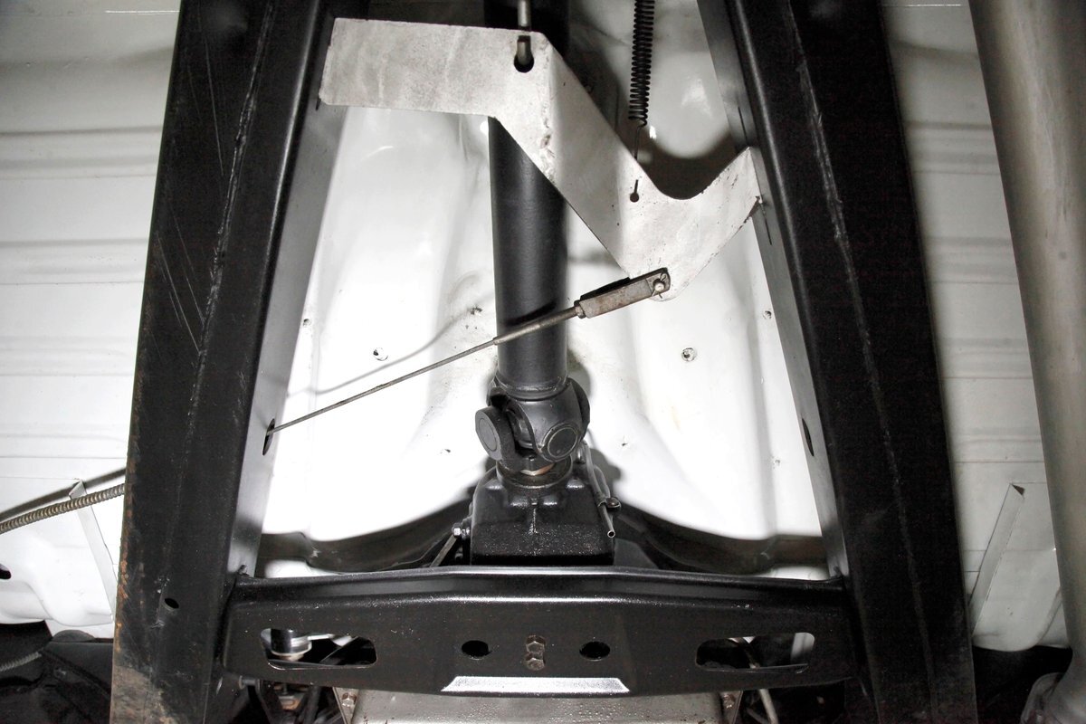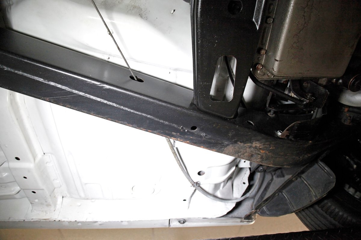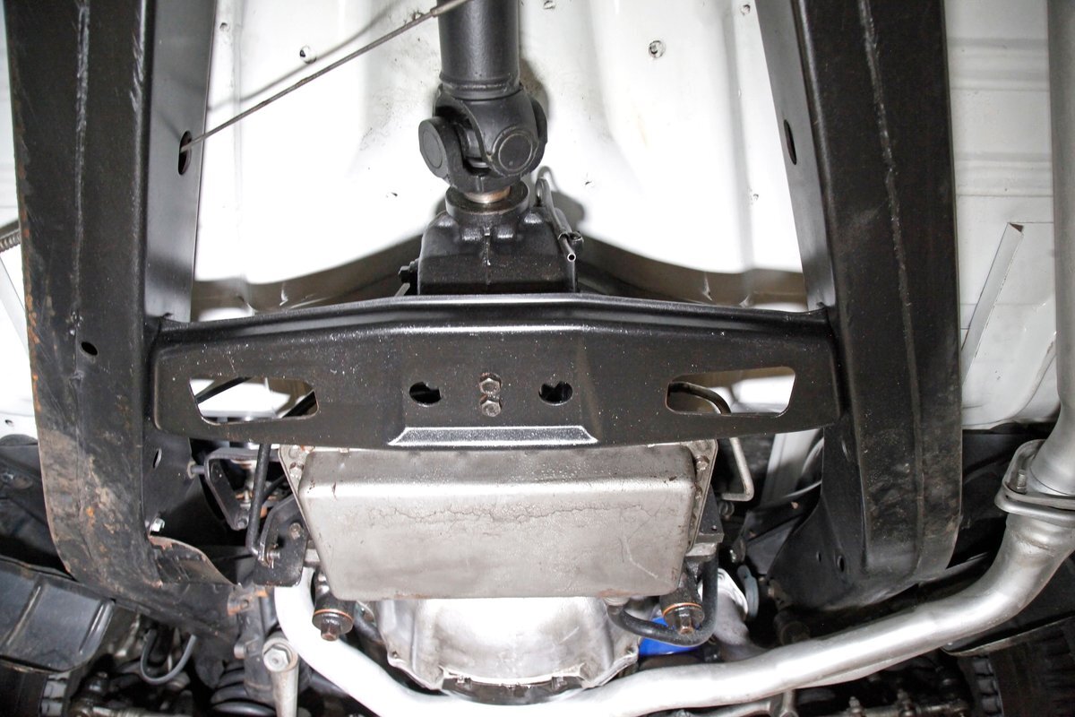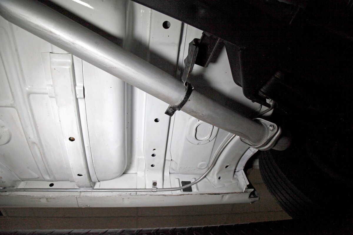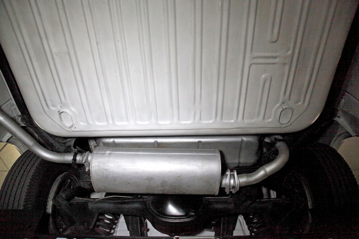 Thanks to a top notch frame off restoration there is very little to no surface rust underneath, just miles of white flooring, black suspension and black framing. An X frame holds it all together, and for the suspension I see front independent coil springs and on the back a 4 link with coil springs. Power drum braking is on all 4 corners, and a like new single piped stock exhaust is on the car. Break out the mirrors...it's showtime!