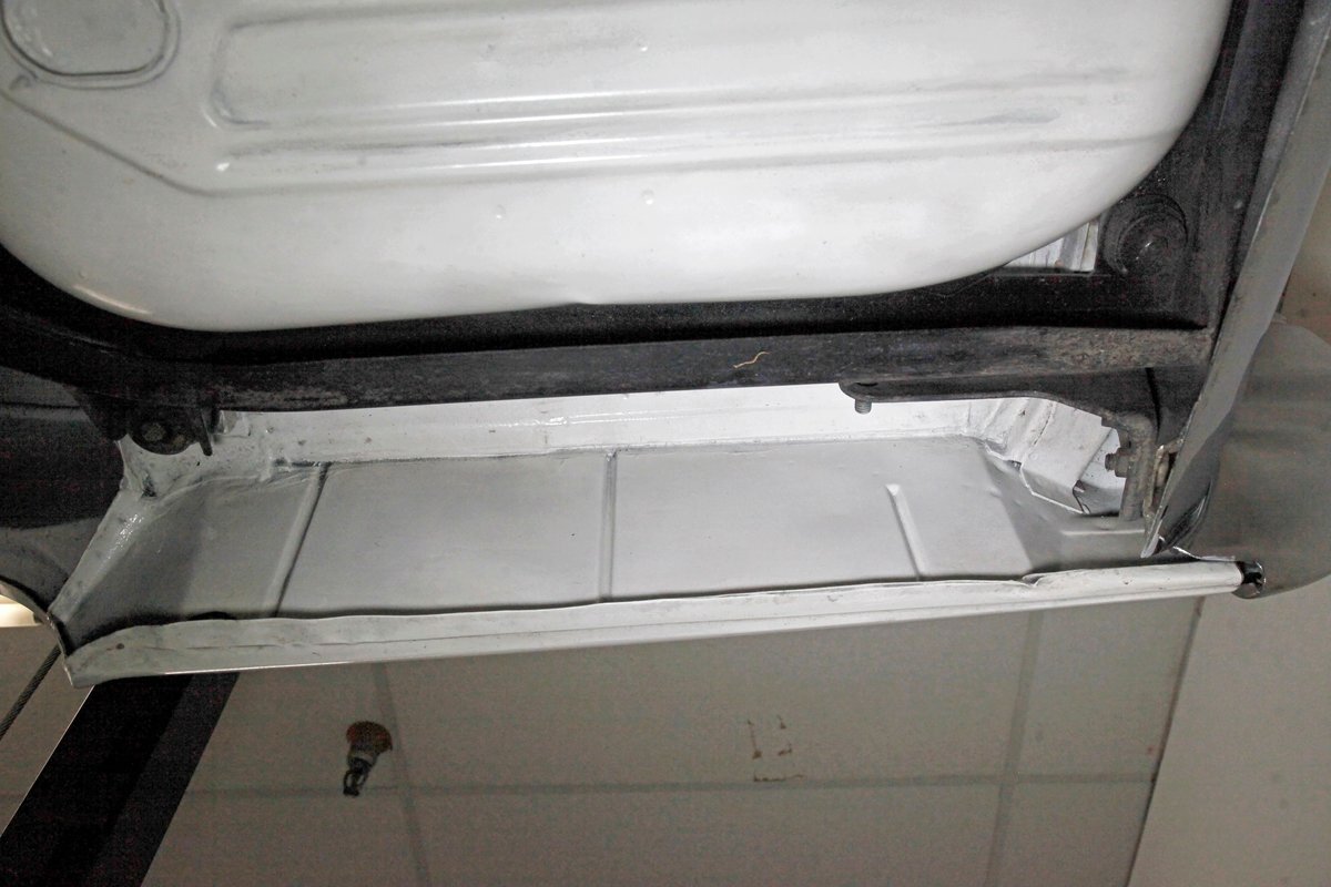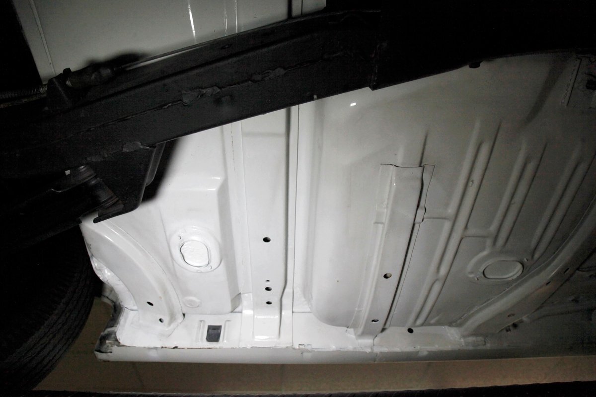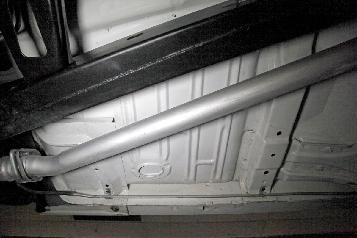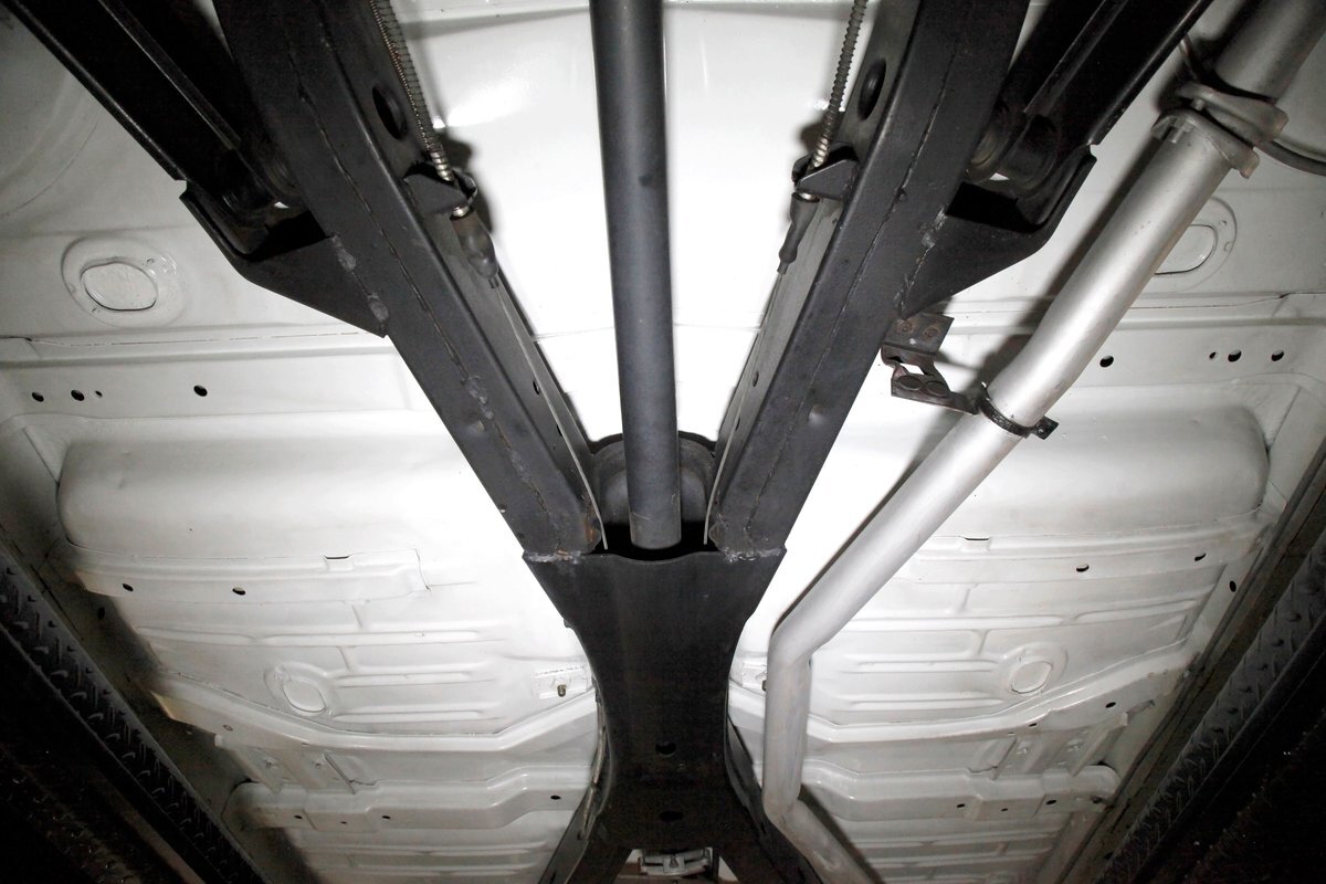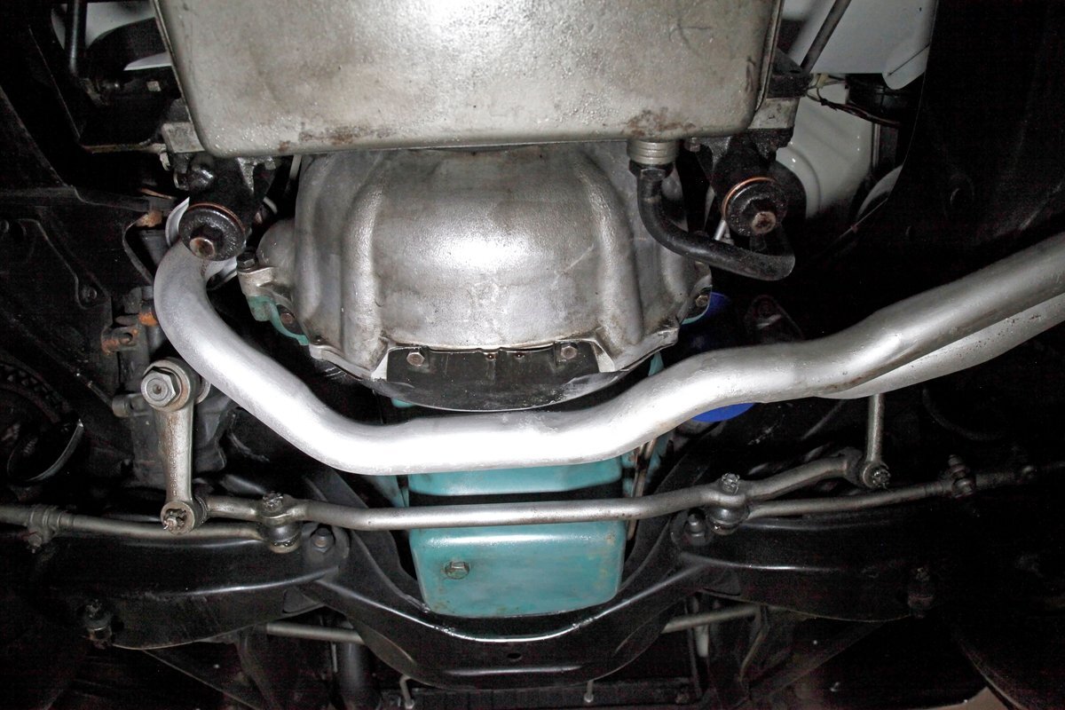 Thanks to a top notch frame off restoration there is very little to no surface rust underneath, just miles of white flooring, black suspension and black framing. An X frame holds it all together, and for the suspension I see front independent coil springs and on the back a 4 link with coil springs. Power drum braking is on all 4 corners, and a like new single piped stock exhaust is on the car. Break out the mirrors...it's showtime!