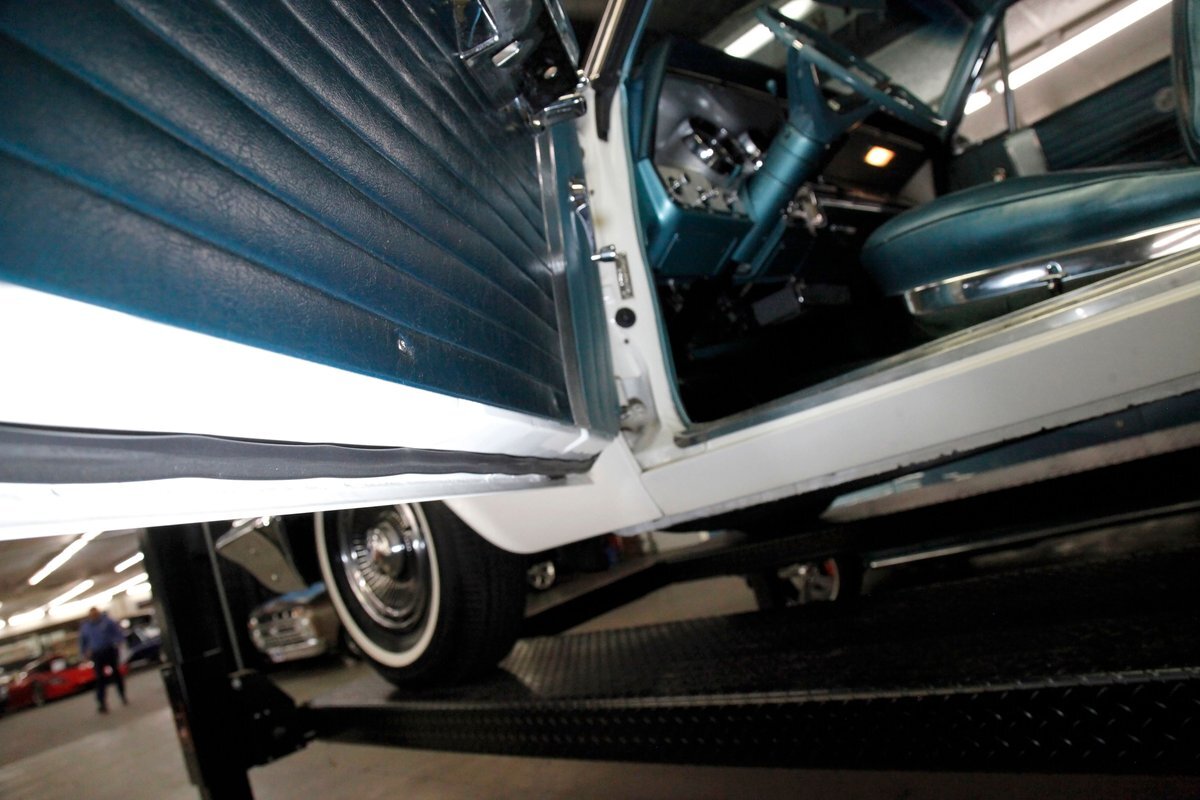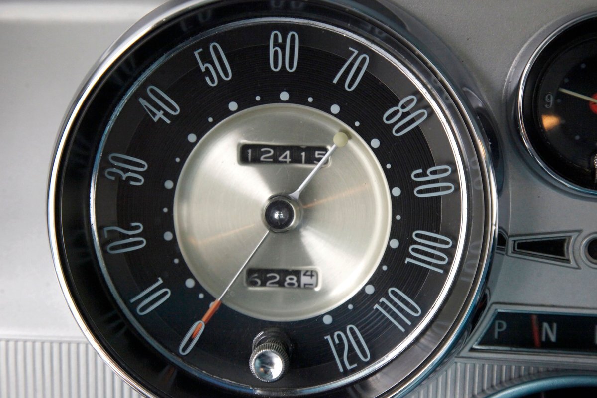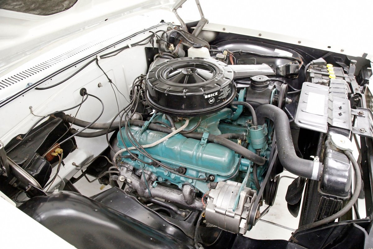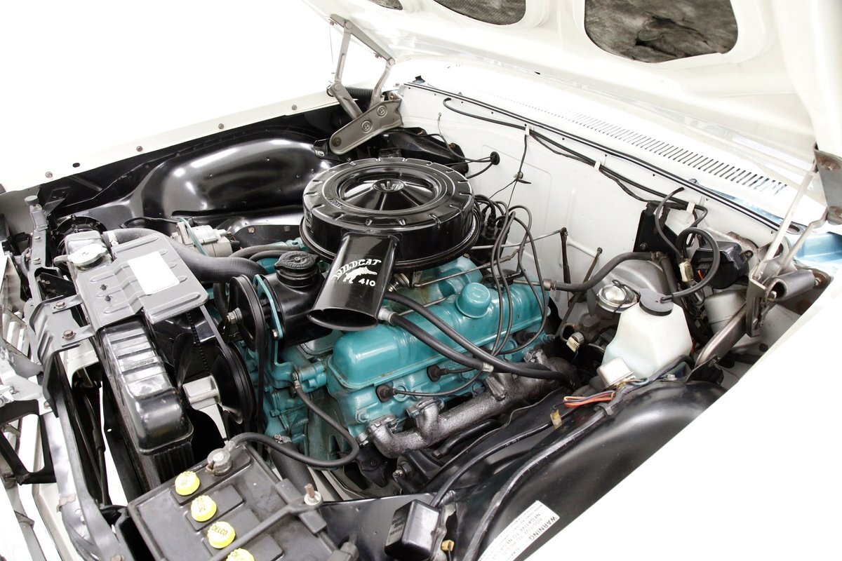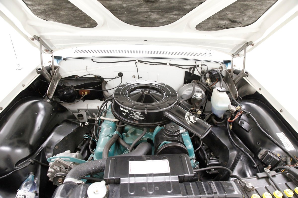 Under the hood, in a well restored and nicely preserved engine bay with very little dust and dirt, houses the factory numbers matching 401ci Nailhead V8 with a single 2 barrel carburetor on top. On the back is a Dynaflow ST300 2-speed automatic transmission and a 2.87 rear axle designation. An overall A+ presentation in the engine bay with the black inner fenders, Arctic White firewall, aqua block and shiny black bolts ons.