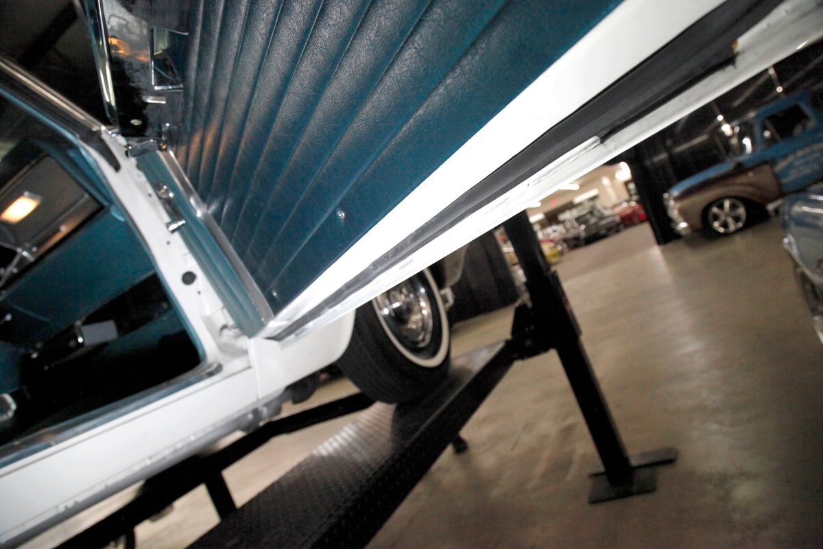 For consignment, this beautiful Arctic White and Teal Mist colored fine automobile has been in hands of our loving consignor, the second owner since he purchased it in 1993 at an estate sale. In 1995 a frame off nut and bolt restoration was performed with 90% of that work being done by our consignor. It's been garage kept since the restoration, presents in very nice condition and is the winner of not only an AACA National Senior 1st award in 2003 but also an AACA Grand National Senior 1st win in 2006. This 2 door hardtop is a get in and turn key car that you and your friends can pile into and cruise over to your hipster friends house and have a fondue or continue on the show circuit capturing new awards...Groovy