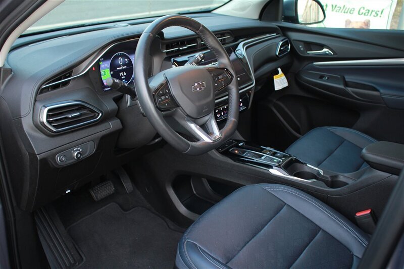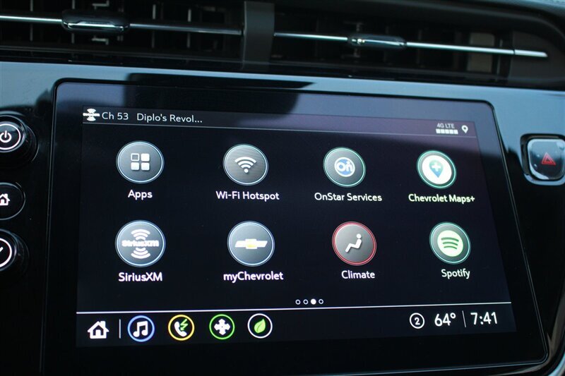 INSTALLED FEATURES: Air filtration, Front air conditioning: automatic climate control, Front air conditioning zones: single, Humidity/dewpoint sensors, Rear vents: second row, Airbag deactivation: occupant sensing passenger, Front airbags: dual, Knee airbags: dual front, Side airbags: front / rear, Side curtain airbags: front / rear, Antenna type: diversity / mast, Auxiliary audio input: Bluetooth / USB / iPod/iPhone / jack / memory card slot, Radio: AM/FM / touch screen display / voice operated, Radio data system, Satellite radio: SiriusXM, Speed sensitive volume control, Total speakers: 6, ABS: 4-wheel, Braking assist, Electronic brakeforce distribution, Electronic parking brake: auto off, Front brake diameter: 10.9, Front brake type: ventilated disc, Power brakes, Rear brake diameter: 10.4, Rear brake type: disc, Regenerative braking system, Cargo area floor mat: rubber/vinyl, Center console trim: metallic, Floor mat material: carpet, Floor material: carpet, Floor mats: front / rear, Interior accents: chrome, Shift knob trim: alloy / leather, Steering wheel trim: urethane, Ambient lighting, Assist handle: rear, Cargo area light, Cargo cover, Center console: front console with armrest and storage, Cruise control, Cupholders: front / rear, Multi-function remote: panic alarm / proximity entry system / trunk release, One-touch windows: 4, Overhead console: front, Power outlet(s): 12V front / USB front / USB-C front, Power steering, Power windows: lockout button, Push-button start, Reading lights: front, Rearview mirror: manual day/night, Remote engine start, Steering wheel: tilt and telescopic, Steering wheel mounted controls: audio / cruise control / multi-function / phone / voice control, Storage: accessory hook / bin / door pockets, Vanity mirrors: dual illuminating, Wireless charging station: front, Axle ratio: 7.05, Drive mode selector, Battery saver, Electric charge cord: 120 volt / 240 volt, Electric motor battery type: lithium ion, Electric motor charger: DC fast charging, Electric motor charger connector: SAE Combo CCS / SAE J1772, Electric motor charging time (240V): 7 hours, Electric Motor HP: 200, Electric motor miles per charge: 247, Electric Motor Power Output (Kilowatts): 150, Electric Motor Torque: 266, EV battery capacity: 66 kWh, EV on-board charger rating: 11.5 kW, Door handle color: body-color, Fender lip moldings: black, Front bumper color: body-color, Grille color: black, Mirror color: black, Rear bumper color: body-color, Rear spoiler: roofline, Rear spoiler color: body-color, Rear trunk/liftgate: liftgate, Rocker panel color: chrome accents, Window trim: chrome, Connected in-car apps: Google POIs / Google search, Infotainment: Chevrolet Infotainment System, Infotainment screen size: 10.2 in., Smartphone integration: wireless Android Auto / wireless Apple CarPlay, Clock, Compass, Customizable instrument cluster, Digital odometer, External temperature display, Fuel economy display: range, Instrument cluster screen size: 8 in., Multi-function display, Trip odometer, Warnings and reminders: low battery / maintenance due, Daytime running lights: LED, Headlights: LED / auto delay off / auto on/off, Taillights: LED, Side mirror adjustments: manual folding / power, Side mirrors: heated / integrated turn signals, Roof rails: silver, Camera system: rearview, Check rear seat reminder, Child safety door locks, Child seat anchors: LATCH system, Pedestrian safety sound generation, Programmable safety key, Rearview monitor: in dash, Emergency locking retractors: front / rear, Front seatbelts: 3-point, Rear seatbelts: 3-point, Seatbelt force limiters: front, Seatbelt pretensioners: front, Seatbelt warning sensor: front, Driver seat manual adjustments: height / reclining / 6, Front headrests: adjustable / 2, Front seat type: bucket, Passenger seat manual adjustments: height / reclining / 6, Rear headrests: foldable / 2, Rear seat folding: split, Rear seat type: 60-40 split bench, Upholstery: premium cloth, Anti-theft system: alarm / vehicle immobilizer, Power door locks: anti-lockout / auto-locking, Hill holder control, Stability control, Traction control, Front shock type: gas, Front spring type: coil, Front stabilizer bar, Front struts: MacPherson, Front suspension classification: independent, Front suspension type: lower control arms, Rear shock type: gas, Rear spring type: coil, Rear suspension classification: semi-independent, Rear suspension type: torsion beam, Driver assistance app: roadside assistance, Electronic messaging assistance: voice operated / with read function, Hands-free phone call integration: voice operated, Satellite communications: OnStar / voice guided directions, Smart device app compatibility: myChevrolet with Connected Access, Smart device app function: lock operation / maintenance status / vehicle location, Wi-Fi: hotspot, Wireless data link: Bluetooth, Run flat tires, Tire Pressure Monitoring System, Tire type: all season, Wheels: painted aluminum alloy, Front wipers: variable intermittent, Liftgate window: fixed, Power windows: safety reverse, Rear wiper: intermittent / with washer, Solar-tinted glass: front / rear, Window defogger: rear
