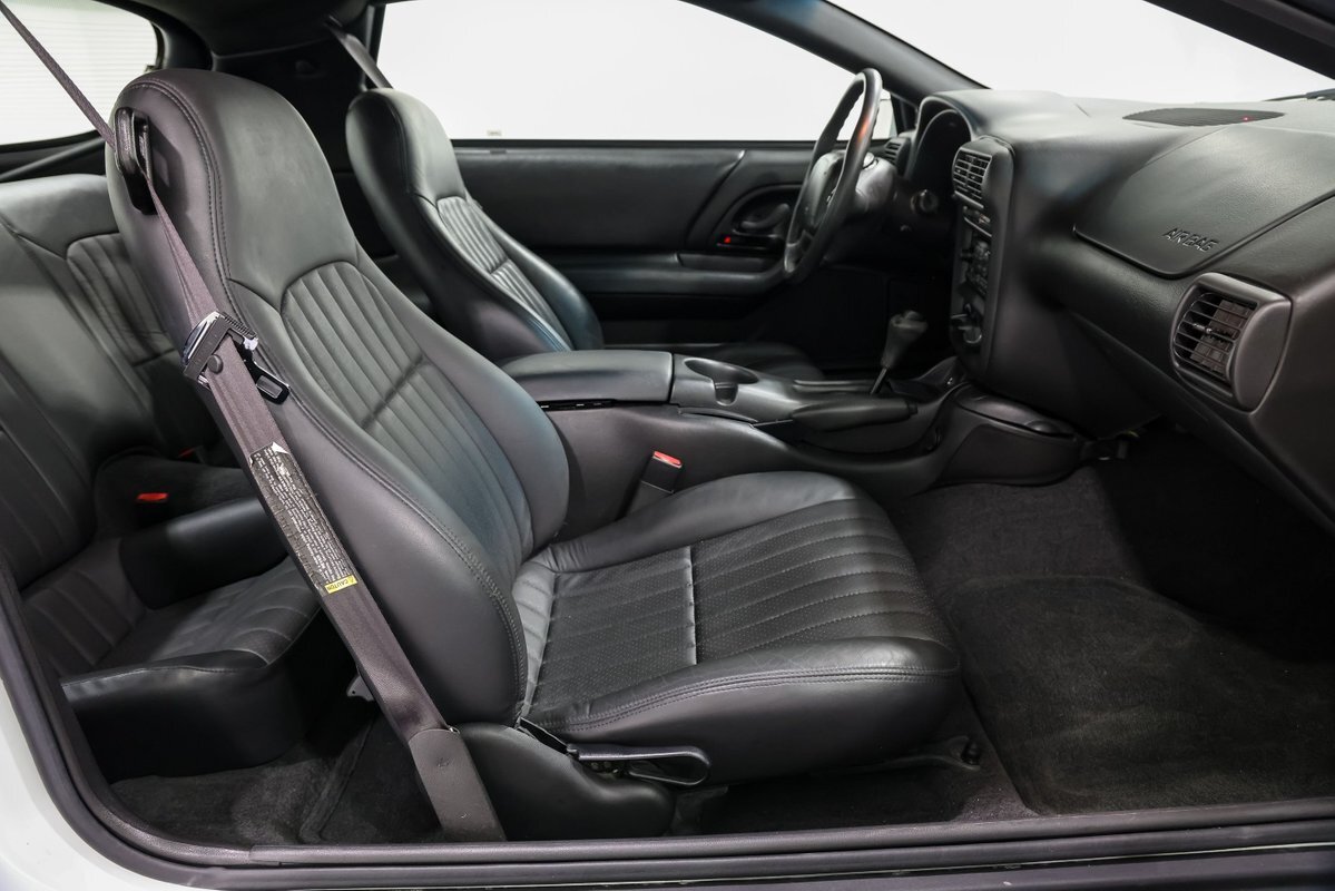 Decked out in a crisp white paint job, this Camaro isn't just about power-it's about presence. It's a striking contrast to the jet-black interior, a nod to classic muscle aesthetics. Slide into those vinyl bucket seats, and you're immediately transported to a cockpit designed for the purist-a place where performance meets comfort.