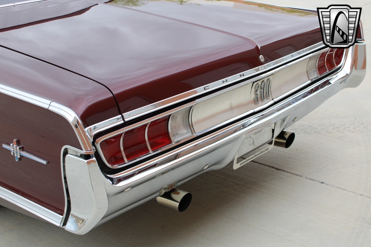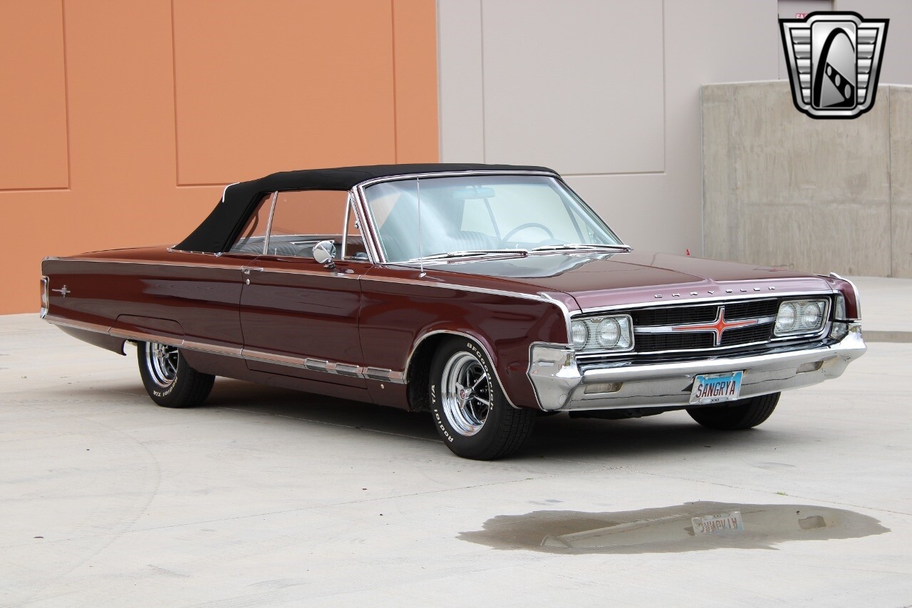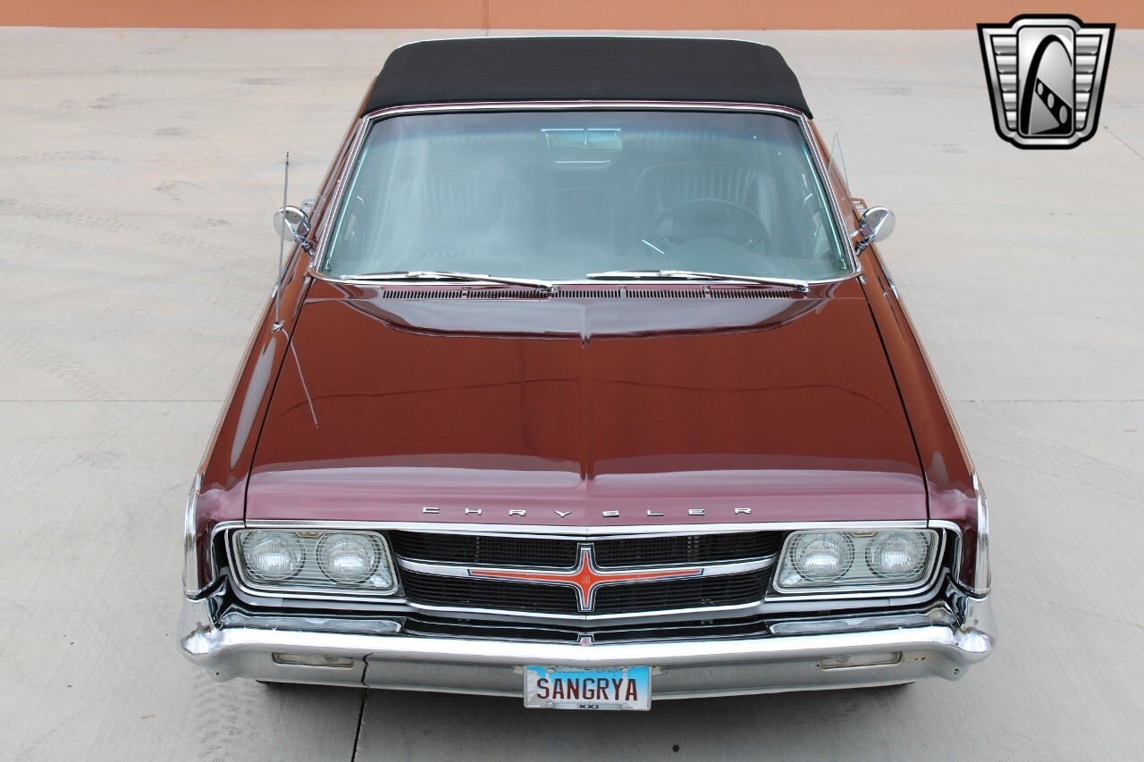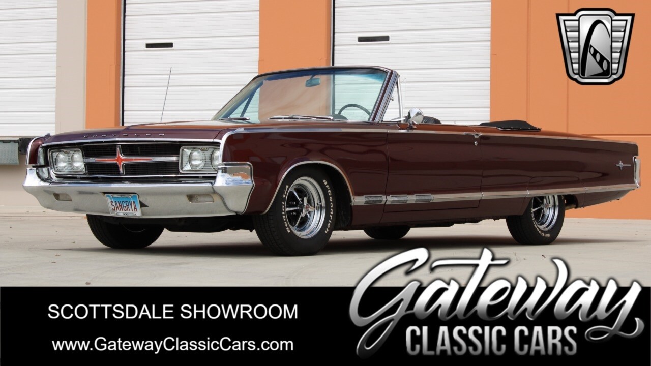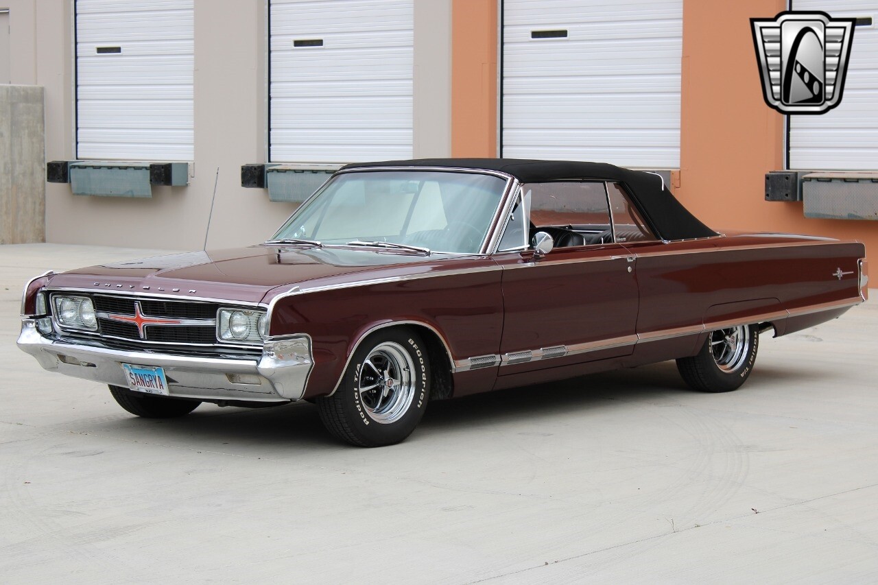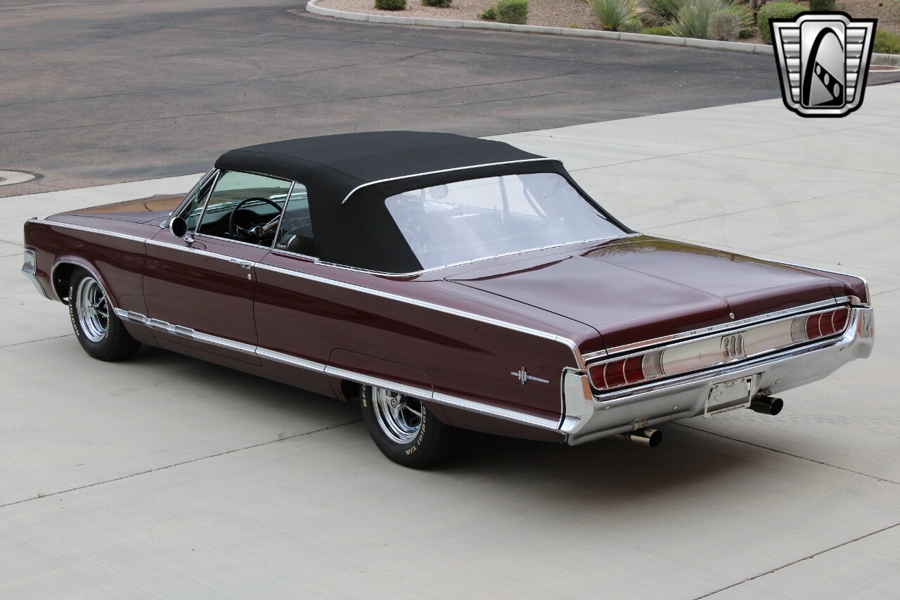 Introducing the 1965 Chrysler 300 Convertible, a classic beauty that exudes timeless elegance and power. This vehicle is a standout with its rich burgundy wine exterior color, a hue that is both sophisticated and eye-catching. The black leather interior adds a touch of luxury and comfort, creating an inviting atmosphere for both driver and passengers.