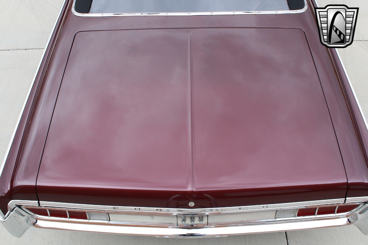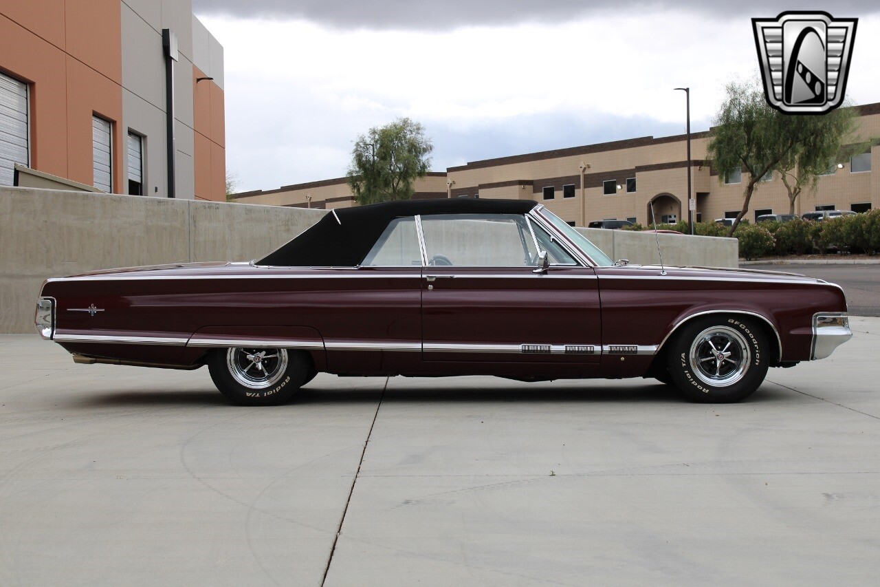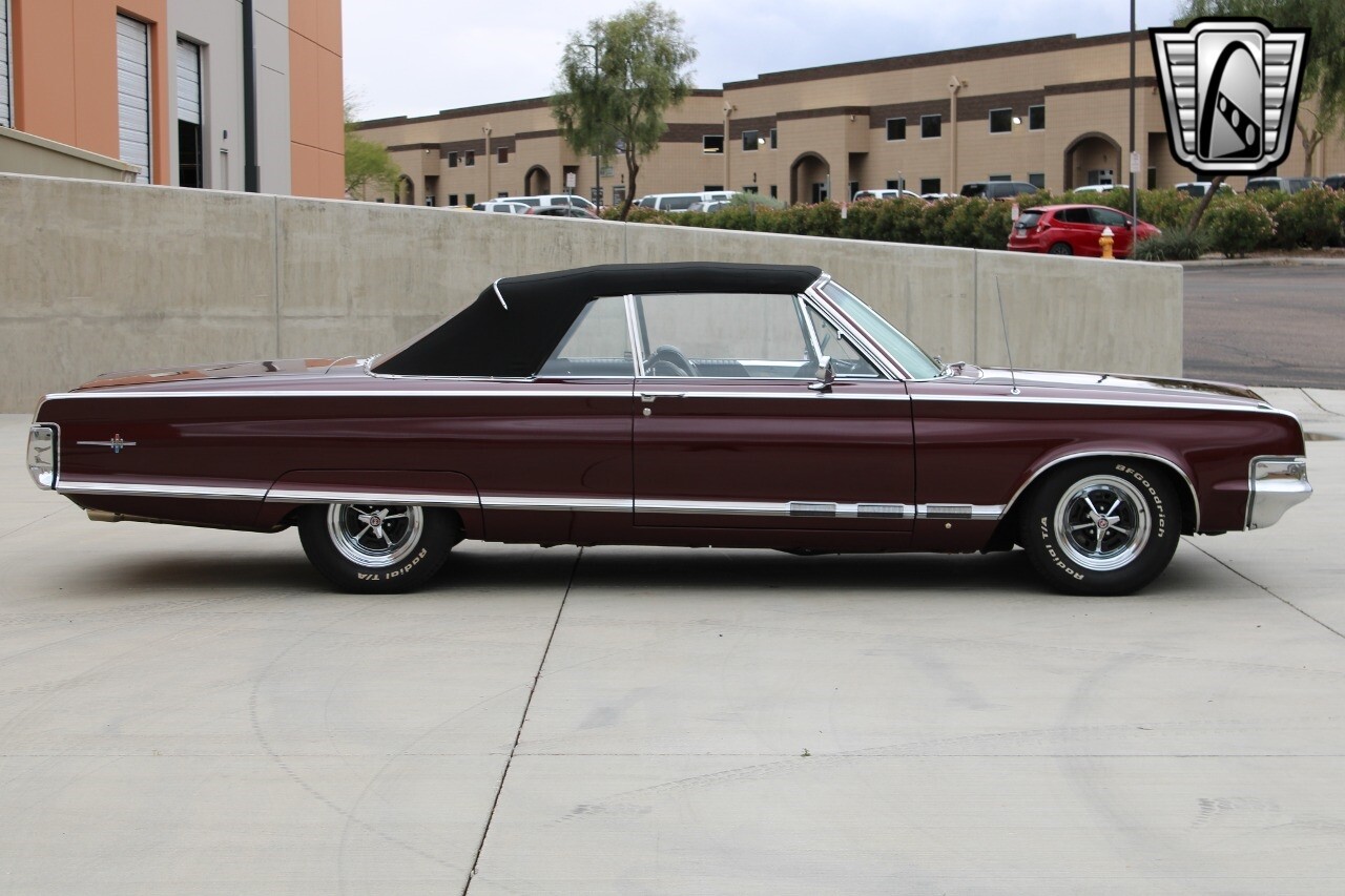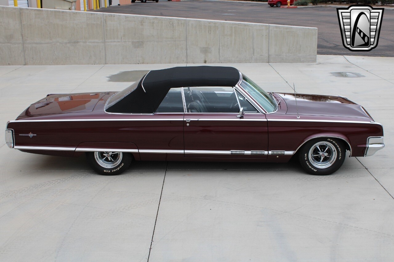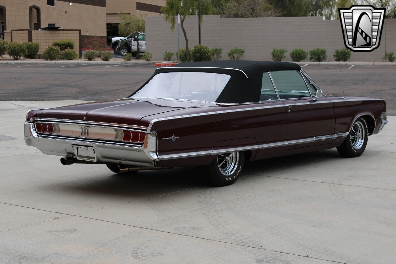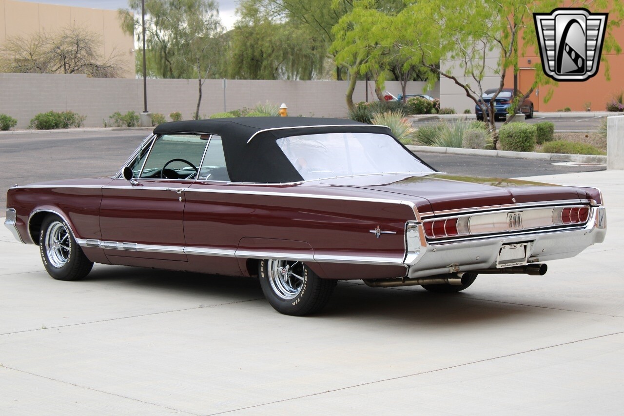 Introducing the 1965 Chrysler 300 Convertible, a classic beauty that exudes timeless elegance and power. This vehicle is a standout with its rich burgundy wine exterior color, a hue that is both sophisticated and eye-catching. The black leather interior adds a touch of luxury and comfort, creating an inviting atmosphere for both driver and passengers.
