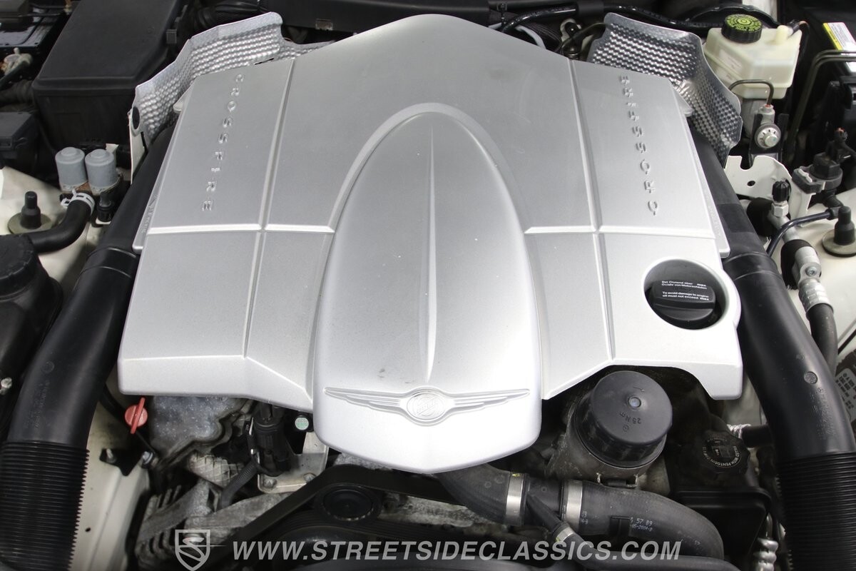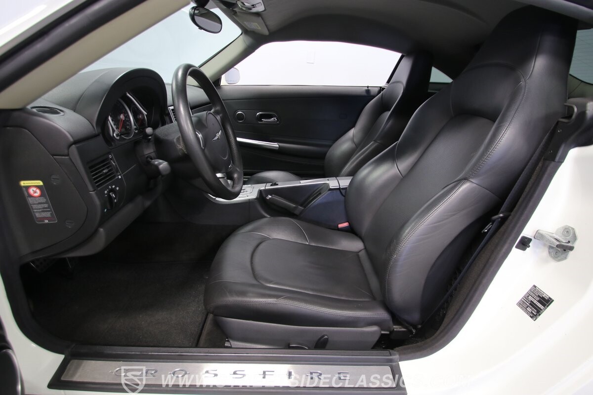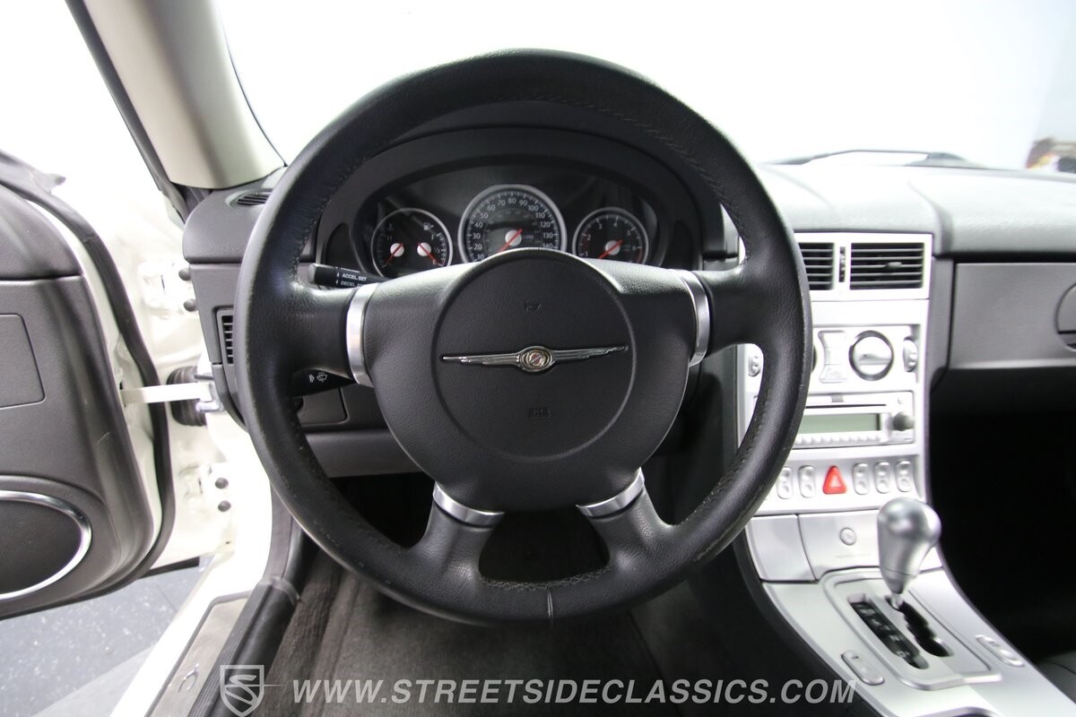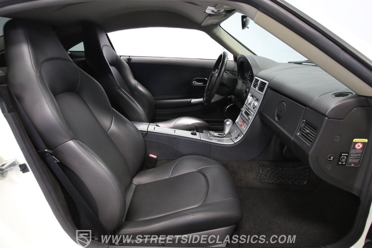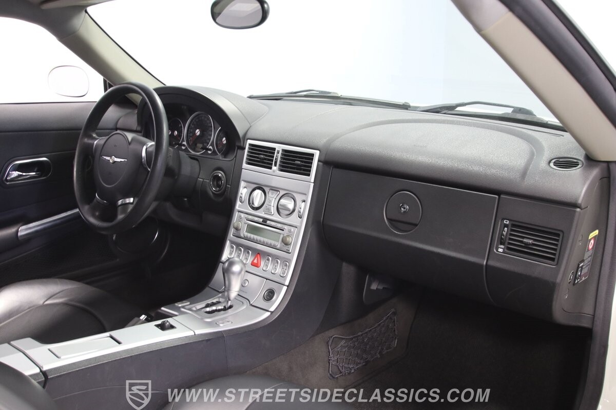 German engineered, German built, but American style...The Crossfire is an interesting vehicle that we will likely not get to see again. That makes it a shoo-in for classic status. The Crossfire's design was ahead of its time, and all you have to do is look at the tapered rear end of the current Jaguar F-Types as proof. And the center-exit exhaust reminds us of a Porsche. The European connection is not just with the design. Beneath the skin, this one also has the quality that comes from a German-built coupe that sits on a Mercedes-Benz platform. The white paint has a timeless look of elegance, and the deeply tinted windows make a nice contrast. The overall exterior condition of this coupe will remind you of a daily driver. And that's fine because it's a young classic with a ton more practical years ahead of it. The difference now is that you get to enjoy the practical years, and whenever you decide it's time to have a more show-ready Crossfire, today's value price allows you to leave room in your budget/savings for the improvements you want to make someday in the future.