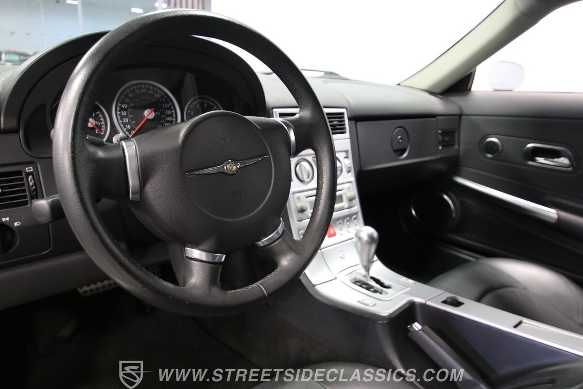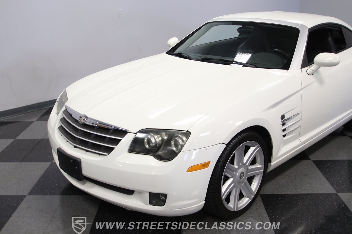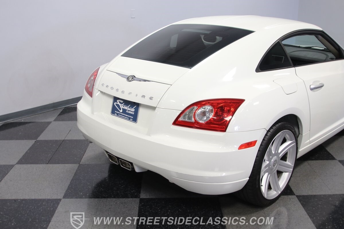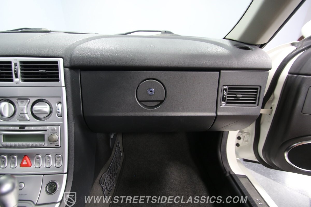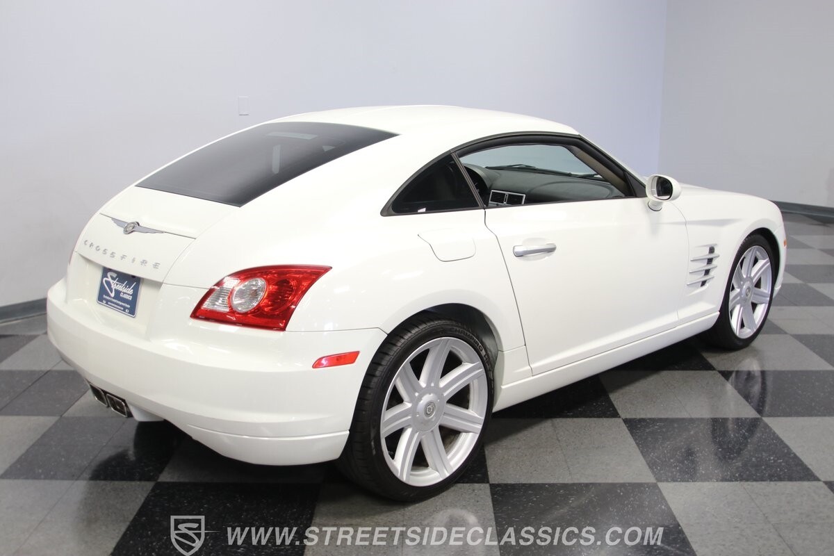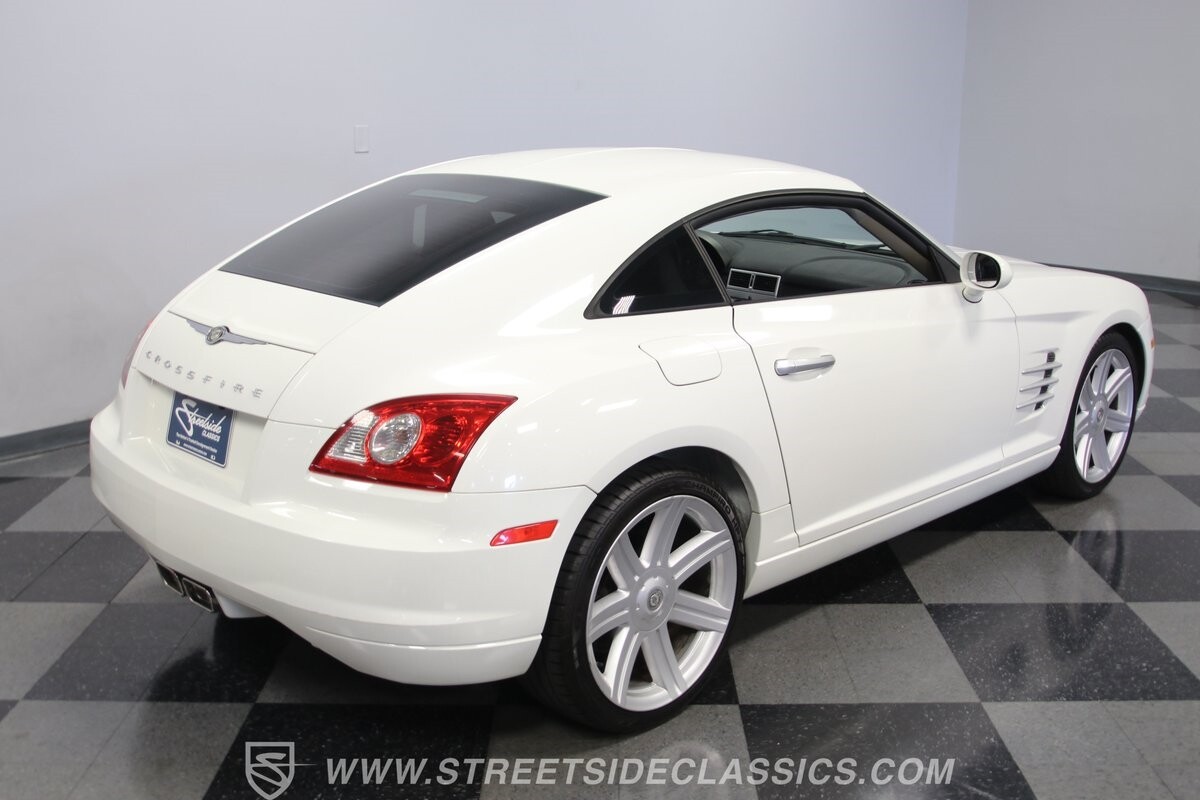 German engineered, German built, but American style...The Crossfire is an interesting vehicle that we will likely not get to see again. That makes it a shoo-in for classic status. The Crossfire's design was ahead of its time, and all you have to do is look at the tapered rear end of the current Jaguar F-Types as proof. And the center-exit exhaust reminds us of a Porsche. The European connection is not just with the design. Beneath the skin, this one also has the quality that comes from a German-built coupe that sits on a Mercedes-Benz platform. The white paint has a timeless look of elegance, and the deeply tinted windows make a nice contrast. The overall exterior condition of this coupe will remind you of a daily driver. And that's fine because it's a young classic with a ton more practical years ahead of it. The difference now is that you get to enjoy the practical years, and whenever you decide it's time to have a more show-ready Crossfire, today's value price allows you to leave room in your budget/savings for the improvements you want to make someday in the future.