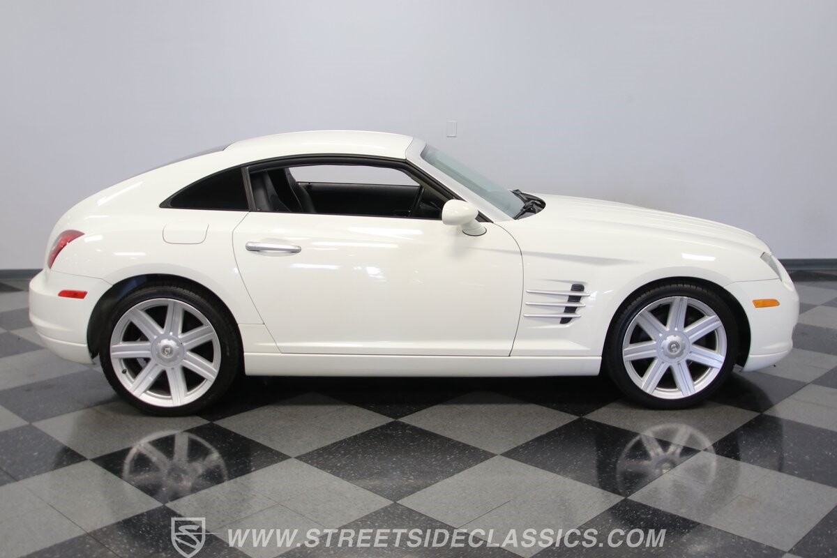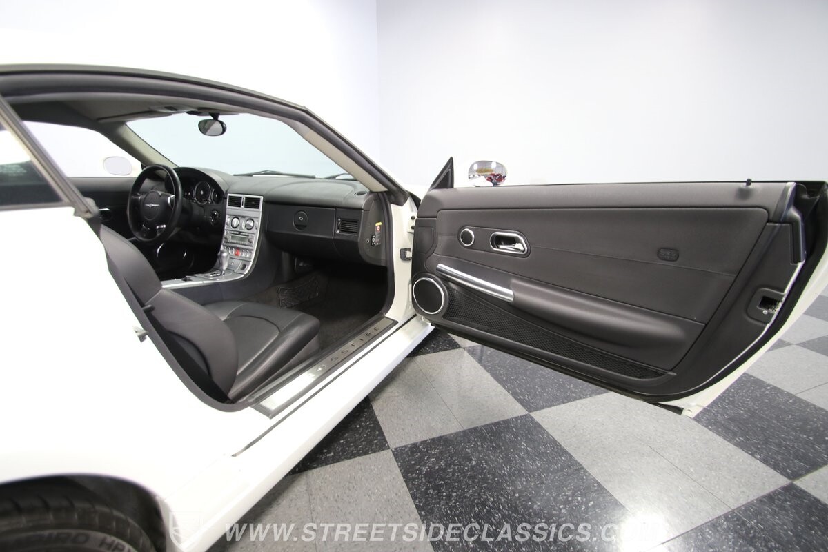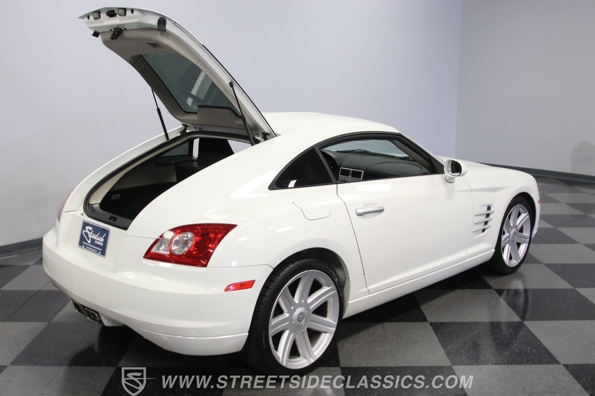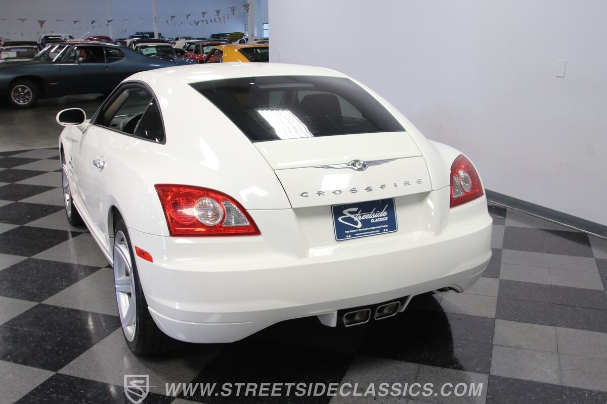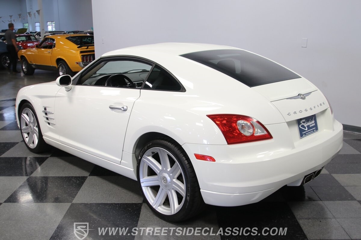 German engineered, German built, but American style...The Crossfire is an interesting vehicle that we will likely not get to see again. That makes it a shoo-in for classic status. The Crossfire's design was ahead of its time, and all you have to do is look at the tapered rear end of the current Jaguar F-Types as proof. And the center-exit exhaust reminds us of a Porsche. The European connection is not just with the design. Beneath the skin, this one also has the quality that comes from a German-built coupe that sits on a Mercedes-Benz platform. The white paint has a timeless look of elegance, and the deeply tinted windows make a nice contrast. The overall exterior condition of this coupe will remind you of a daily driver. And that's fine because it's a young classic with a ton more practical years ahead of it. The difference now is that you get to enjoy the practical years, and whenever you decide it's time to have a more show-ready Crossfire, today's value price allows you to leave room in your budget/savings for the improvements you want to make someday in the future.