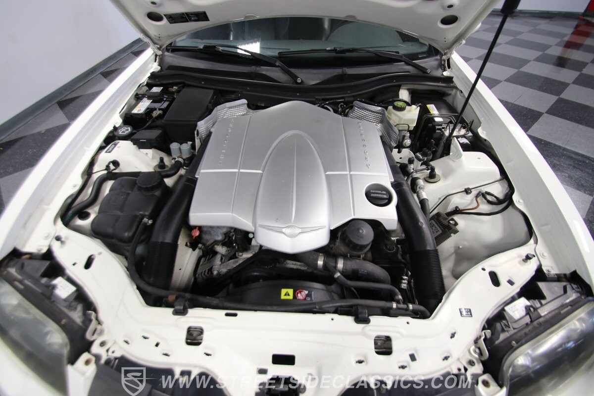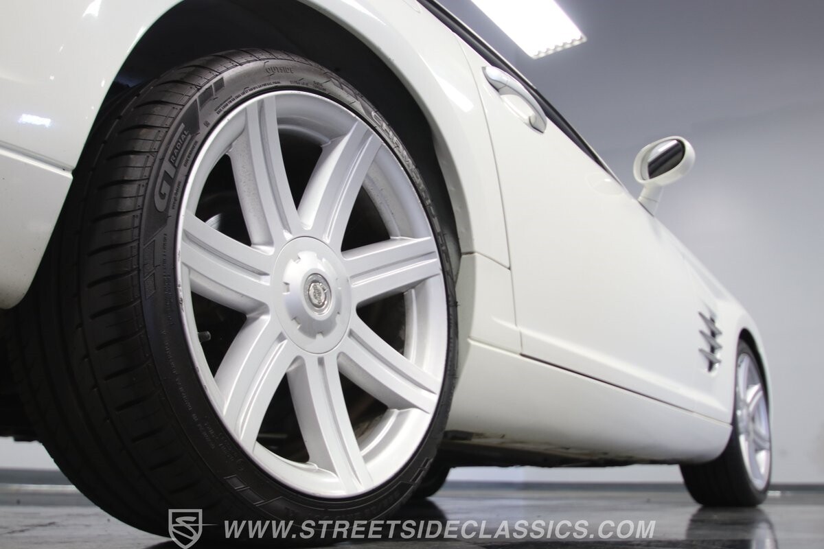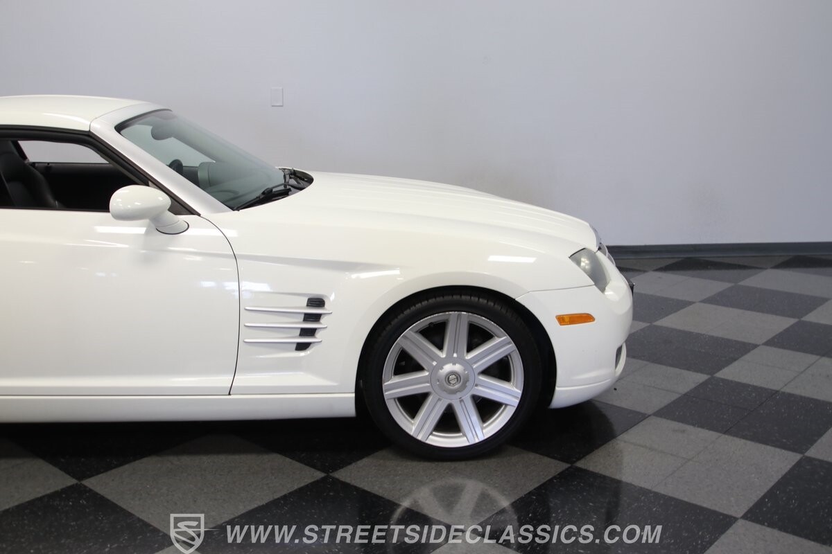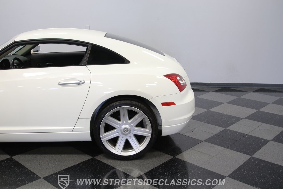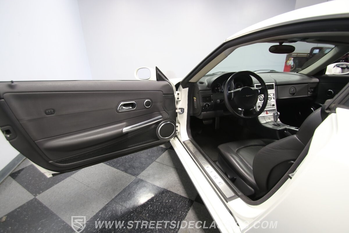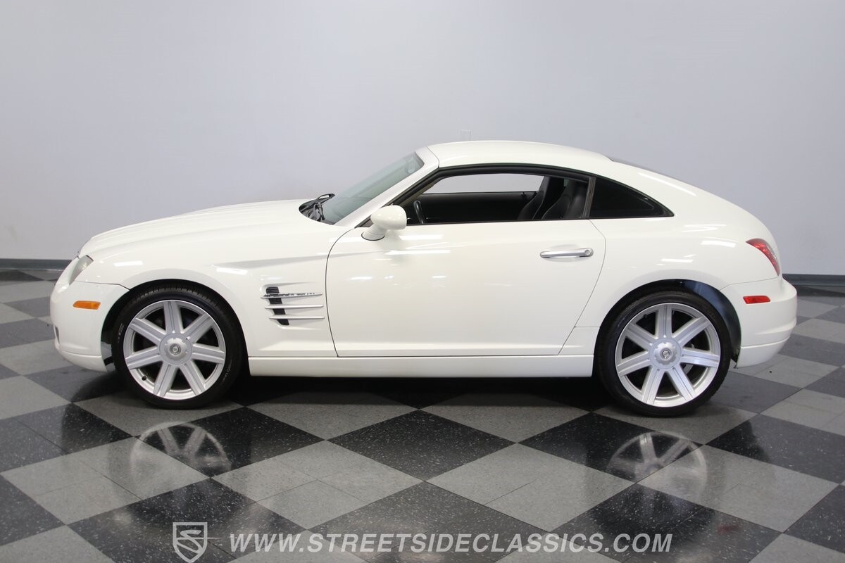 German engineered, German built, but American style...The Crossfire is an interesting vehicle that we will likely not get to see again. That makes it a shoo-in for classic status. The Crossfire's design was ahead of its time, and all you have to do is look at the tapered rear end of the current Jaguar F-Types as proof. And the center-exit exhaust reminds us of a Porsche. The European connection is not just with the design. Beneath the skin, this one also has the quality that comes from a German-built coupe that sits on a Mercedes-Benz platform. The white paint has a timeless look of elegance, and the deeply tinted windows make a nice contrast. The overall exterior condition of this coupe will remind you of a daily driver. And that's fine because it's a young classic with a ton more practical years ahead of it. The difference now is that you get to enjoy the practical years, and whenever you decide it's time to have a more show-ready Crossfire, today's value price allows you to leave room in your budget/savings for the improvements you want to make someday in the future.