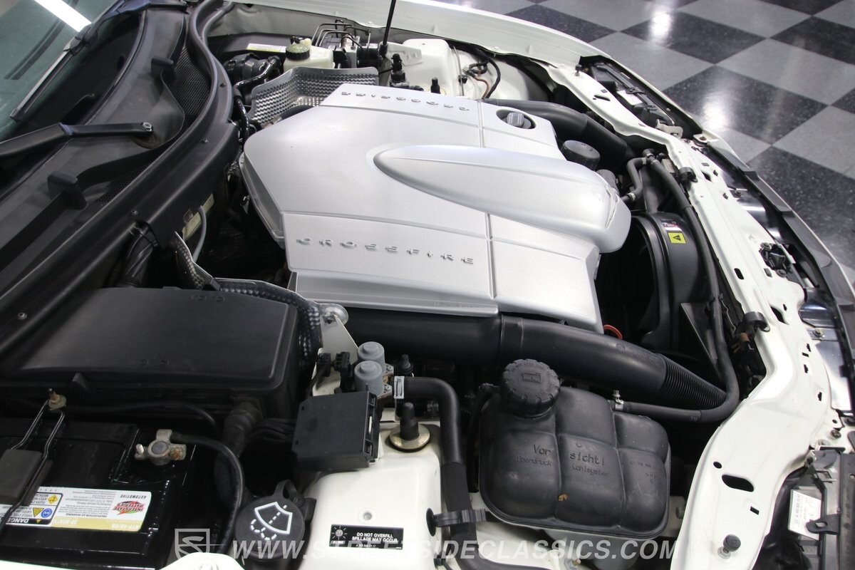 The 3.2-liter fuel-injected V6 under the hood was also a Mercedes-Benz transplant and delivers smooth performance befitting a car of this stature. In fact, all the mechanical bits are lifted almost directly from the excellent Mercedes-Benz SLK roadster, which means you get a rock-solid platform, superior engineering, and terrific performance. There is a lot of versatility in the full package. You have a five-speed automatic transmission that is quick with kick-downs into power or just smoothly delivers overdrive cruising. The German-engineered fully-independent suspension works in harmony with the power steering and four-wheel power disc brakes w/ABS for a feeling that's both comfortable and sharp.