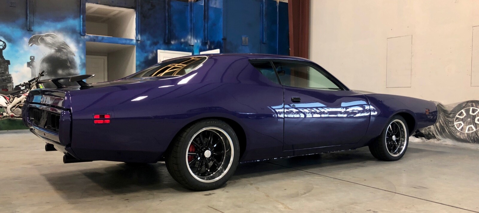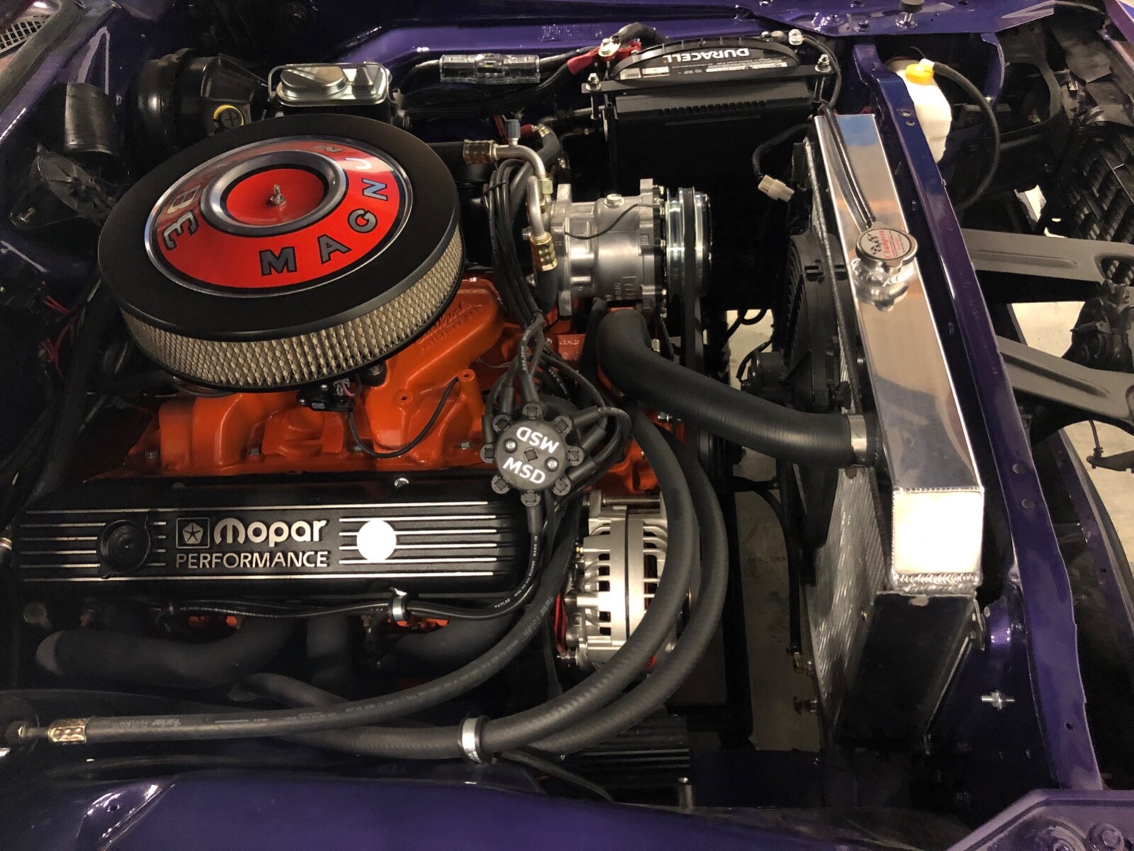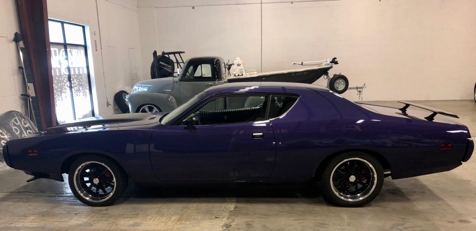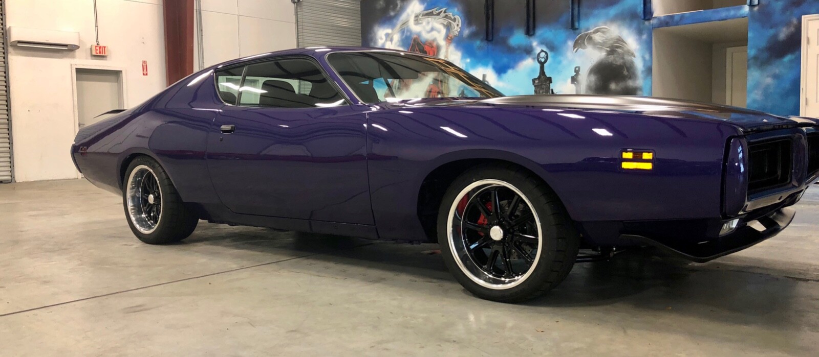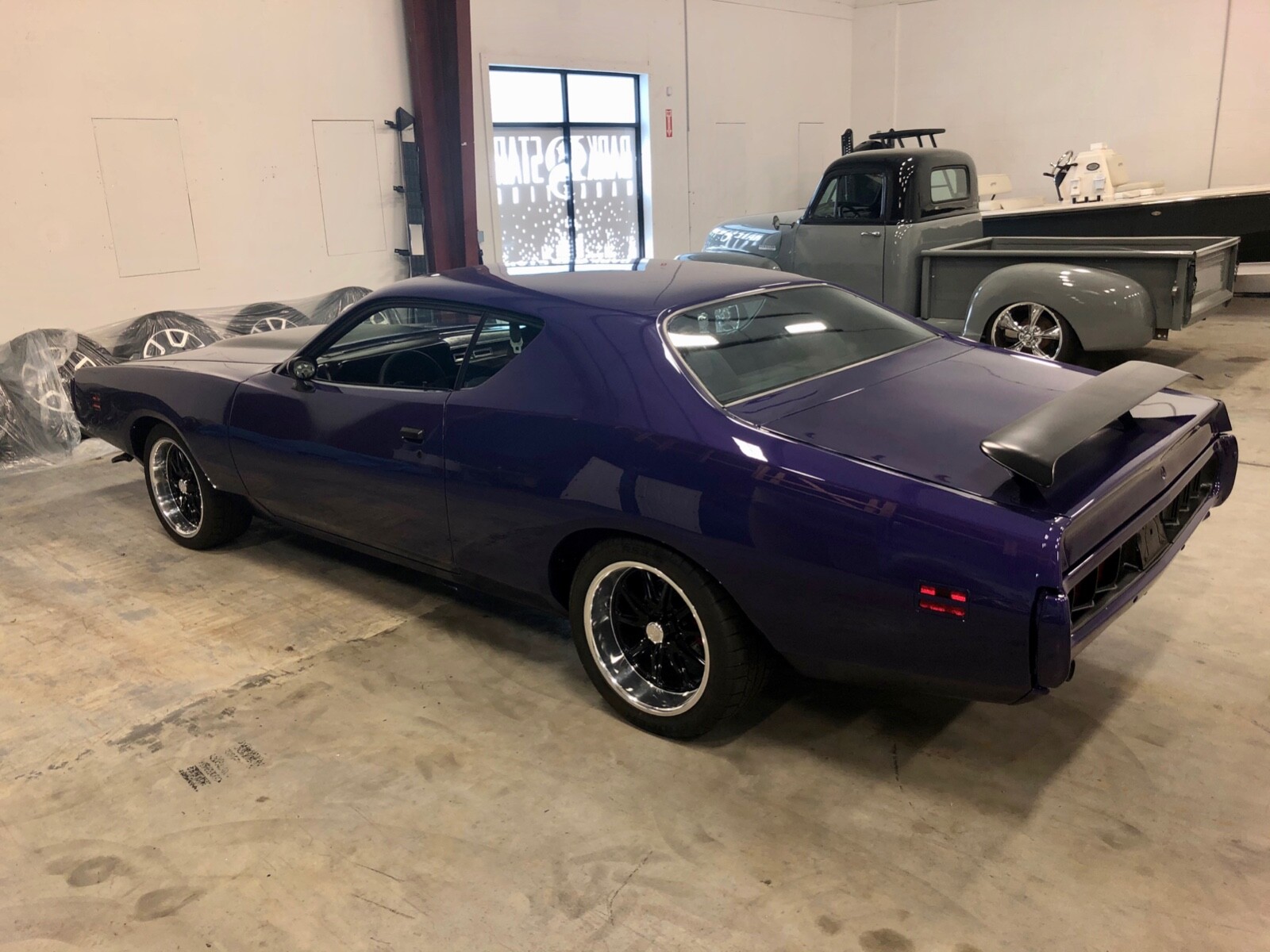 Restomod 1971 Charger 500. Motor is a 383 stroker with a heavy cam electronic ignition and Holly sniper fuel injection. $ wheel disc brakes and tubular A arm suspension. Car has been completely redone including the 2022 Plum Crazy Purple paint. Interior is from a 2020 Dodge Challenger Superbee. JL audio stereo system. Aluminum radiator with electric fan. Ac and Heat