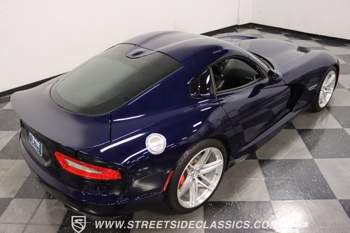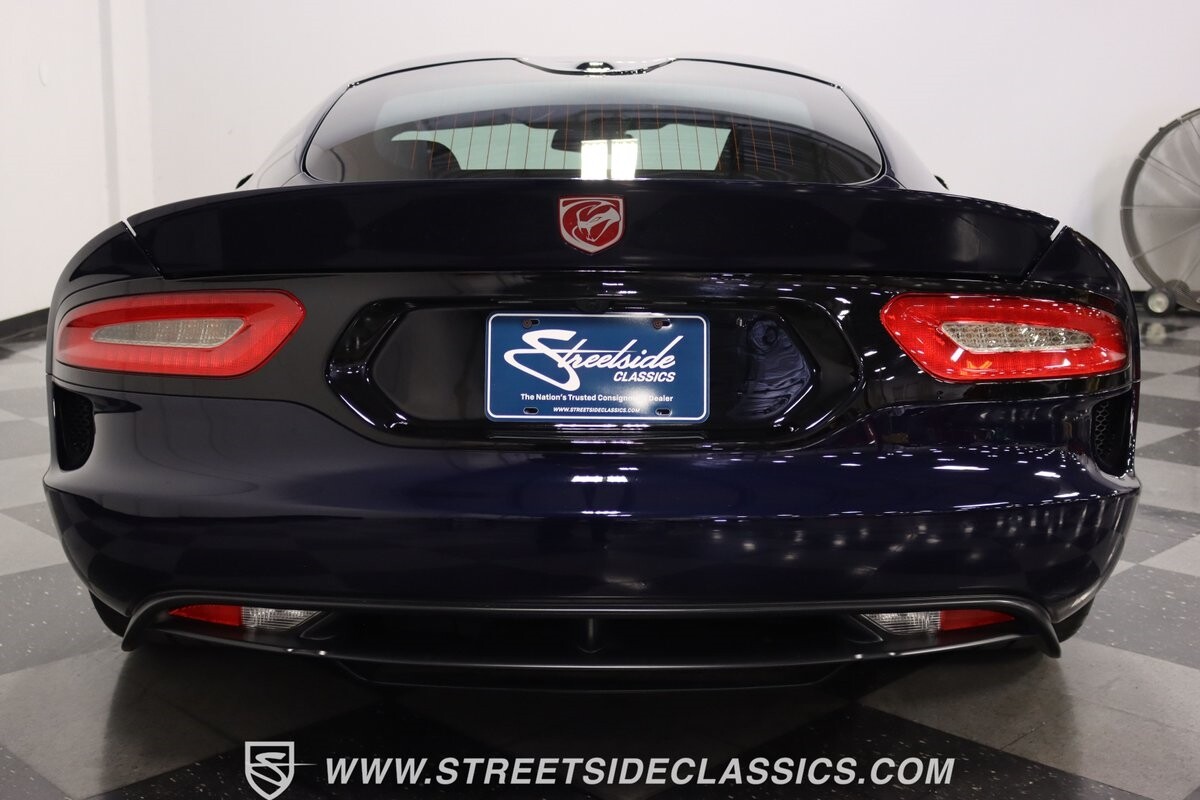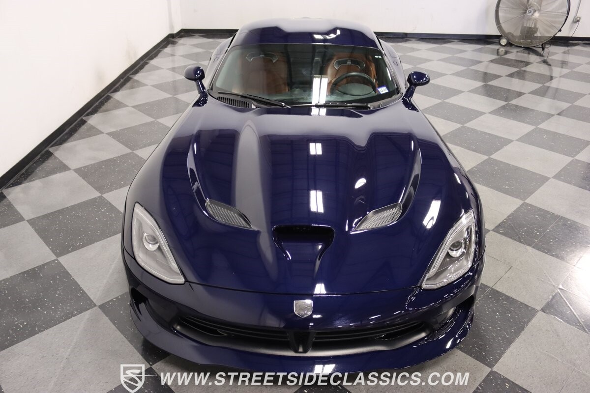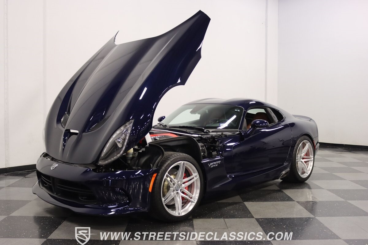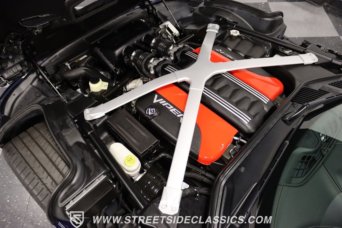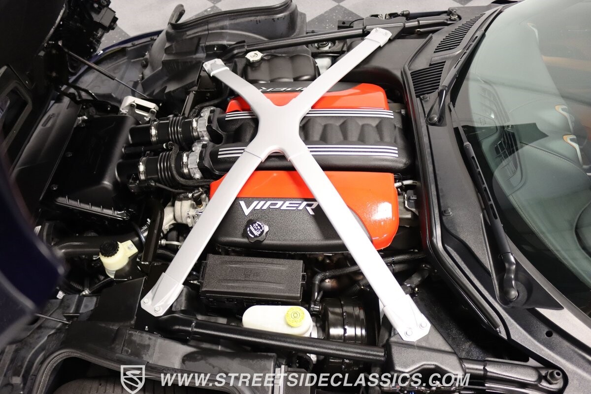 The engine bay looks like they couldn't stuff any more power under the hood. Those big red valve covers are a Viper hallmark, so it's great to have in the latest generation. And the 645 horsepower from the fuel-injected 8.4-liter V10 firmly put this Viper in supercar territory as it swallows lesser cars whole. You get complete control of the big motor and its ferocious growl via a six-speed manual transmission. This is backed up by a large Brembo four-wheel disc brake package, power steering, super-sticky Michelin Pilot Super Sport tires, and a fully independent suspension that's ready for the road or racetrack. It's a total power package that will make this collectible also your track day favorite.