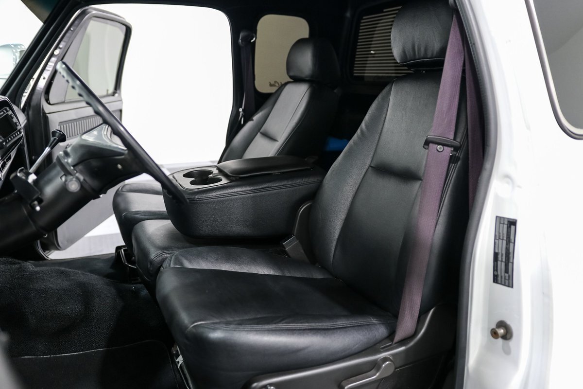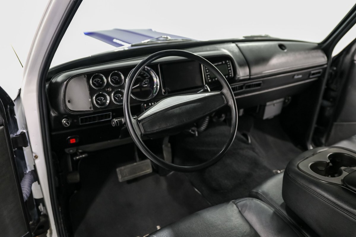 Step inside to find a Black leather interior that's both rugged and refined. Bucket seats with a buddy seat, a rear bench seat with hidden compartments, and a tilt steering column offer comfort and practicality. Modern conveniences like power windows, power mirrors, power locks, and remote entry make this classic feel contemporary. The integrated brake controller, electronic master cylinder, and all-exterior LED lighting add a touch of 21st-century tech to this vintage ride.
