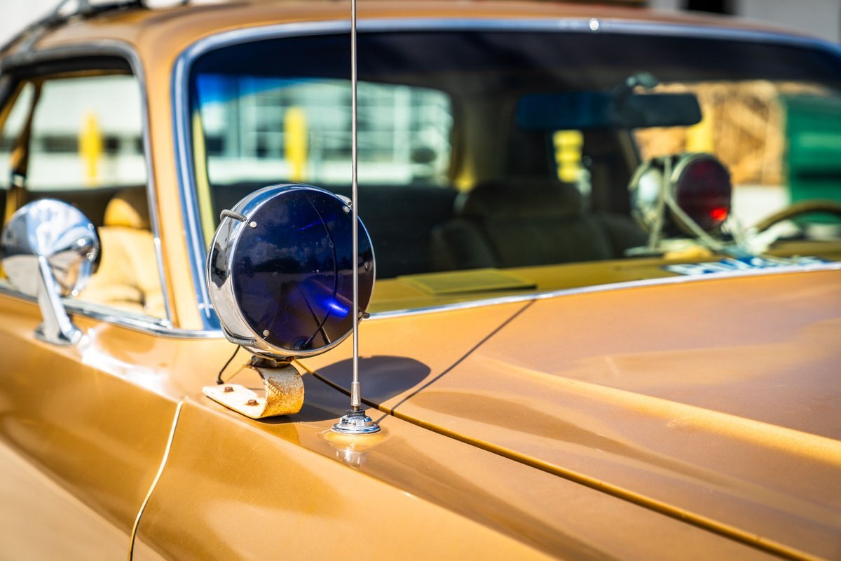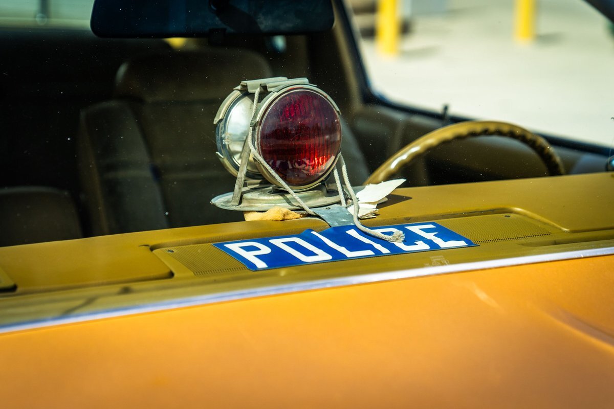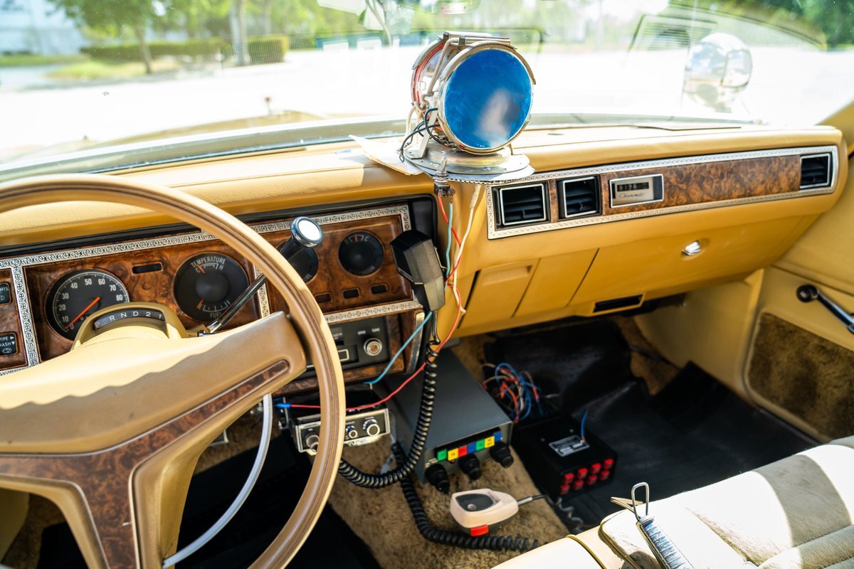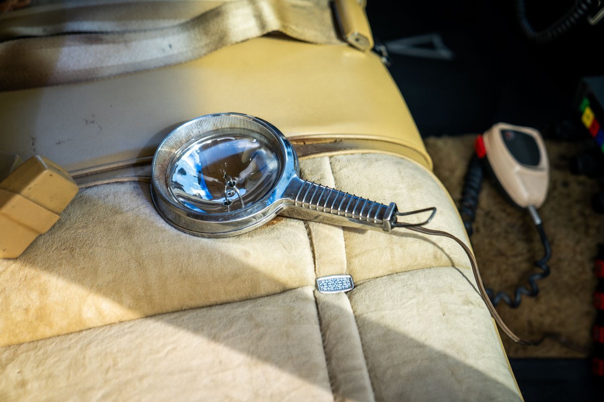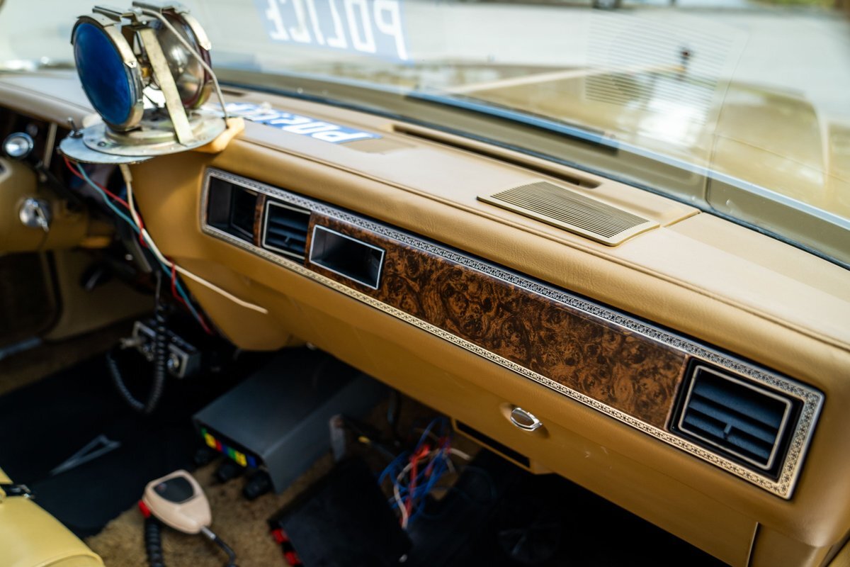 It shows patina throughout, looks great rolling down the road. Real conversation piece, Will include a fun cop outfit with purchase. Minor wear throughout the interior, windows go up and down, light controls for top halo works.