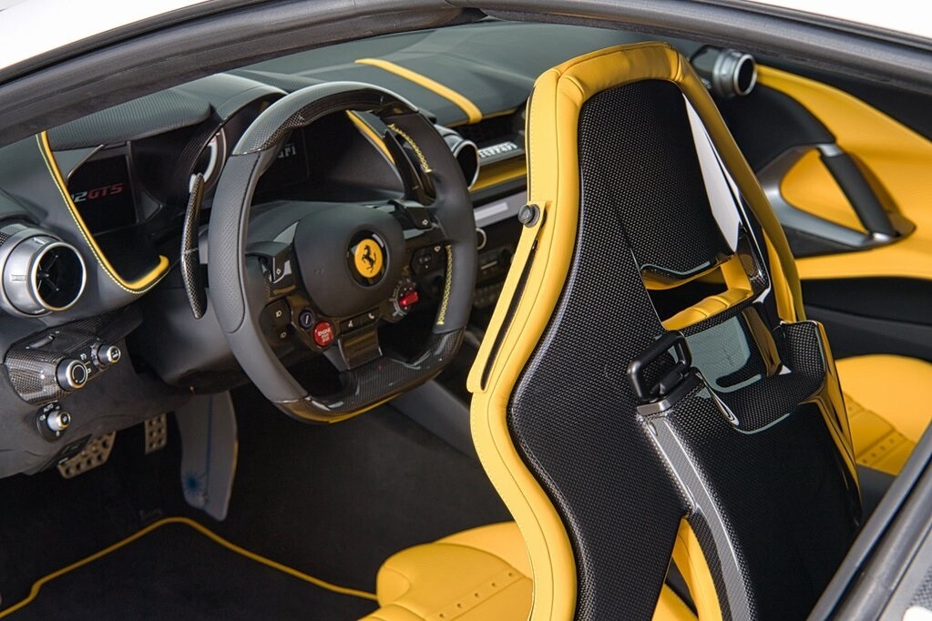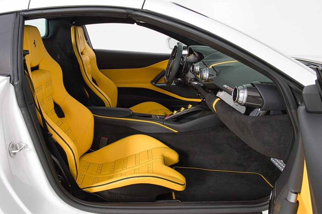Finished in exclusive Bianco Cervino paint over Pelle Gialla leather, this Ferrari has an extensive list of desirable factory options (see below).