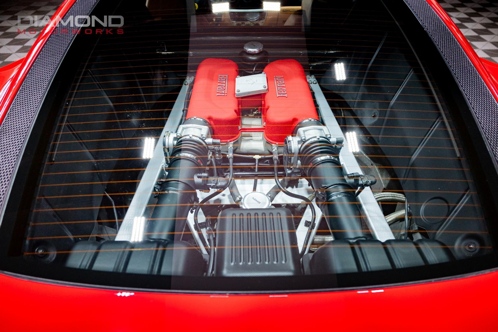 100% Carfax Certified with no accidents or stories. Non smoker. Comes with service records since new, floor mats, 2 keys, window sticker, Ferrari OEM Red Seat + Steering Wheel Covers, 2 car covers, books and manuals! We accept trades and can arrange nationwide shipping. Buy smart from Diamond Motorworks!