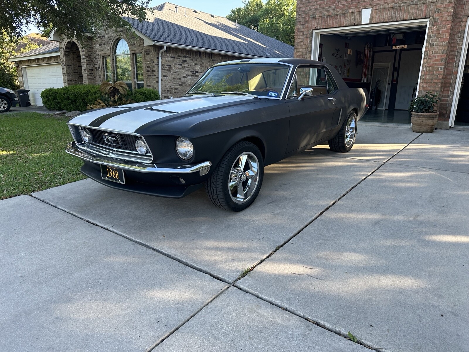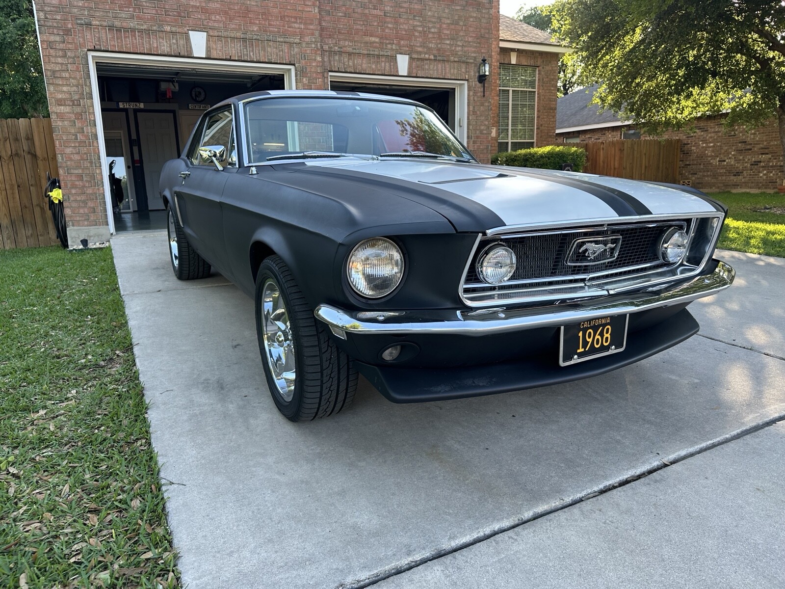 Hi im looking to sell my 1968 Mustang coupe Runs Like a DREAM and is FAST! 1989 302 roller Holley 650 carb 3:55 posi rear end T5 5 speed trans Hydraulic lifters Roller cam Pro comp aluminum heads Electric fuel pump Electric tan Heater box and core New belt/hoses/fittings Diff seals and gaskets Gauges 130 amp alternator Fuel regulator Thermostat Air cleaner HEl Distributor Valve covers Water pump Aluminum radiator Master cylinder Front disc / rear drum brakes Tie rods / ball joints Torsion bars Clutch slave and master Proportioning valve for master cylinder Plug wires Fuel filters Tachometer A/F Ratio gauge 21/2 " dual exhaust fuel lines Trunk liner *** Needs *** Fuel gauge dosent read correct Weather stripping where door meets Radio antenna If you have any questions you can reach out to me 210-787-6121Vehicle Details