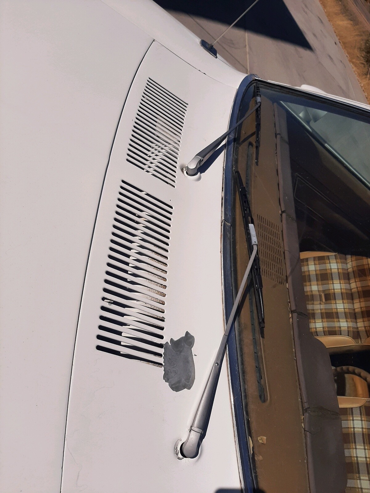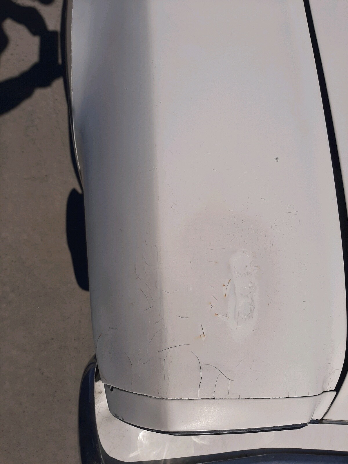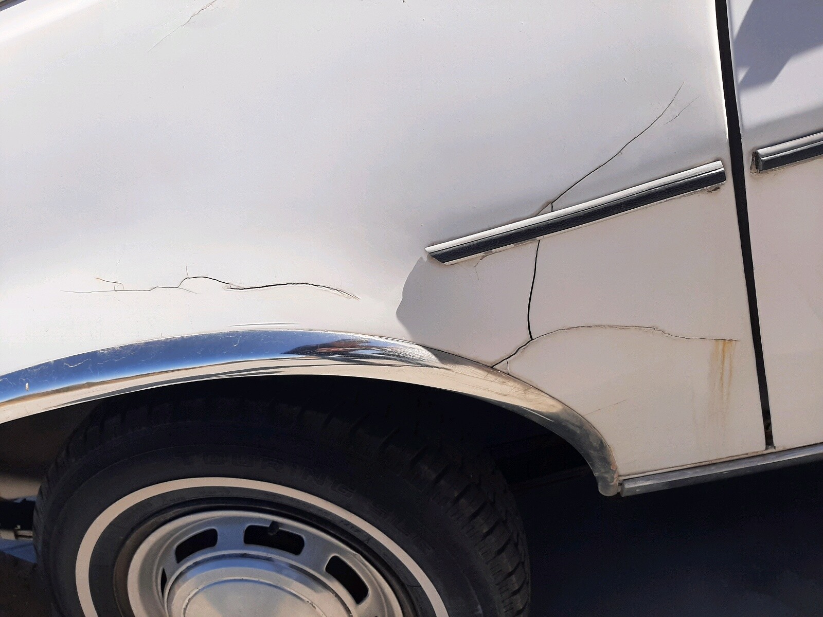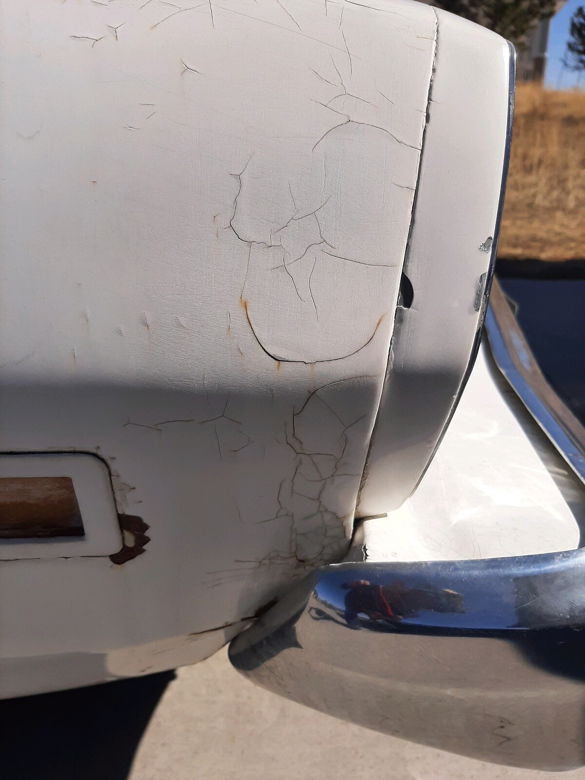 Exterior - Body is in decent shape, but appears to have had some bodywork in the past due to some cracking, especially on the right rear side. There are also several age cracking spots. Windows are great. Chrome is decent but a few some dings.