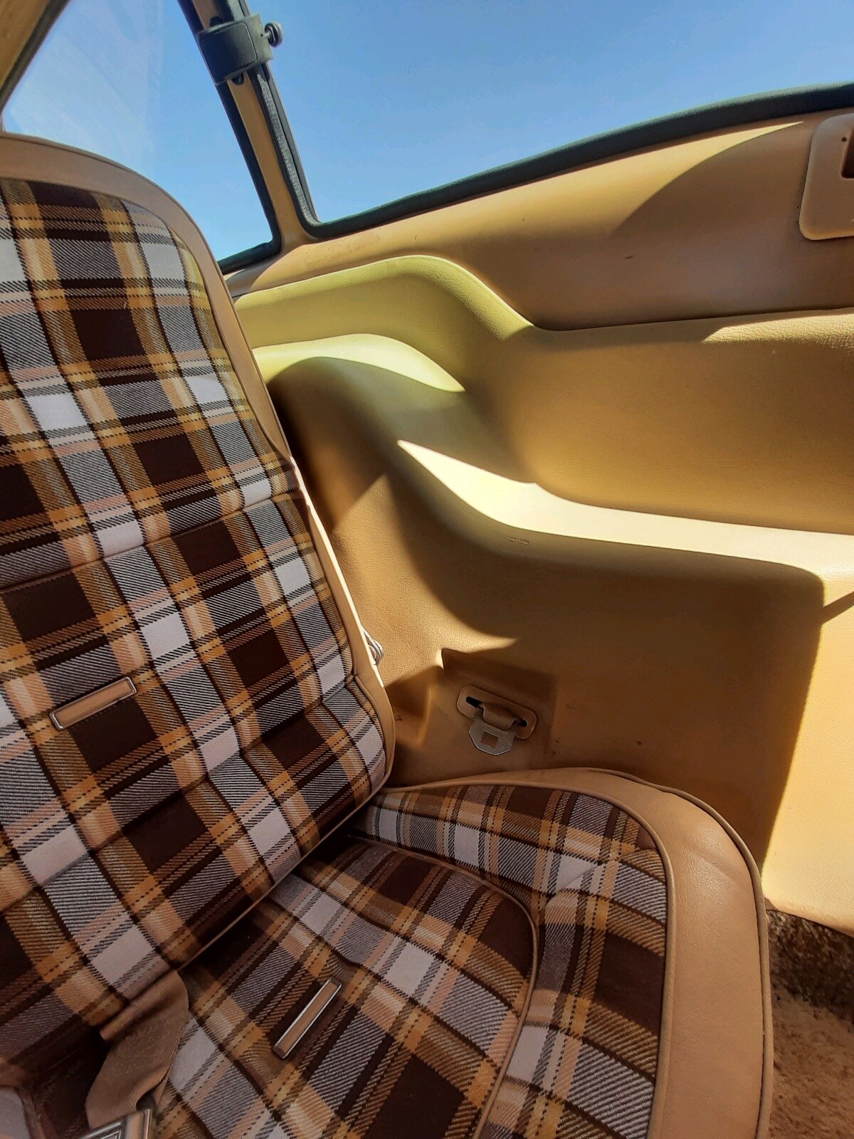 Interior - The original seats are in amazing condition front and back, especially for the age of the car. Not perfect, but very, very impressive. The front carpet needs to be replaced, but a front carpet kit is included with the car. The dash has some cracks. An after market radio has been added. Headliner and back carpet are in very good condition.
