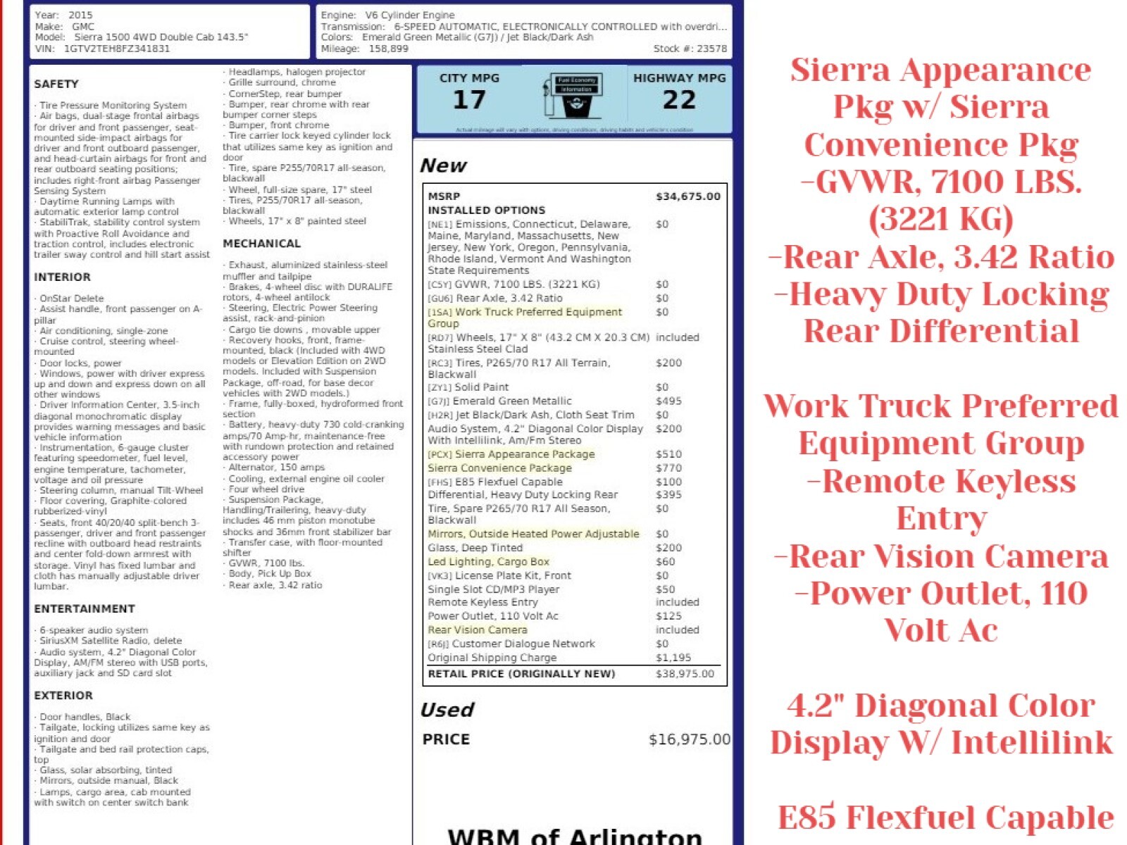 * Thank you for visiting another one of W B M of Arlington's exclusive listings! W B M of Arlington is a small family operated business established in 1988. * Our competitive pricing primarily stems from our lean operational costs, not compromised quality. We prioritize customer value over higher profit margins. * We welcome pre-buy inspections. * We offer extended service warranties for this vehicle. * We exclusively source our vehicles from non-auction channels. * Every car in our inventory undergoes meticulous inspection and comes with a verified CARFAX history report. * To view more pictures, please visit our website at . * A few vehicles may exhibit slightly higher mileage than initially advertised, primarily attributed to test drives, inspections, and servicing. * We kindly request you to verify the precision of vehicle options with your designated sales representative. In very rare instances, discrepancies may arise in the transmission of electronic data feeds, potentially affecting the accurate representation of certain options.