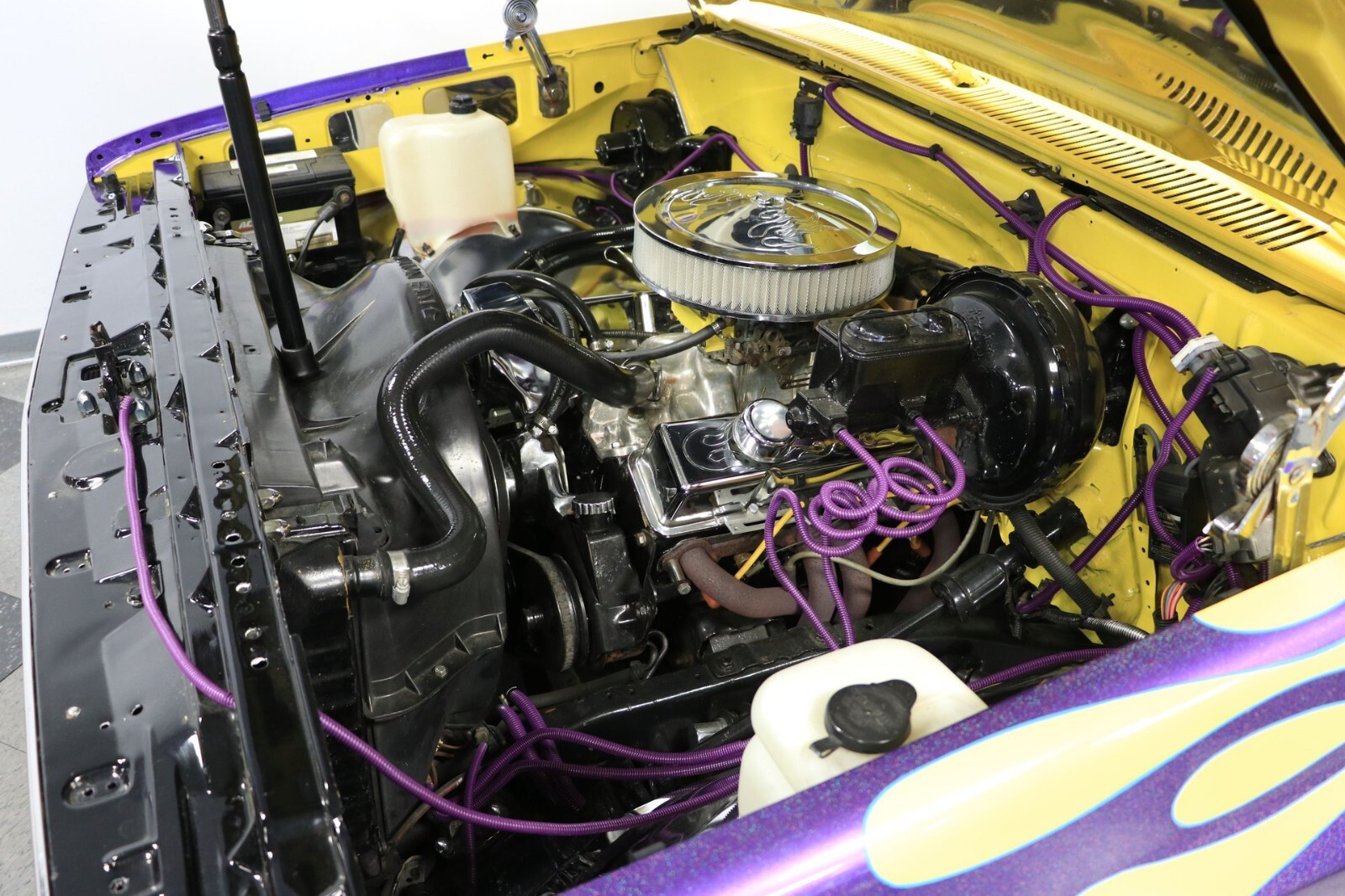 Custom, 350 Small-Block w/Cam. 3 Speed Automatic, Power Steering and Power Brakes. Twin Hood Scoops, Billet Grill, Flush Custom Roll Pan with Bullet Tail Lights, Windshield Visor, Shaved Door Handles and 22-inch Wheels. Has some cosmetic damage on passenger side and needs to be rewired. That's the reason for the low price. Will consider all serious offers.