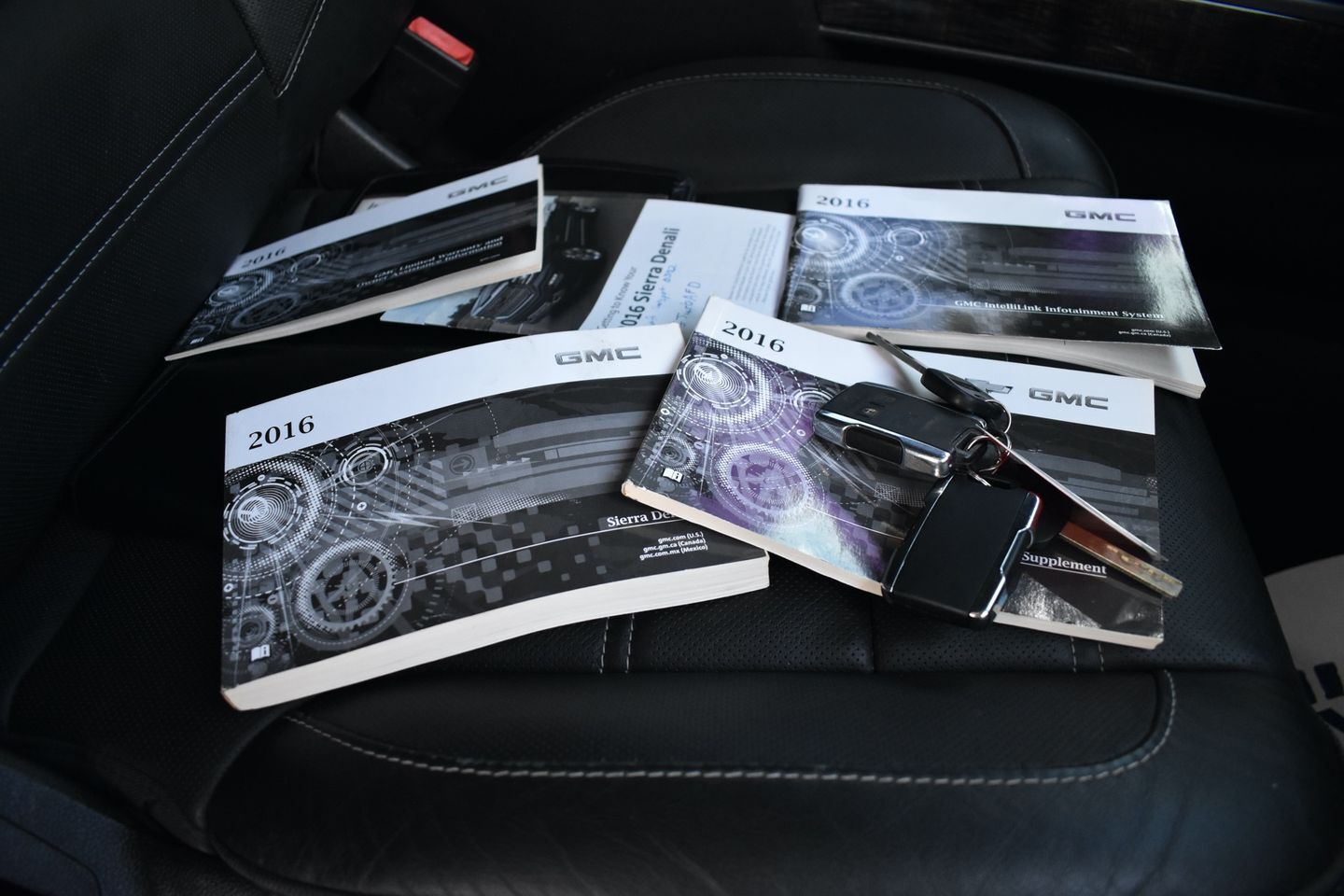 You are looking at a 2016 GMC Sierra 2500HD Crew Cab Denali 4x4. It is powered with a 6.6L Duramax Diesel V8 and Allison automatic transmission. It is equipped with factory navigation with am/fm/cd player, heated/cooled seats, power windows, power locks, power mirrors, tilt, cruise, spray in bed liner, and receiver hitch. Also included is the owners manuals and one keyless remote.