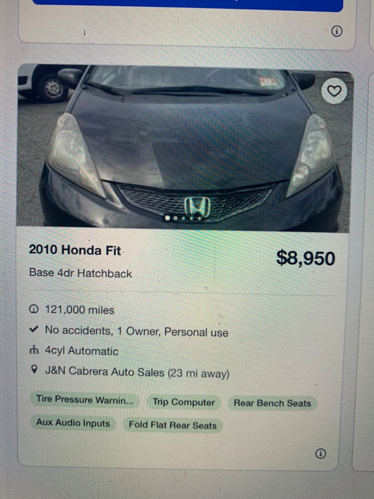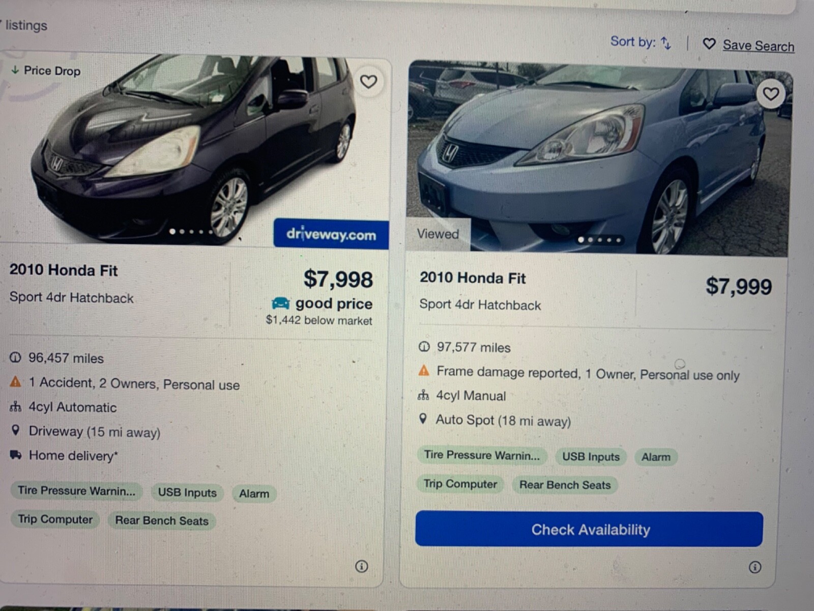 MAJOR ISSUES HAD BEEN FIXED BY A LICENSED MECHANIC. THE BEAM AXLE HAD BEEN REPLACED AND THE CAR PASSED THE INSPECTION. NEEDLESS TO WORRY ABOUT ANYTHING AND RECEIPTS WILL BE PROVIDED UPON REQUEST. VERY RELIABLE AND SAFE CAR.This 2010 Honda FIT Sport is in excellent condition. This manual car looks immaculate and runs smoothly with only 144khighway miles. If you are seeking a reliable , trouble -free car, this is the perfect fit for you. Serious buyers are welcome to place bids. I have also provided the prices of other 2010 Honda FIT models in similar conditions that are currently being sold. Good luck!!!